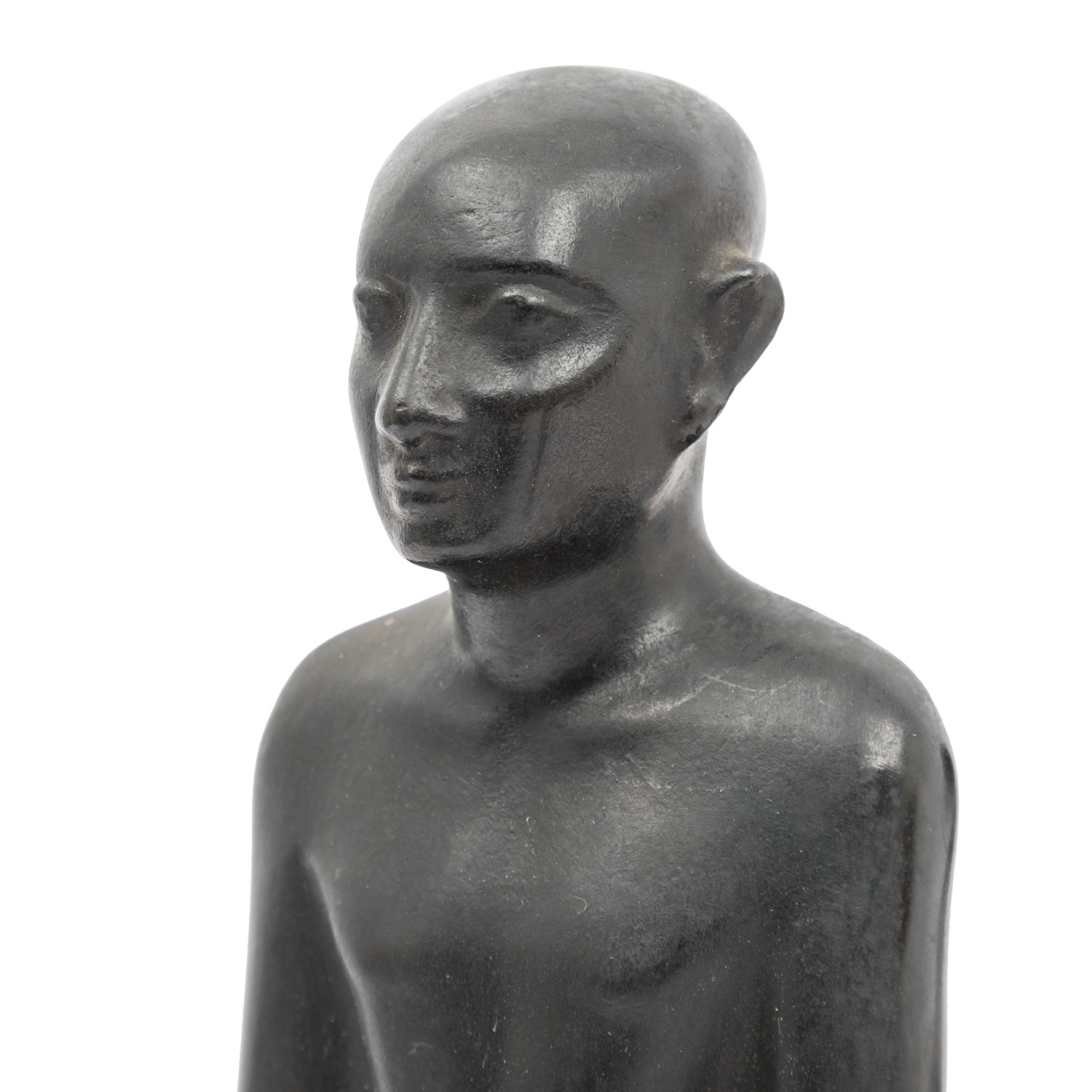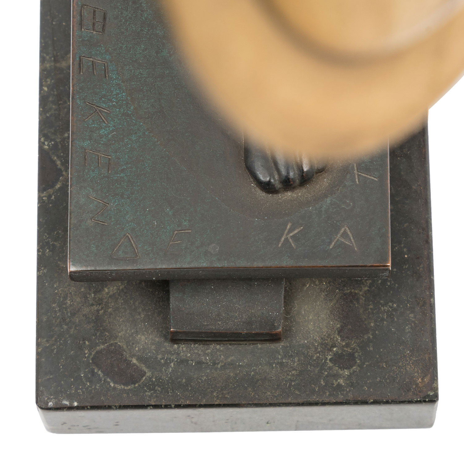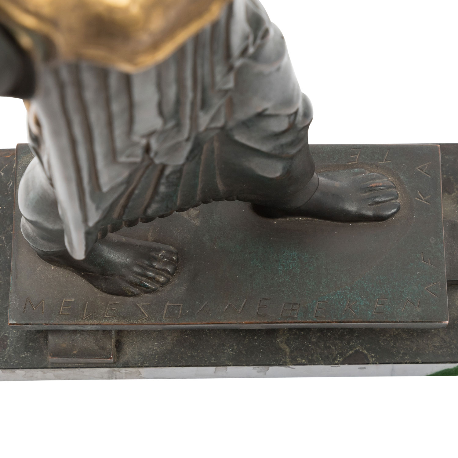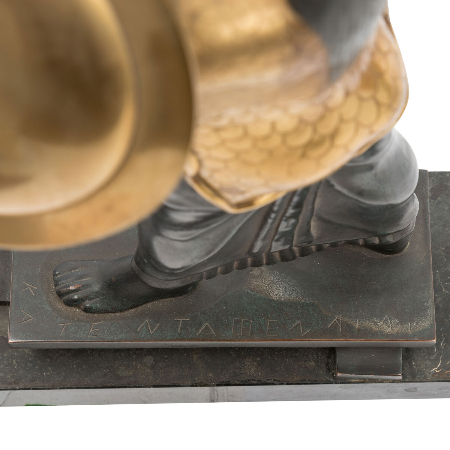 1x 'PALLAS ATHENA', mit erhobenem Schild schreitend, Metallguss, in Bronzeart bruniert und vergoldet, auf rechteckiger Plinthe im Guss bezeichnet, auf dunkel marmoriertem Steinsockel montiert, H: Figur, ca. 32 cm, gesamt ca. 34 cm; 1x 'KHNUM', widderköpfiger Gott, Bronze, dunkel patiniert, auf rechteckiger Plinthe, auf schwarz marmoriertem Steinsockel montiert, H: gesamt ca. 17 cm; 1x 'Stehender Pharao', Metallguss, schwarz patiniert, auf dunkel marmoriertem Steinsockel montiert, H: gesamt ca. 38,5 cm. Je Alters- und Beriebspuren, der Athene fehlt der Speer.