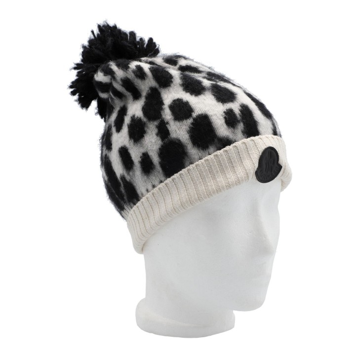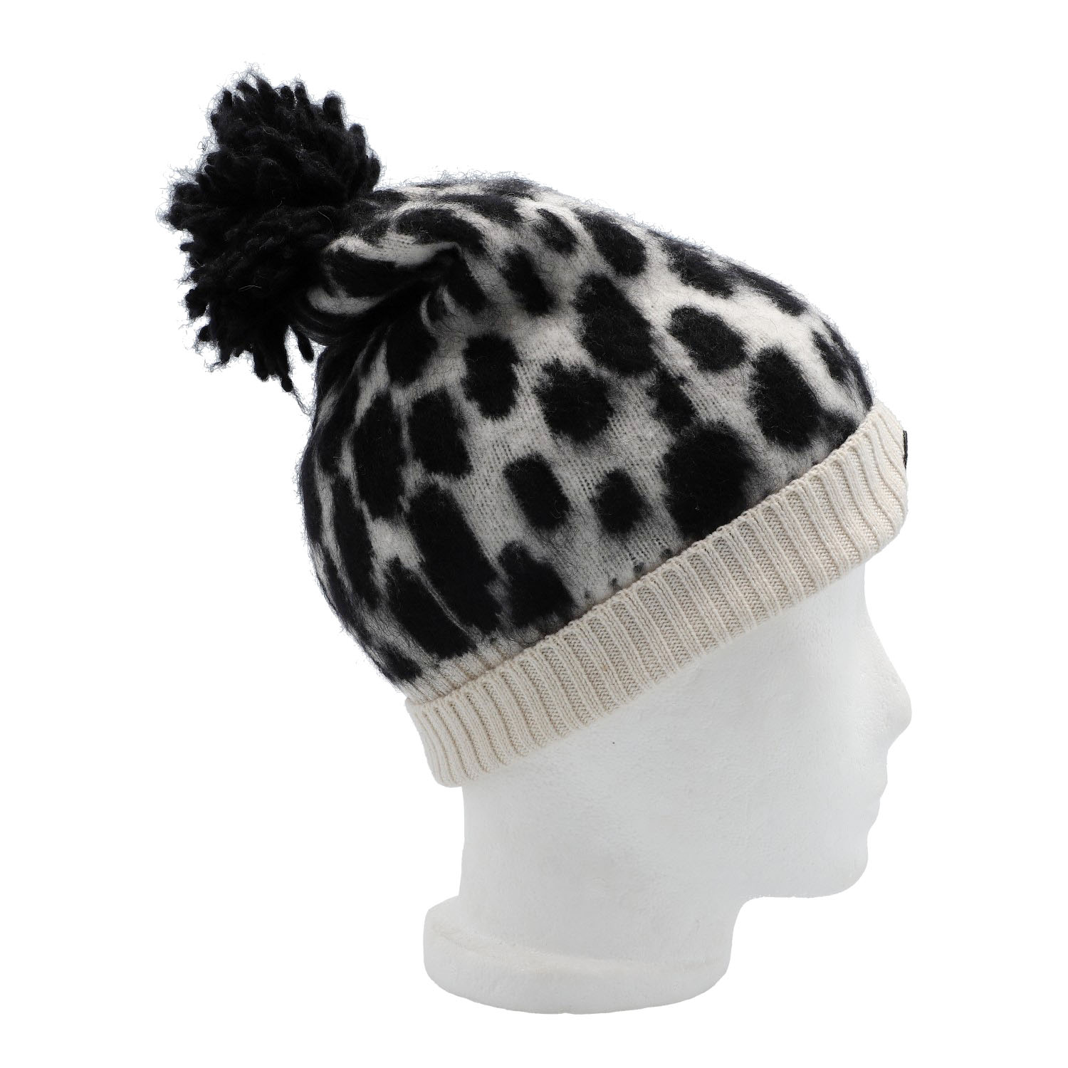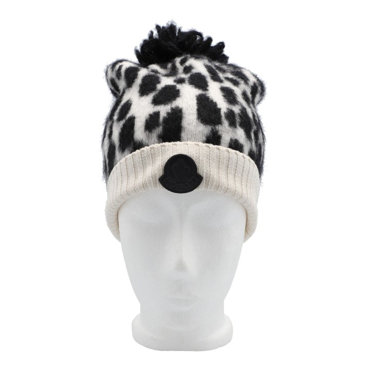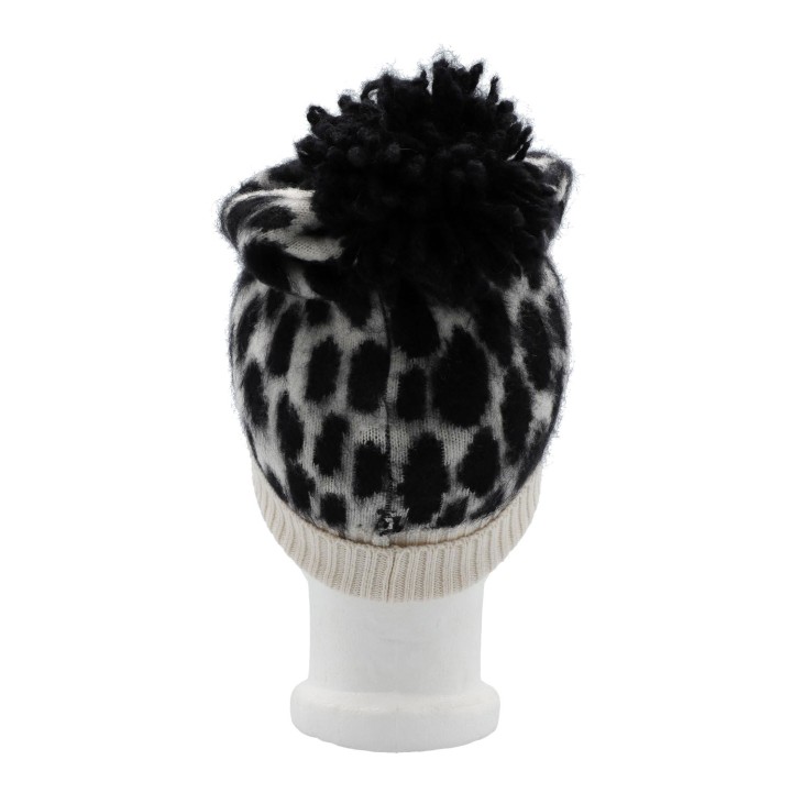 Wollgemisch. Weißes Modell mit schwarzen Flecken und Pompon in Schwarz. Tragespuren vorhanden.