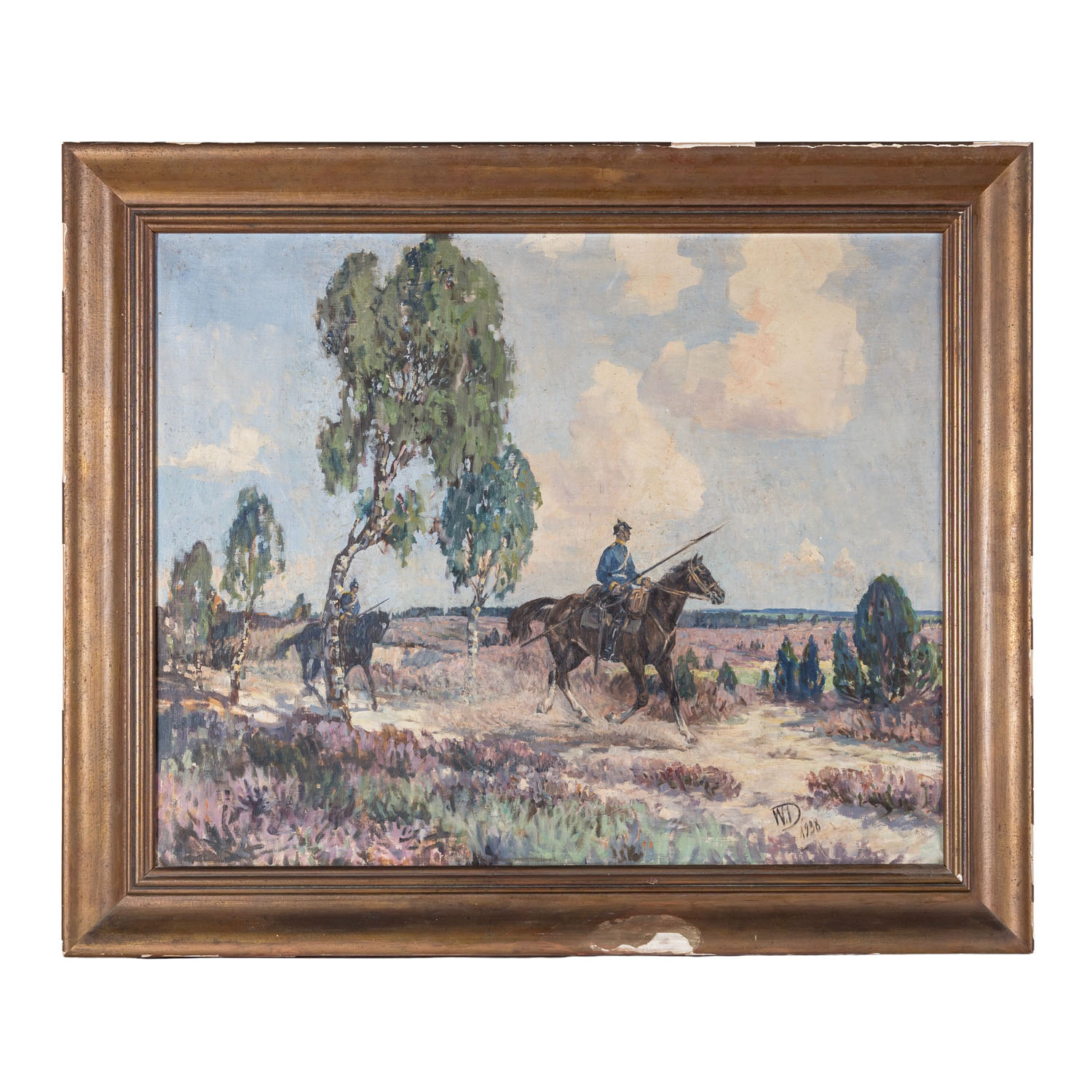 MONOGRAMIST DES XX JAHRHUNDERTS 'Zwei Kavallerieoffiziere durch die Heide' 1938