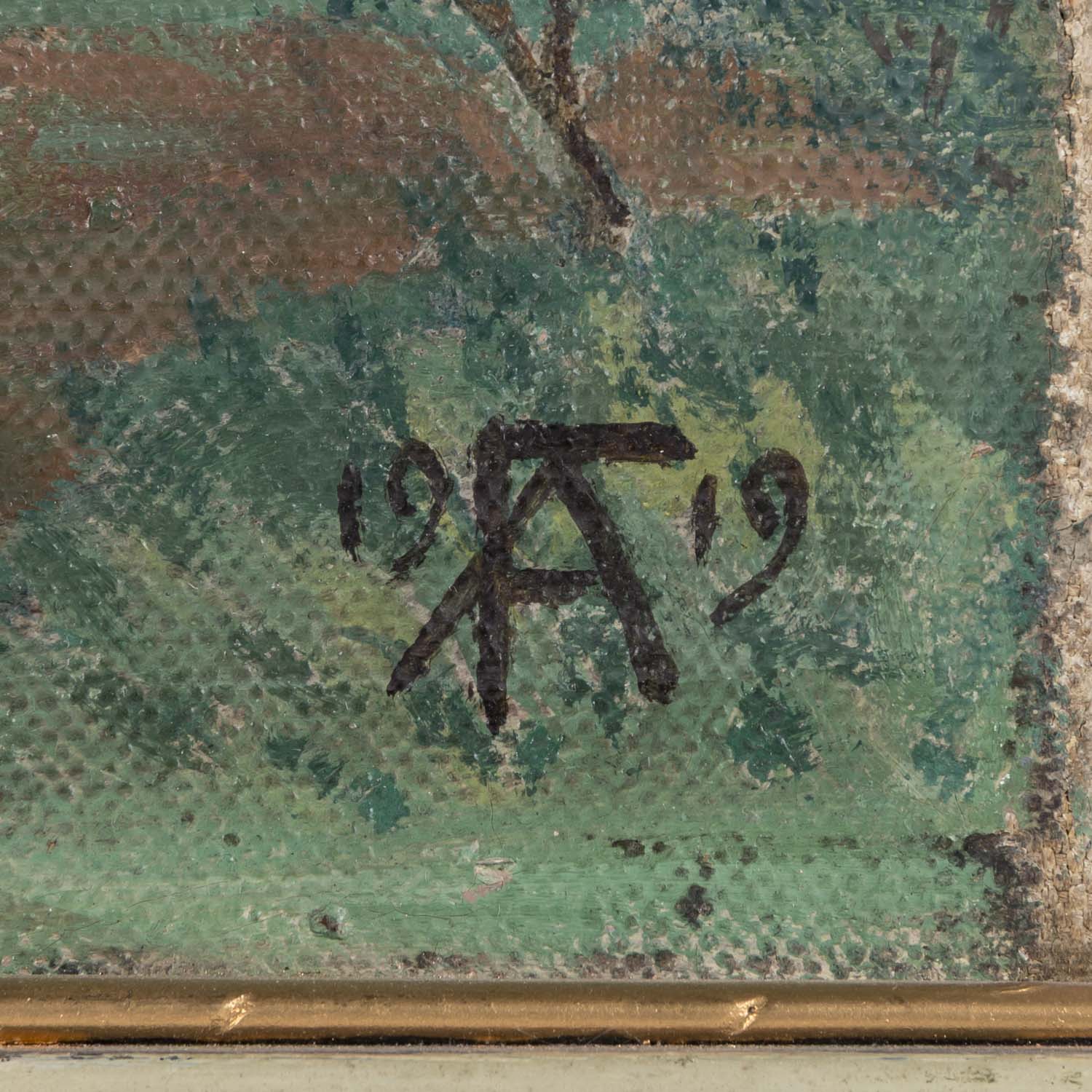 u.re. monogrammiert und datiert, Öl/Leinwand, HxB: ca. 63,5x77,5 cm (76,5x91 cm mit Rahmen). Alters- und Beriebsspuren, Farbabplatzer. Mit Rahmen (Alters- und Beriebsspuren).