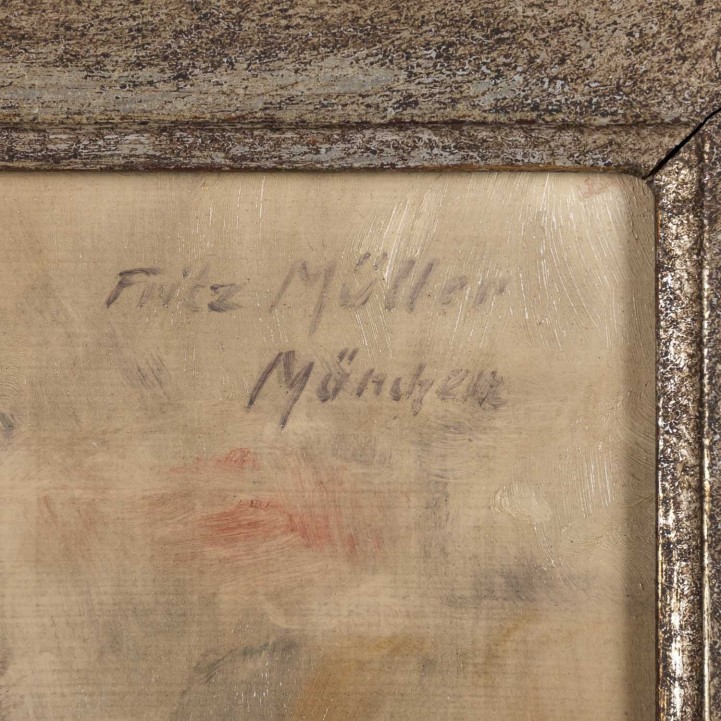 o.re. signiert und bezeichnet 'München', Öl/Malplatte, HxB: ca. 24,5x18,5 cm (43x36 cm mit Rahmen). Alters- und Beriebspuren. Mit Rahmen.