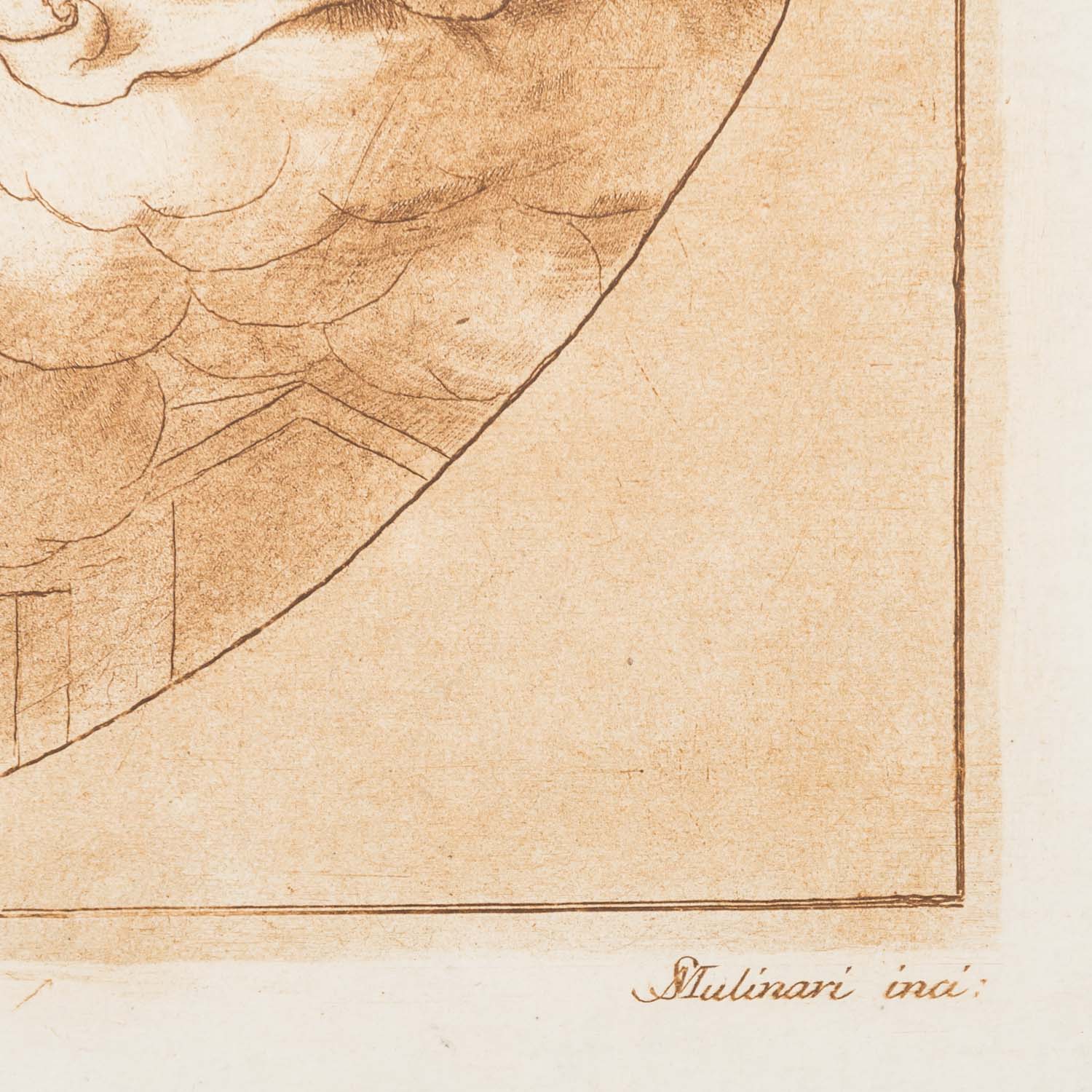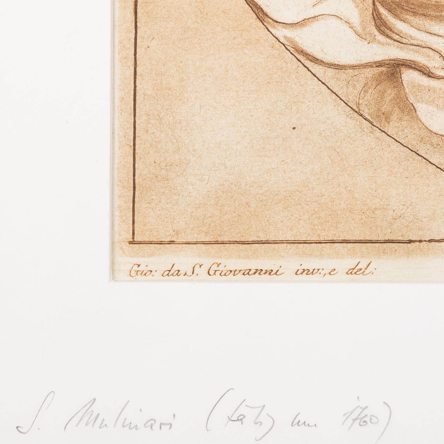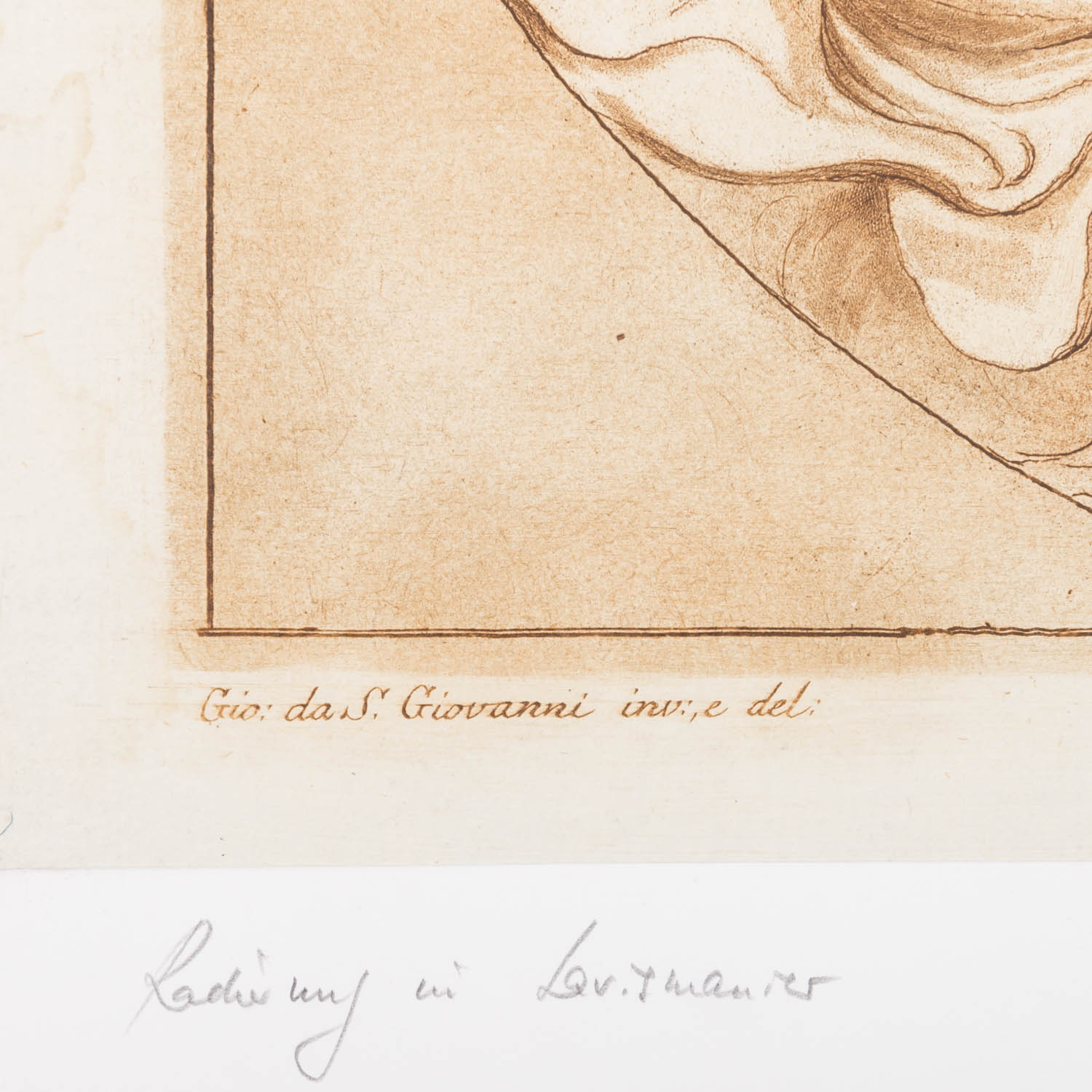Radierung/Aquatinta, nach ein Gemälde von Giovanni da San Giovanni, HxB: 35/29 cm. Links an einem Karton befestigt, Riss im oberen Teil.