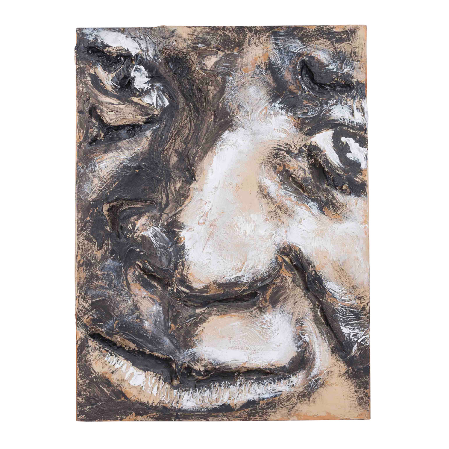 Acryl/durchbrochen gearbeitete Holzplatte (mit Styropor hinterlegt), HxB: 85x64 cm. Leichte Altersspuren. VERSO Etikett des Künstlers mit handschriftlicher Bezeichnung.