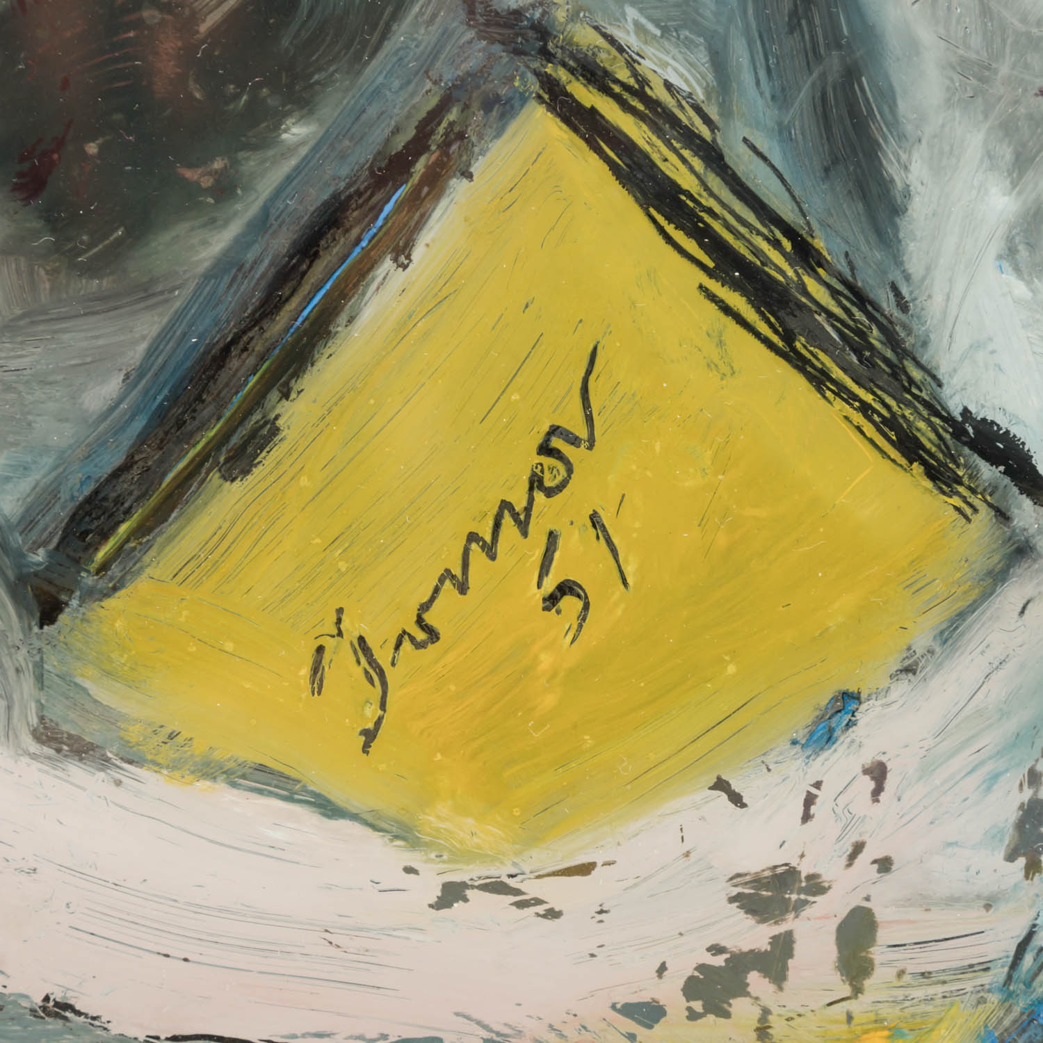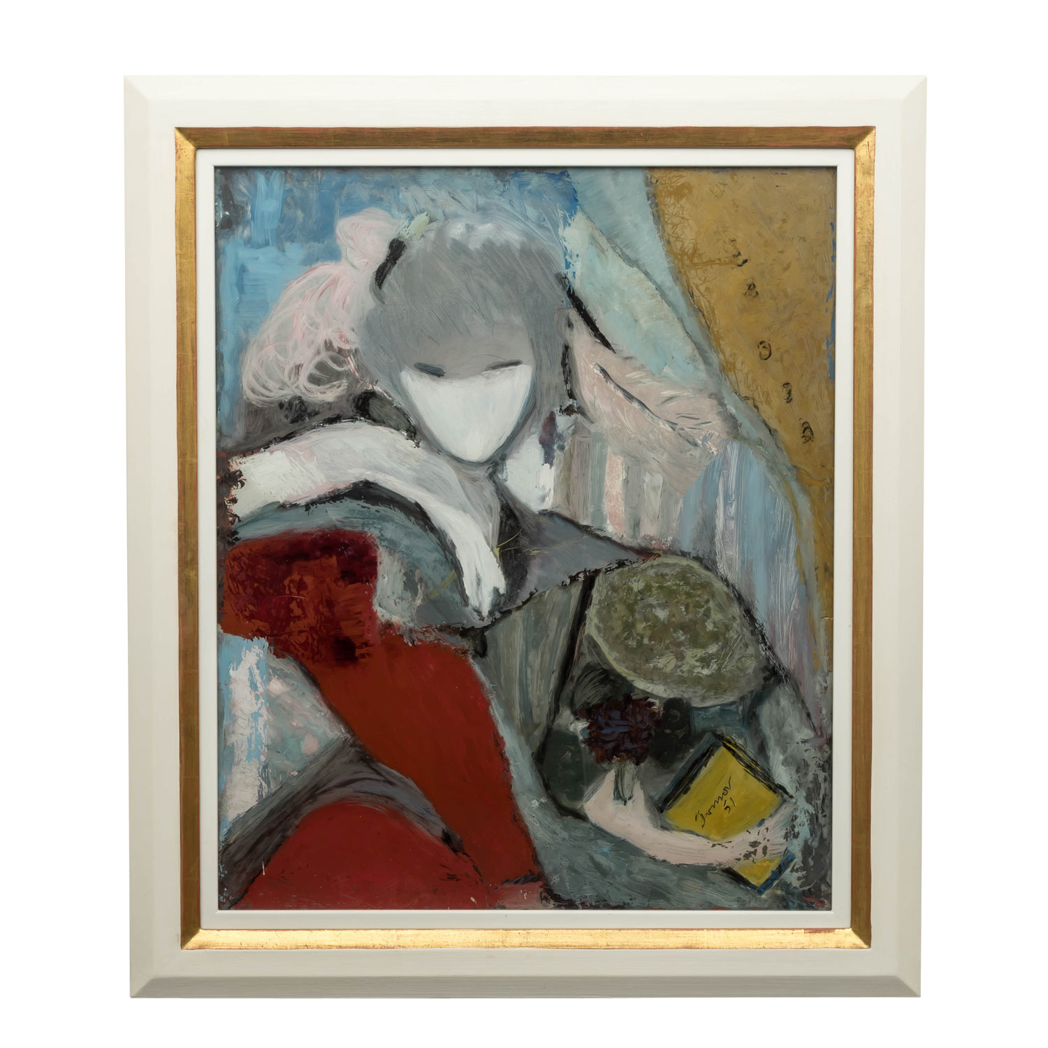 u.re. signiert und datiert 'Irma 51', Öl/Glas, HxB: ca. 56,5x47 cm (68x58 cm mit Rahmen). Alters- und Beriebspuren, Mit Rahmen. VERSO Etikett Kunsthaus Bühler, Stuttgart mit Bezeichnung - PROVENIENZ: Kunsthaus Bühler, Stuttgart, Ausstellung 7.9.-13.10.1973.