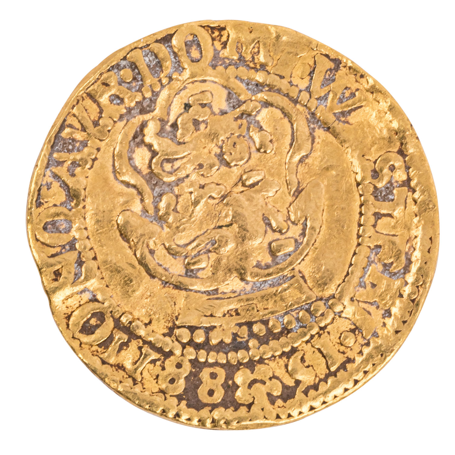 Av: Stehender Herrscher, Rv: Wappen, s, stark berieben, Kratzer, Randfehler, Rand teilweise befeilt, Schrötling stark gebogen/ gewellt, verschmutzt, 3,45g Au rau, Friedberg 291
