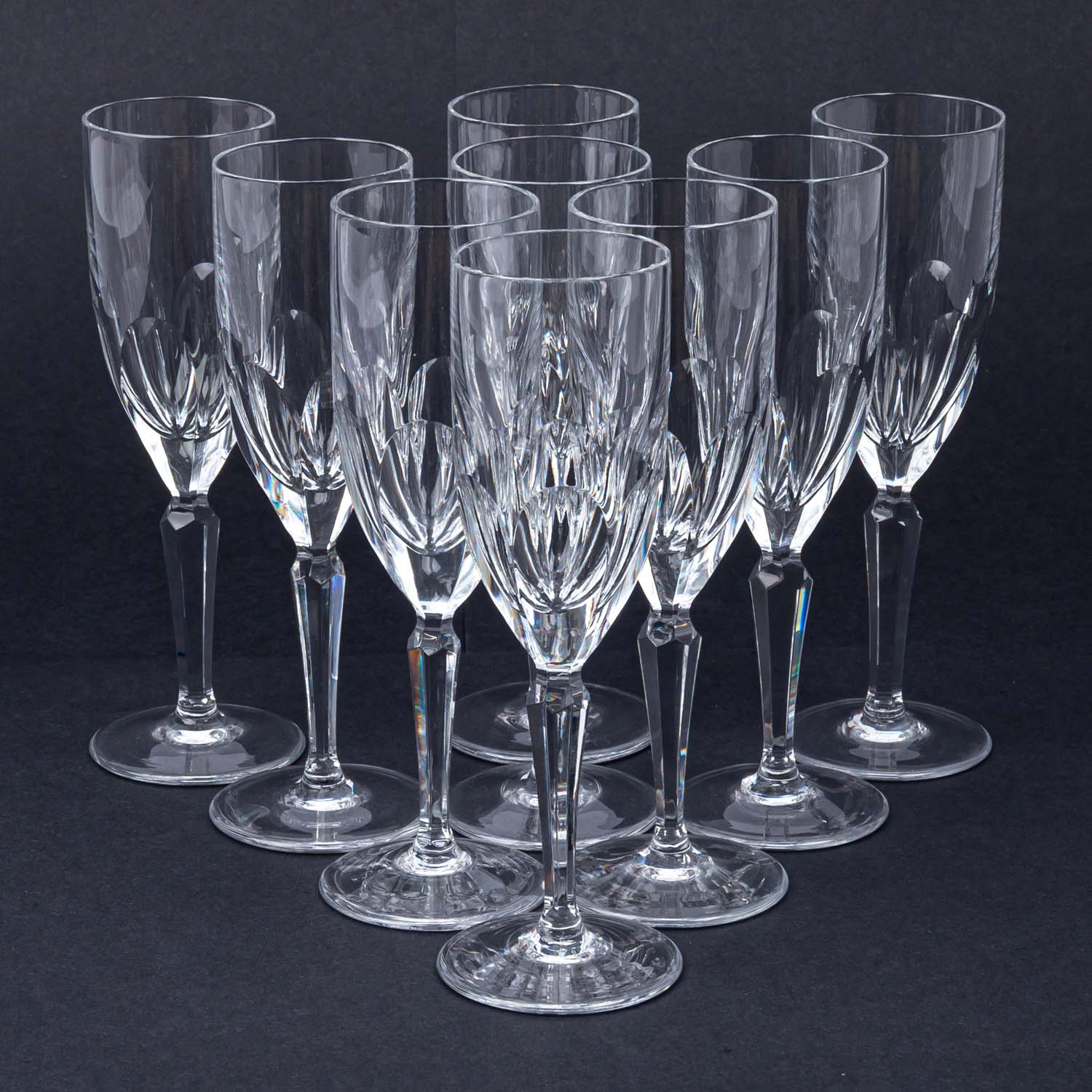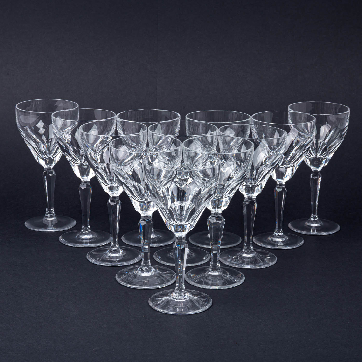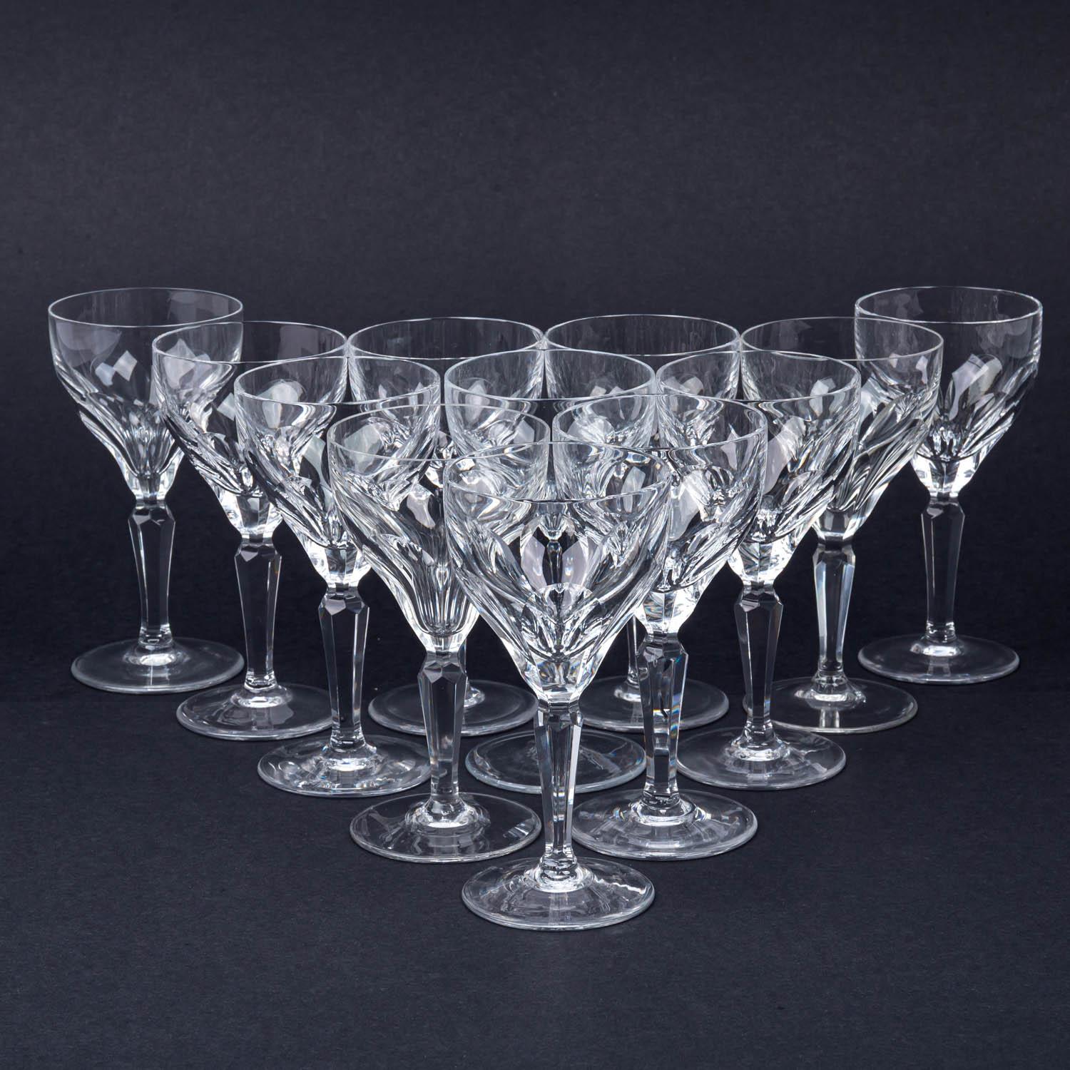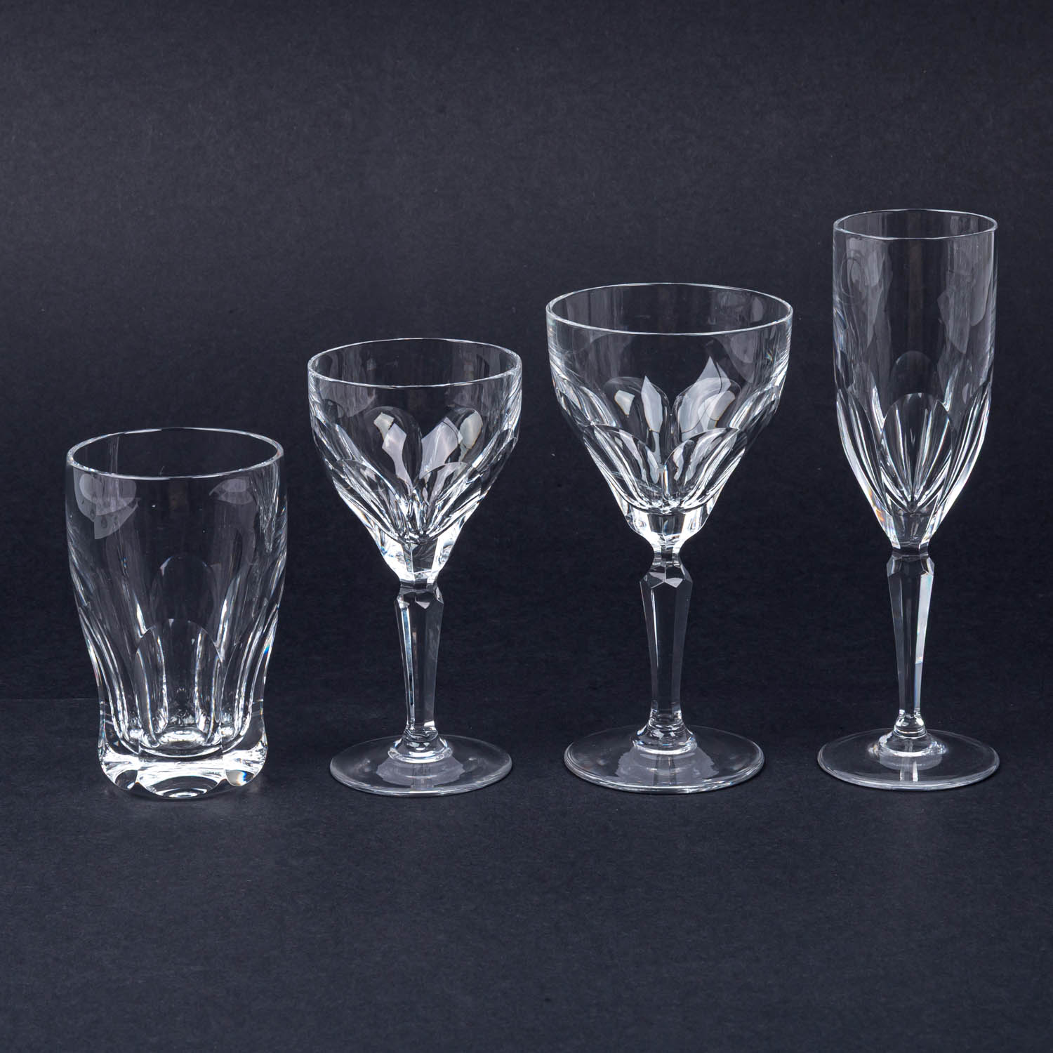 bestehend aus 12x Wasserglas, 12x Rotweinglas, 12x Weißweinglas, 9 x Sektglas. H Sektglas: 19 cm. Sehr schöner Erhalt.
