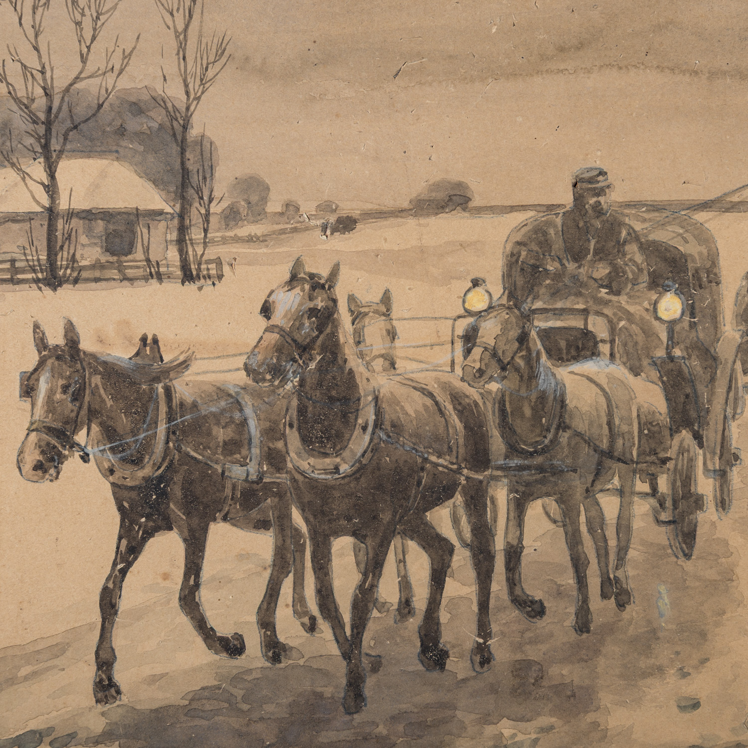 OESTERSCHMIDT, HEINRICH (1879-?) 'Pferdekutschen auf einer verschneiten Ebene' 1909