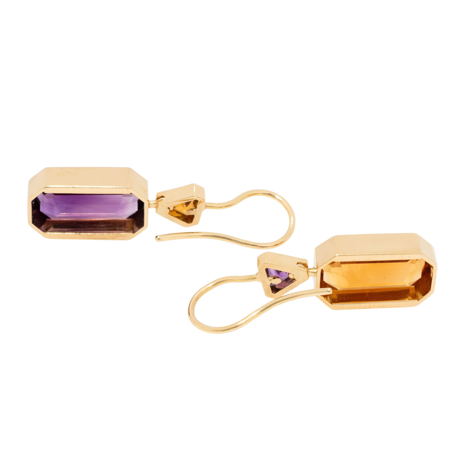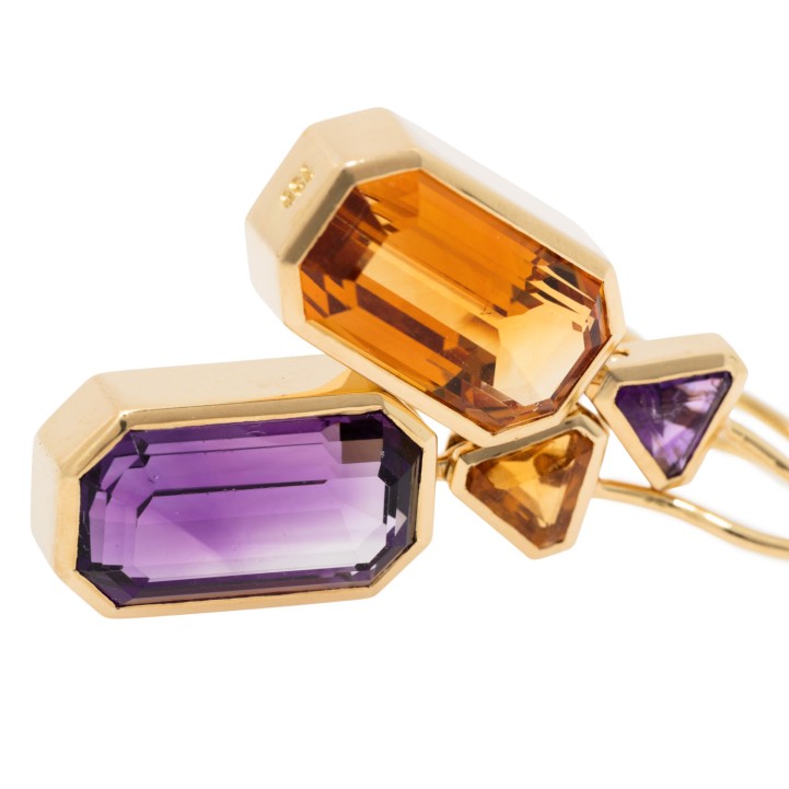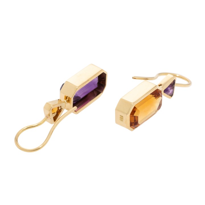Ohrhänger mit gegengleichen Amethysten und Citrinen,
