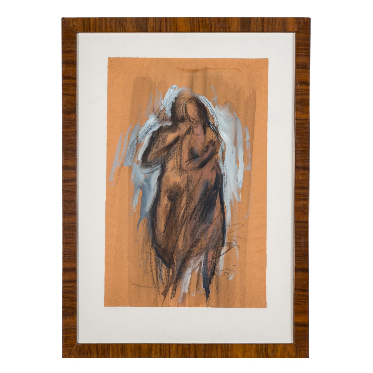unten rechts signiert und datiert: 'Oldenburg 59'. Gouache und Kreide auf Papier, HxB: ca. 48,5 x 31 cm (HxB Rahmen: ca. 66,5 x 48,5 cm). Altersspuren, leicht fleckig. Mit verglastem Rahmen.