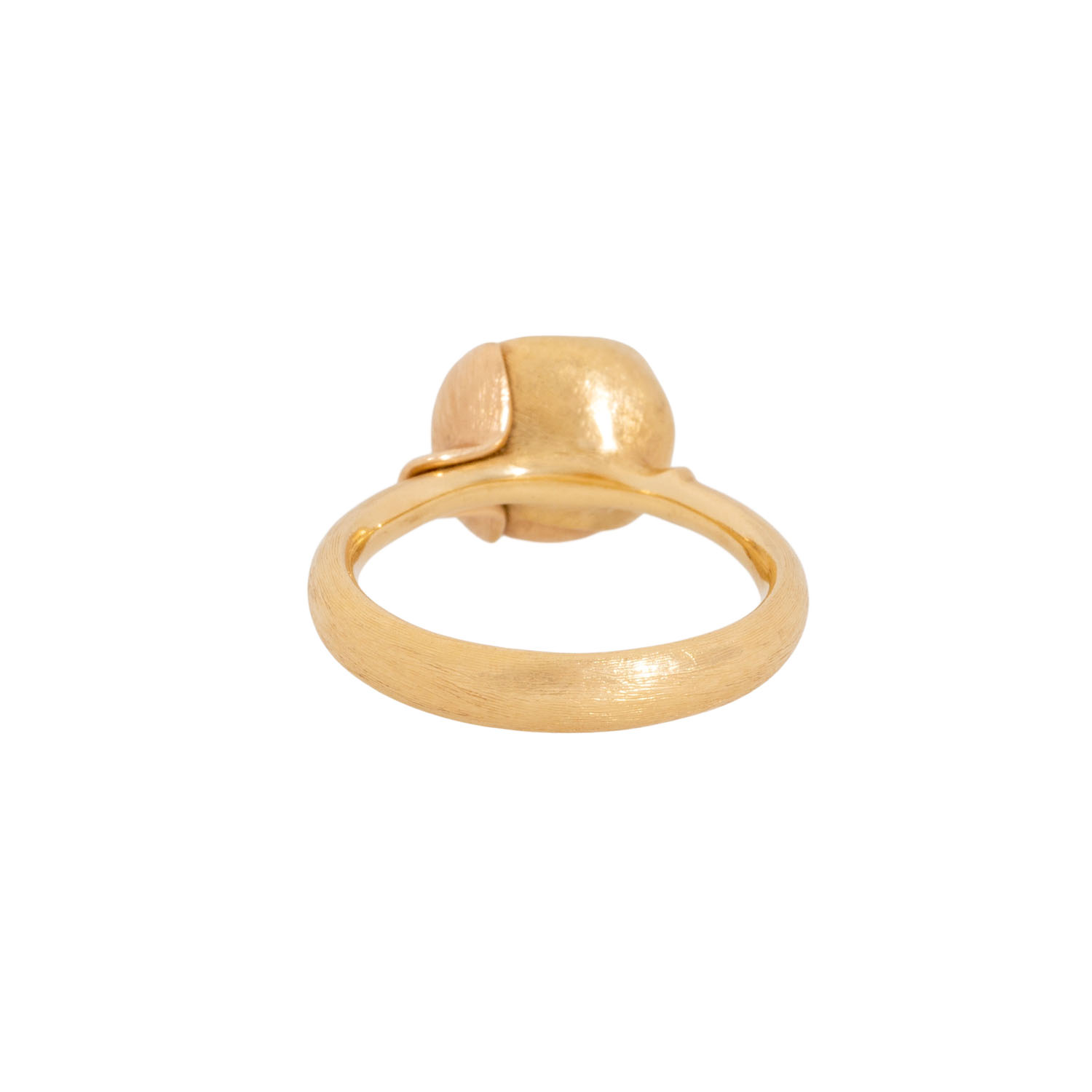 runder Cabochon, D: ca. 9 mm, RG/GG 18K, 7,2 g, RW: 53, 21. Jh., minimale Tragespuren.
