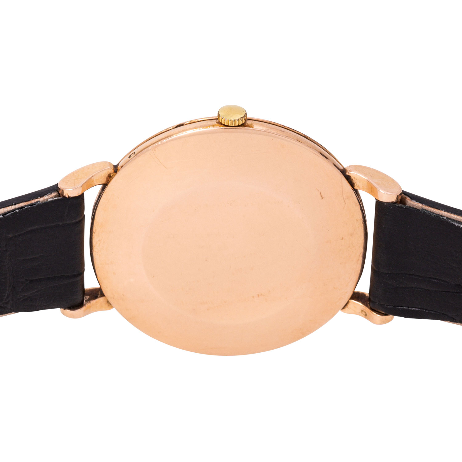 18K Roségold. Neues Lederband mit Dornschließe. Hammer Automatikwerk Kal. 332 in funktionsfähigem Zustand. Zifferblatt mit aufgesetzten Indizes und kleiner Sekunde. Gebrauchter, altersgemäßer Zustand. Durchmesser ca. 37 mm ohne Krone. Passend bis zu ca. 19,5 cm Handgelenkumfang.