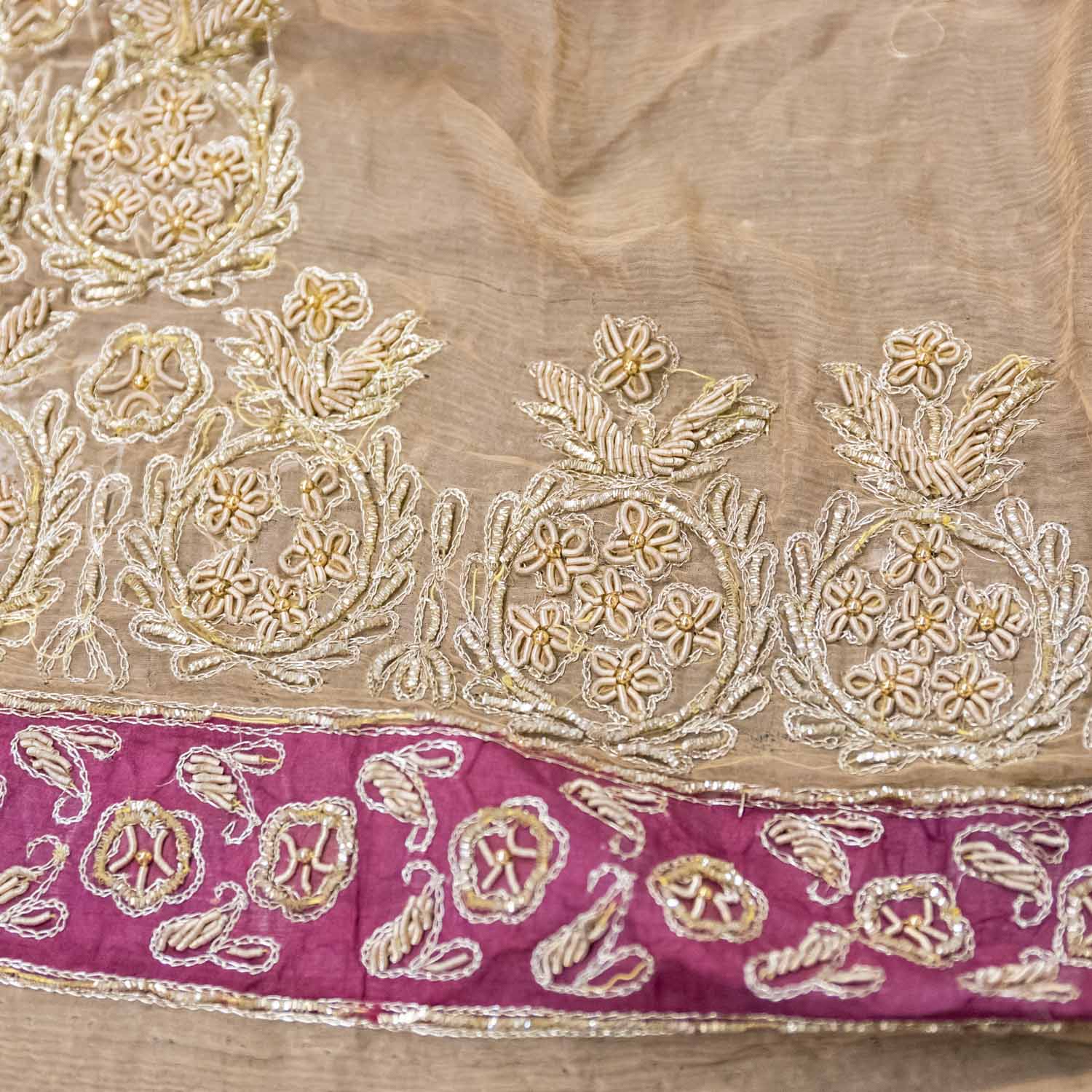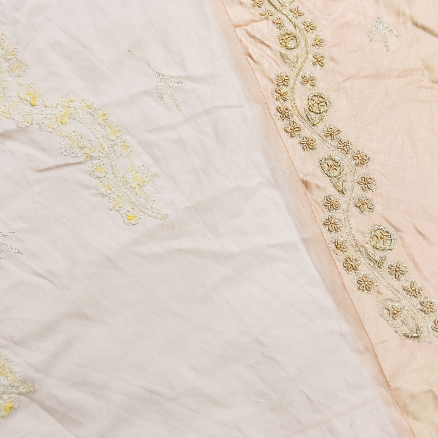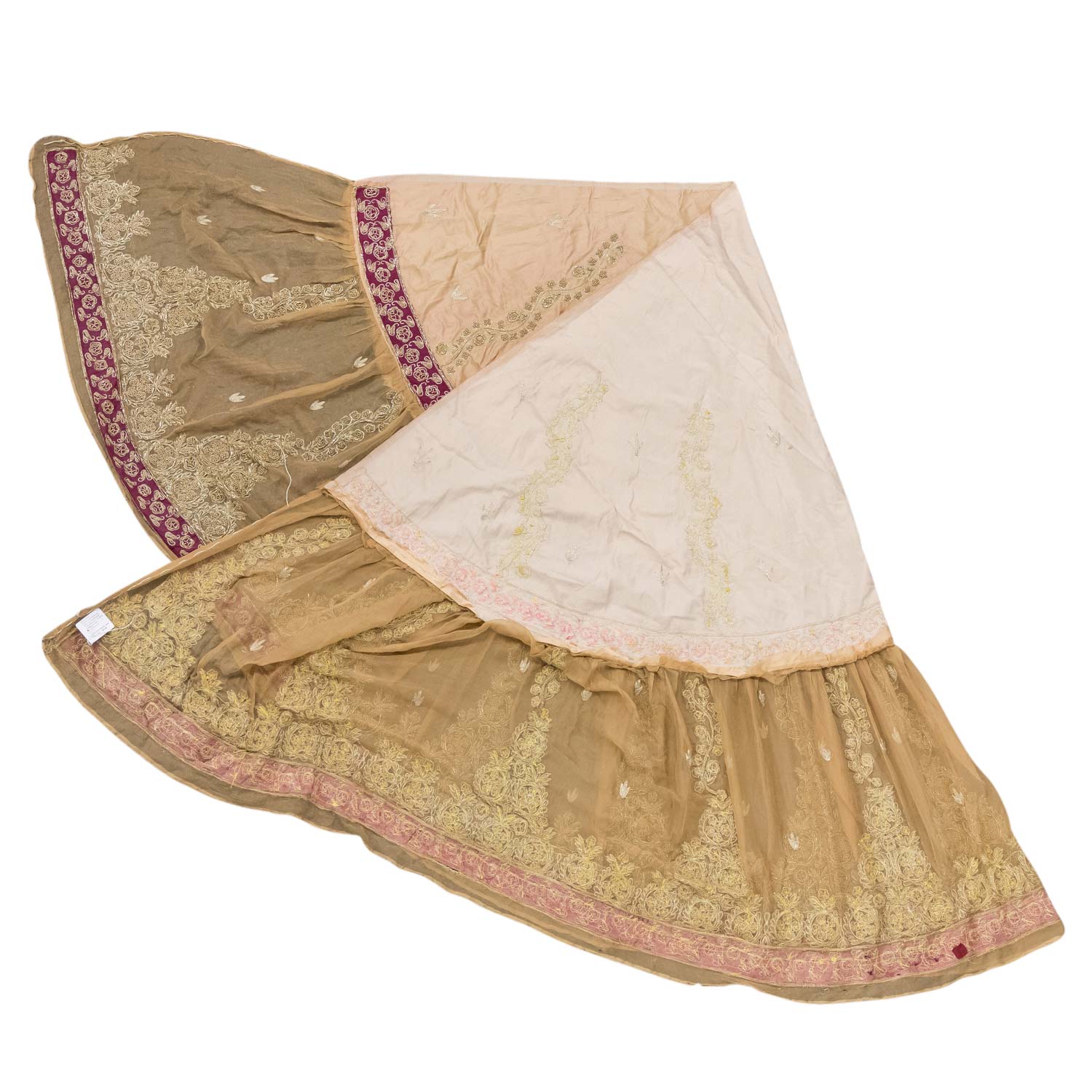 Feiner Materialmix mit reicher Goldfadenstickerei, ca.150x75 cm (mit Rüschenabschluß 150x130 cm)