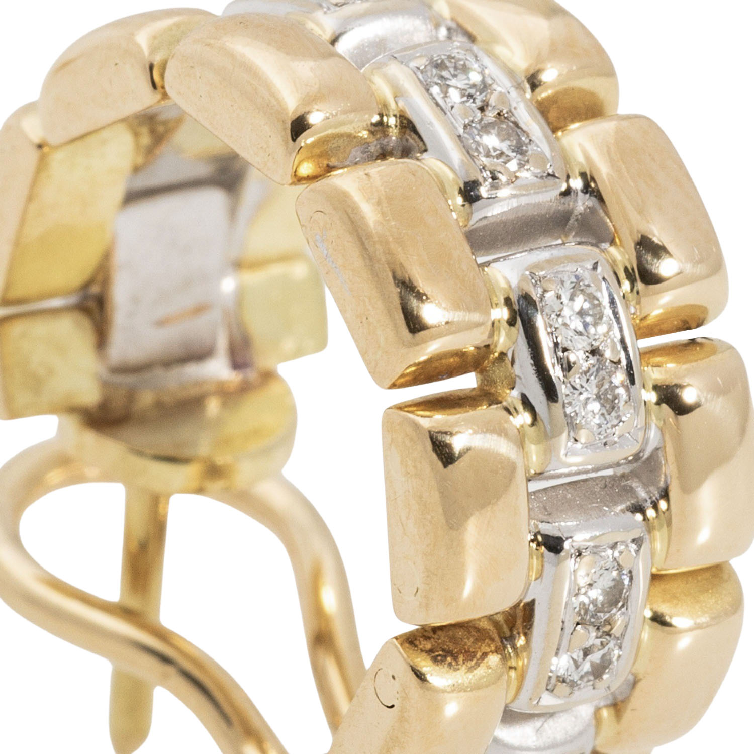 ges. 0,37 ct (grav.), gute Farbe und Reinheit, GG 18K, teilrhodiniert, 14,9 g, L x B: 17 x 8 mm, Ende 20. Jh., minimale Tragespuren.