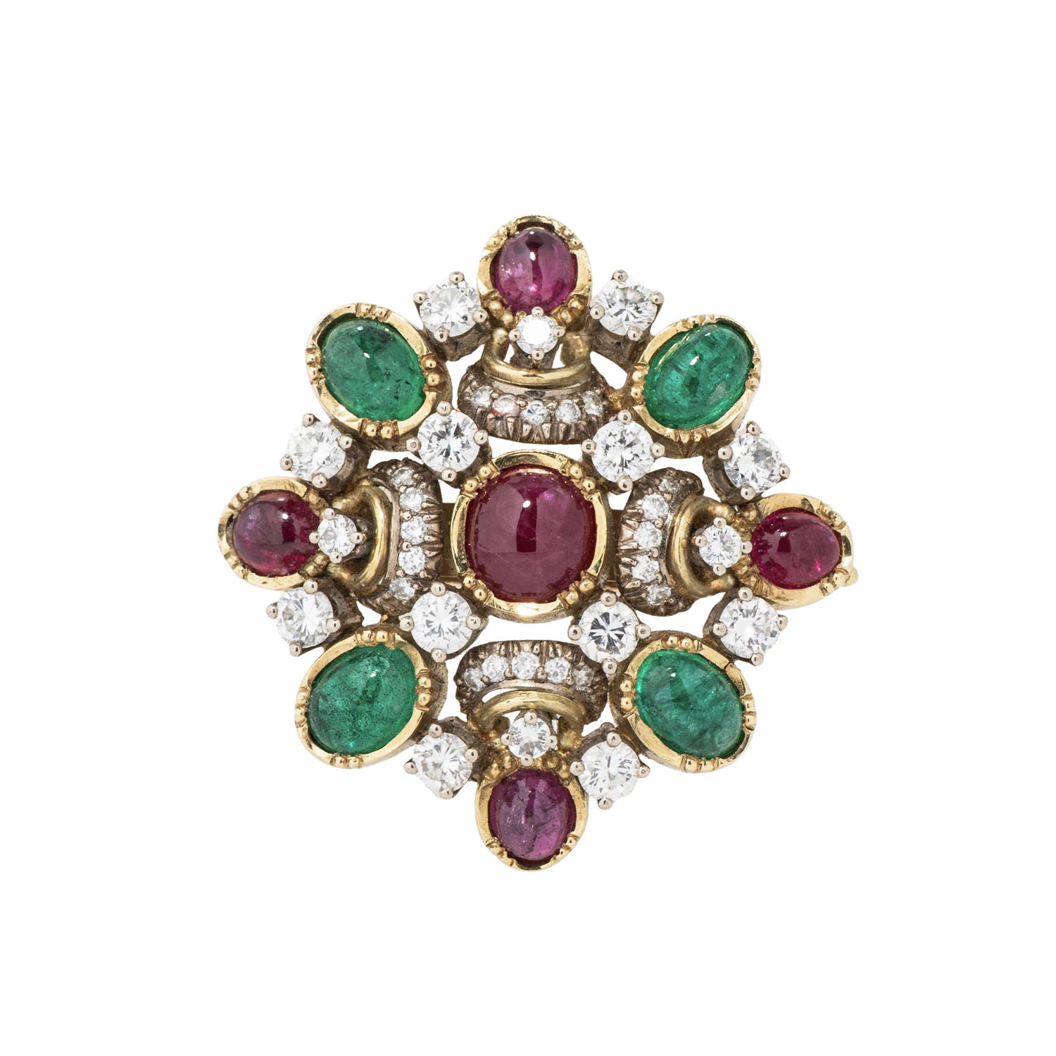 Klassischer Ring mit feinem Rubin, 48 Diamanten,