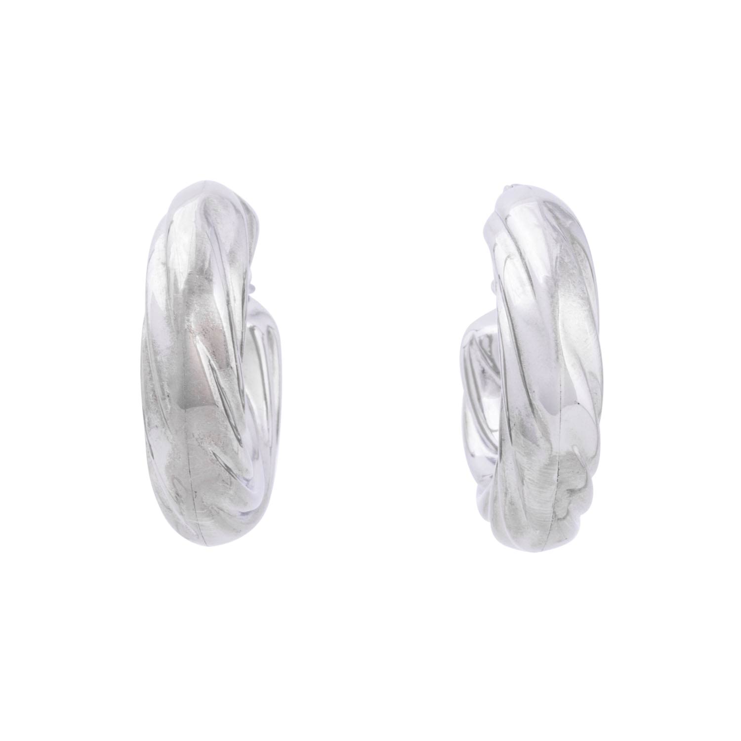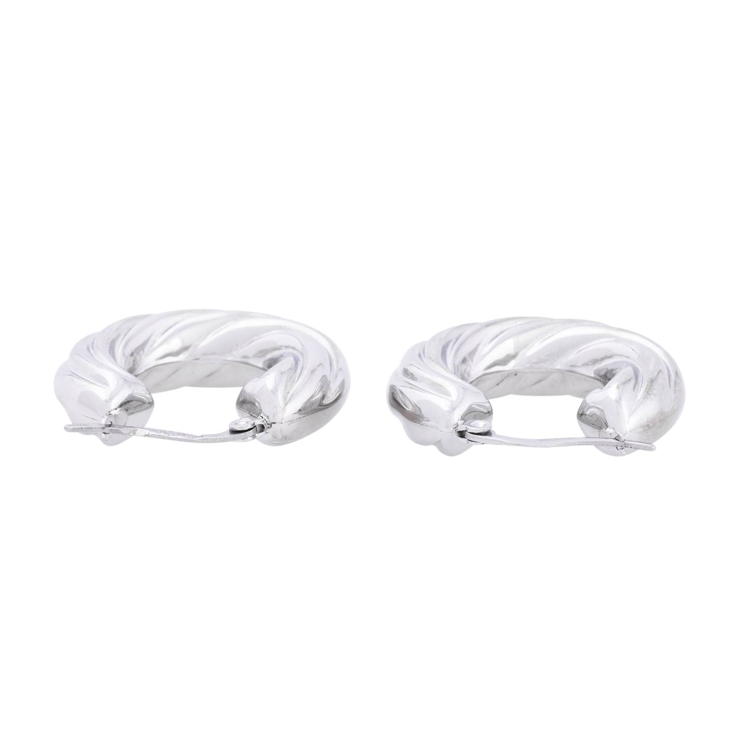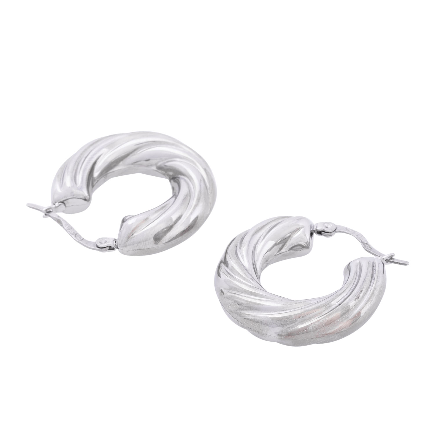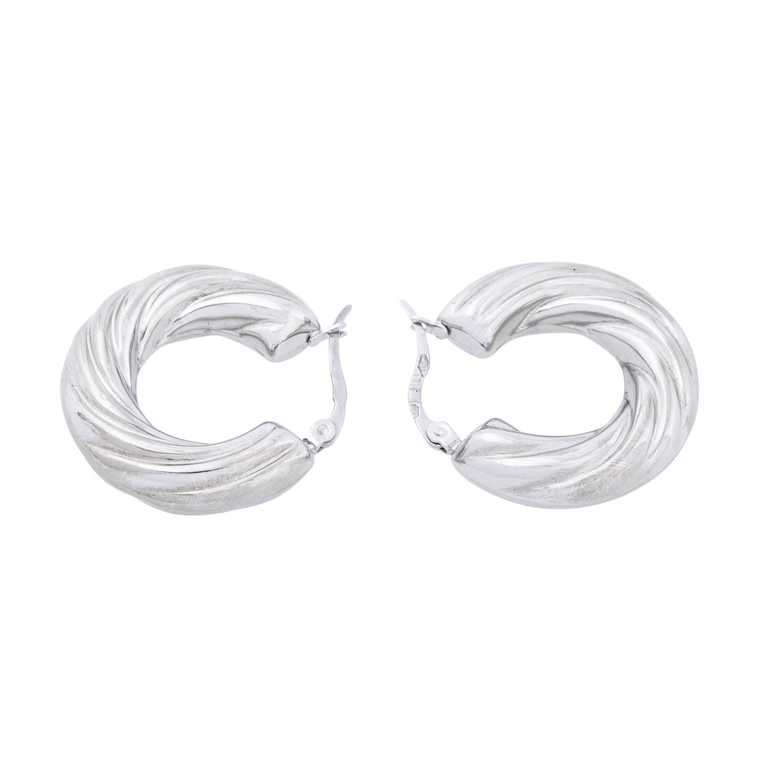 Pair of hoop earrings, 18K white gold, platinum plated, 9.3 g, D: ca. 14.1 mm, W: ca. 8.1 mm, 21st century, minimal signs of wear, with hallmark´s.