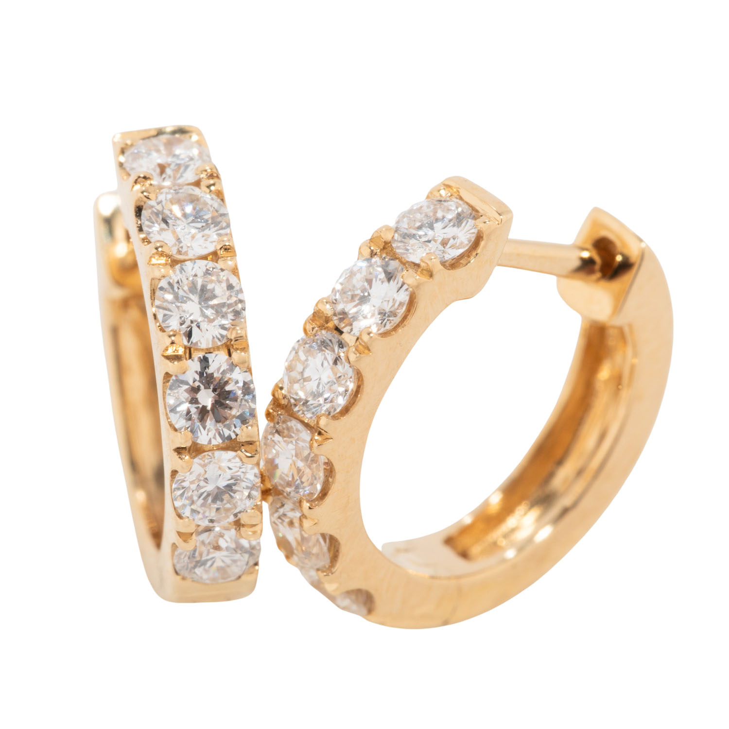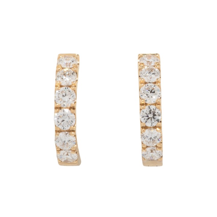 im Brillantschliff von zus. 0,49 ct, GG 18 K, 2 g, D: 12 mm, 21. Jh., neuwertiger Zustand.