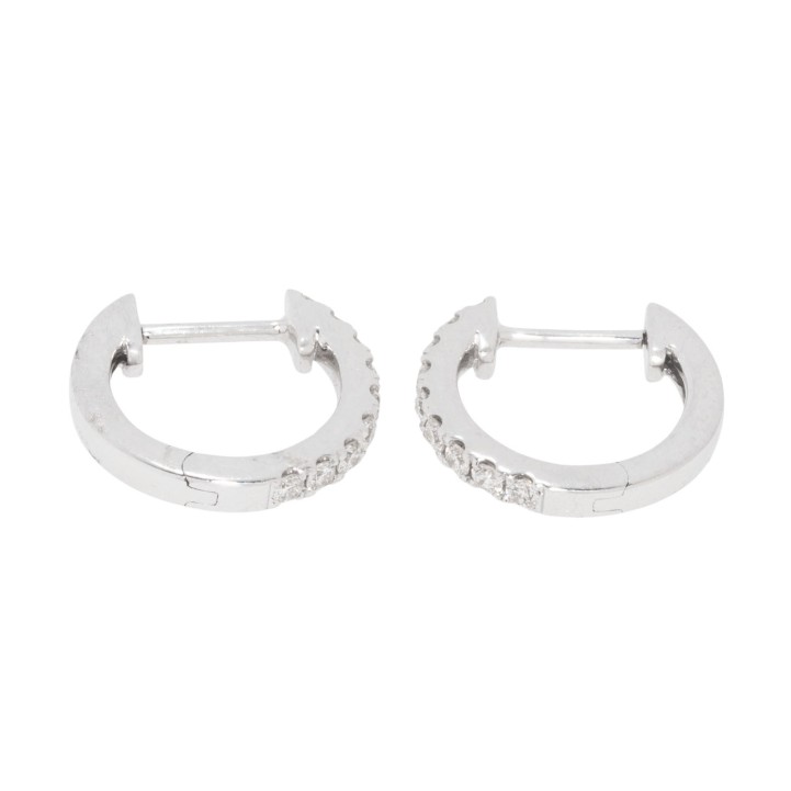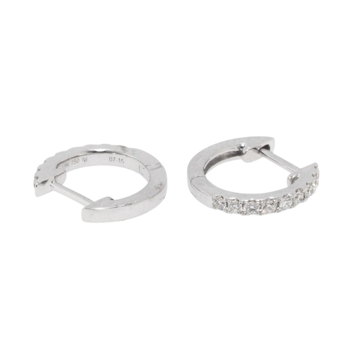 im Brillantschliff von zus. 0,19 ct, gute Farbe und Reinheit, WG 18 K, 1,7 g, D: 12 mm, 21. Jh., neuwertiger Zustand.