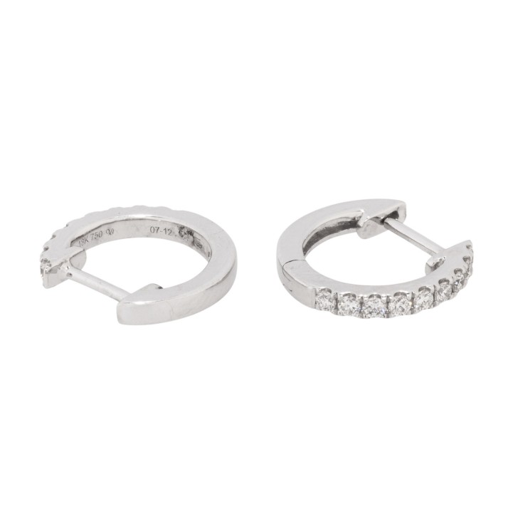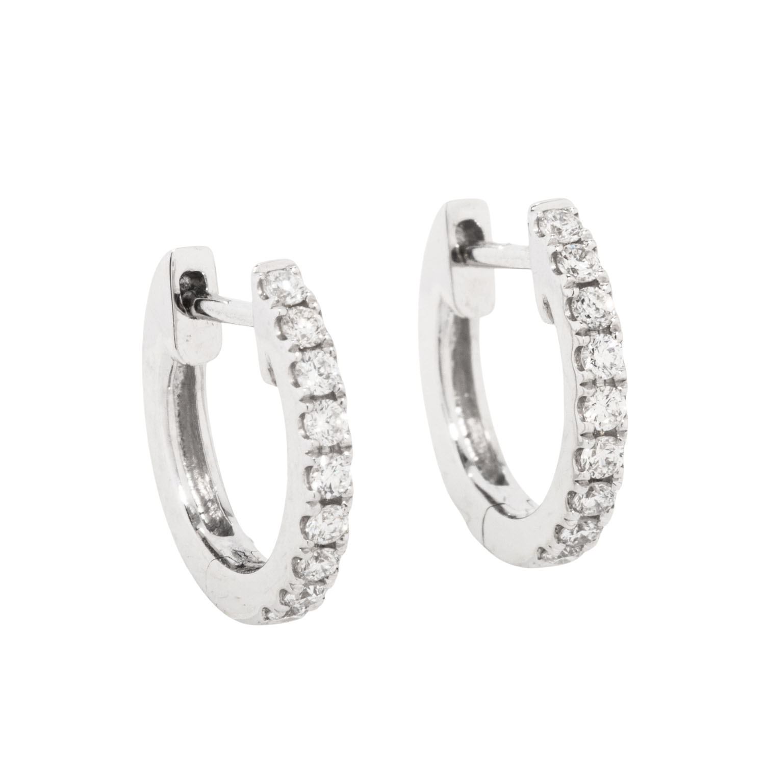 im Brillantschliff von zus. 0,19 ct, gute Farbe und Reinheit, WG 18 K, 1,7 g, D: 12 mm, 21. Jh., neuwertiger Zustand.