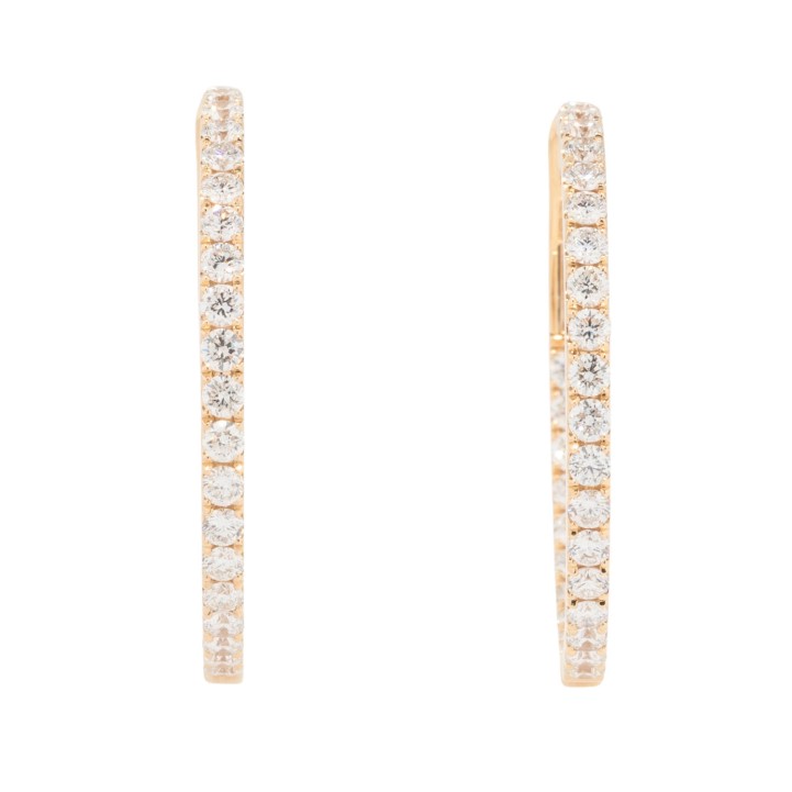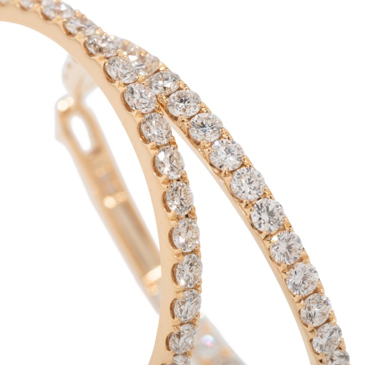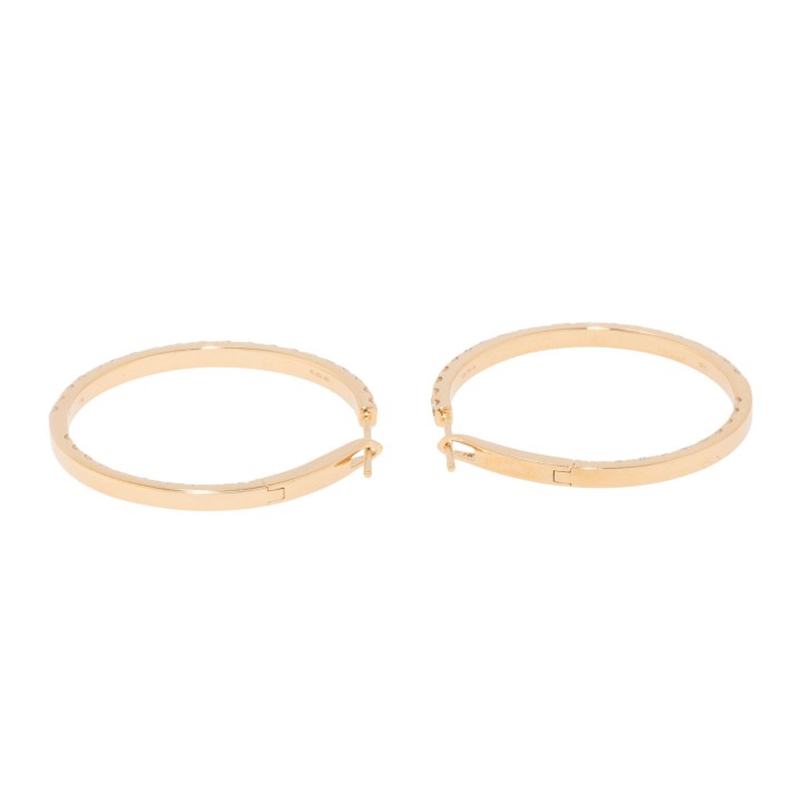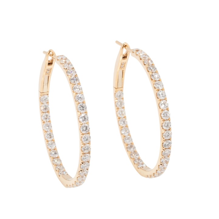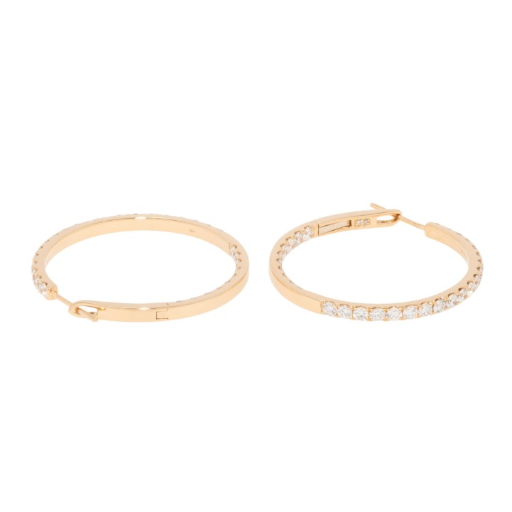 Paar Creolen mit 64 Diamanten im Brillantschliff von zus. 2,61 ct, gute Farbe und Reinheit, GG 18 K, 7,8 g, D: 31 mm, 21. Jh., neuwertiger Zustand.
