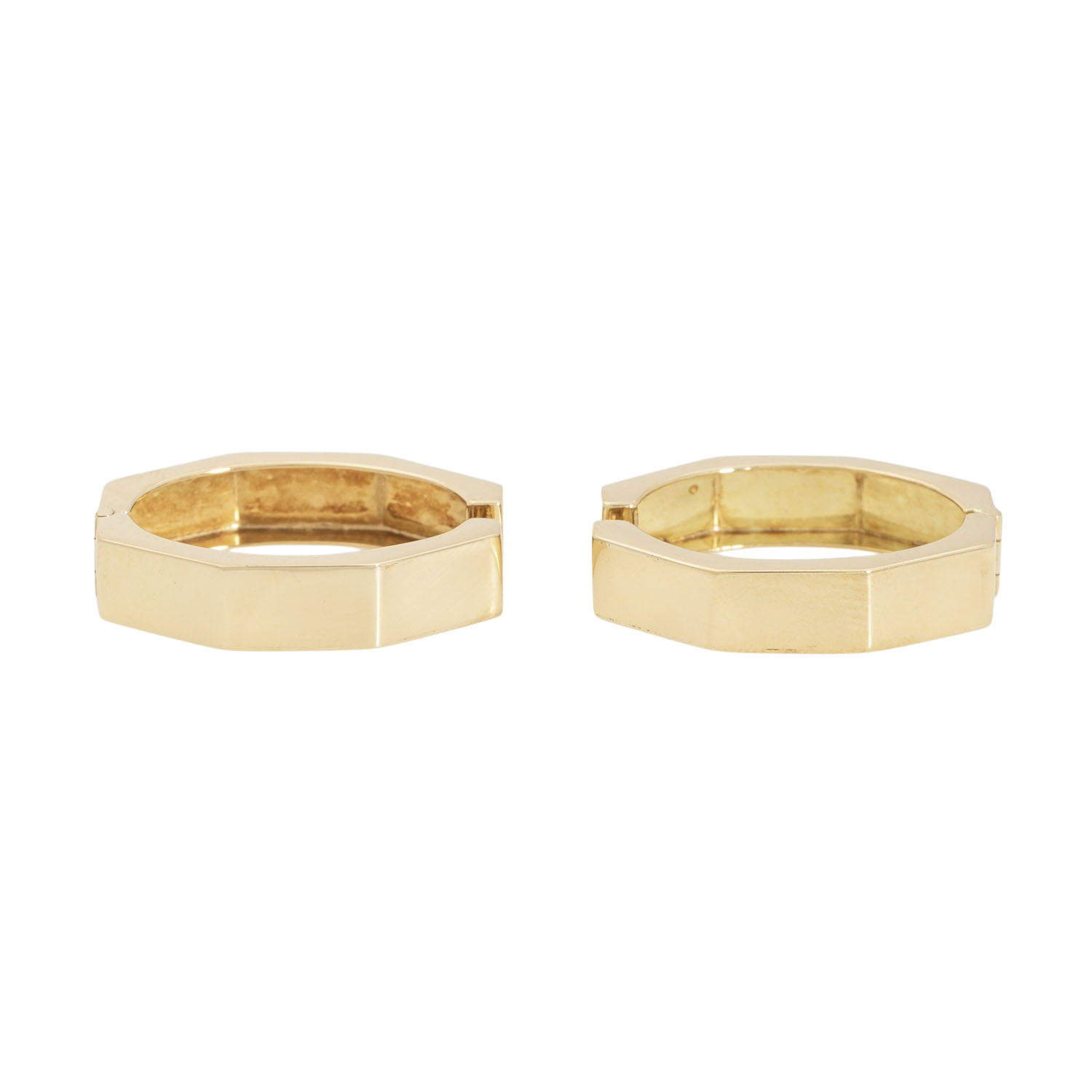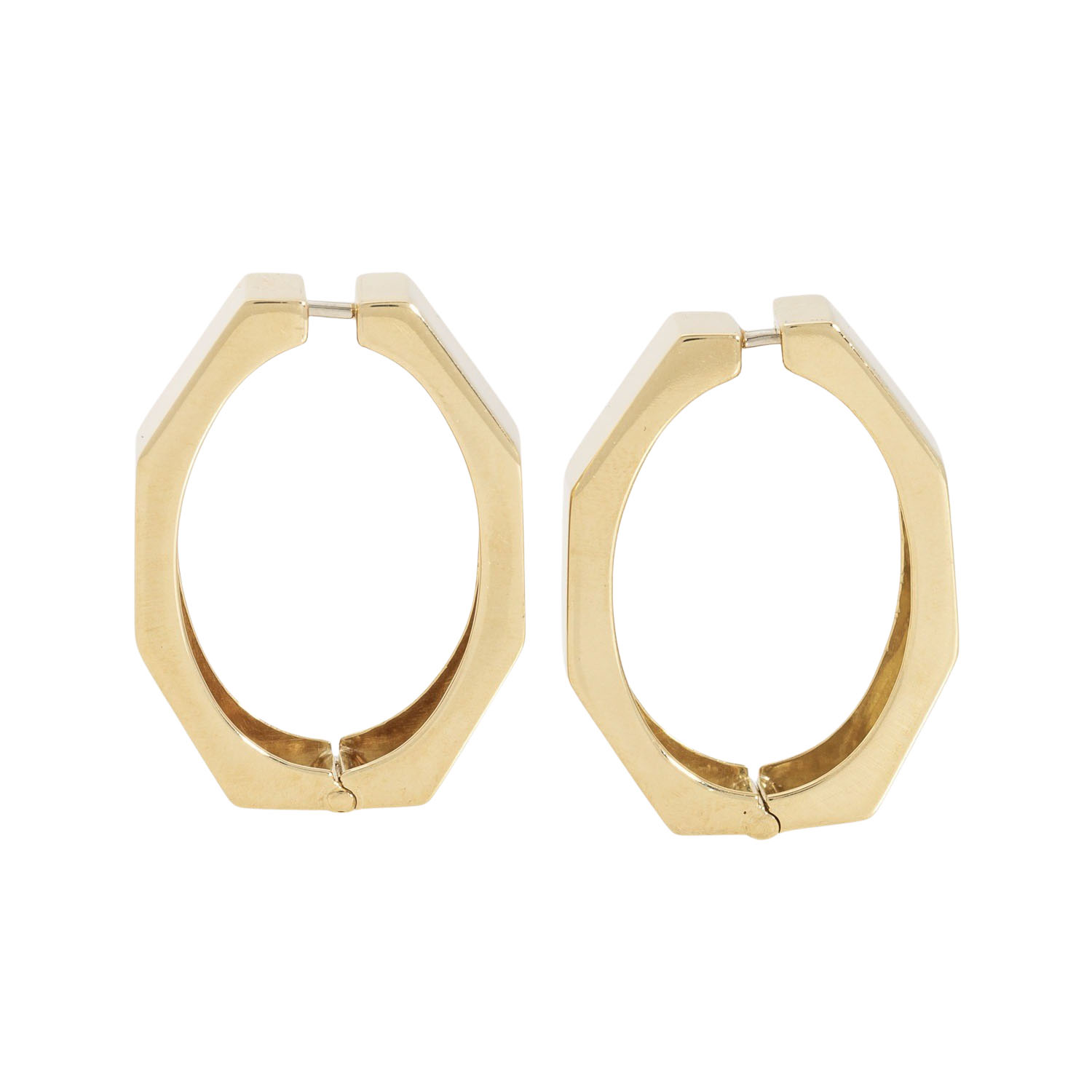 Pair of folding hoop earrings, 18K yellow gold, 11.0 g, L x W: 30 x 7 mm, elongated octagonal shape on the sides, 20th/21st century, minimal signs of wear.