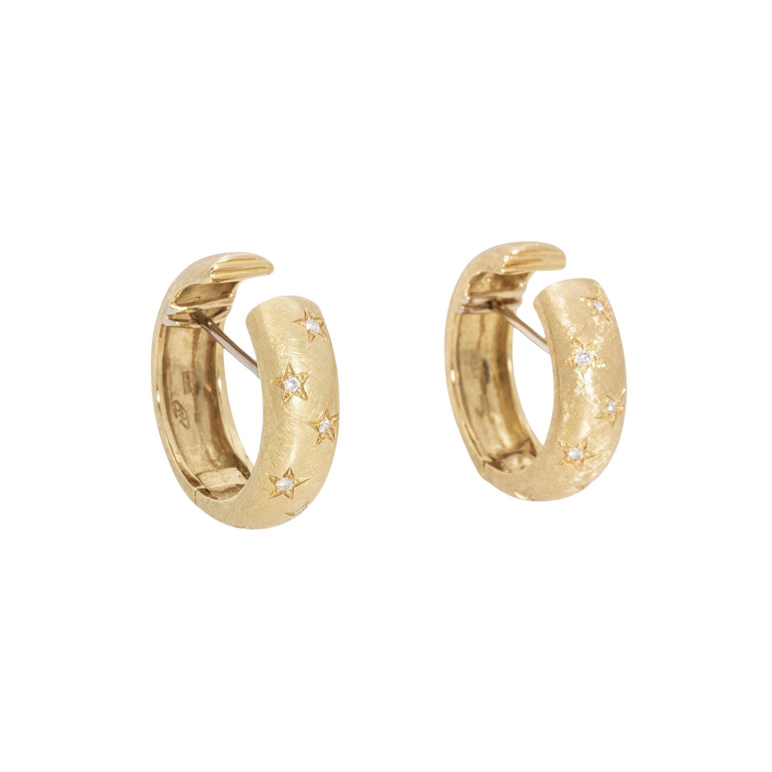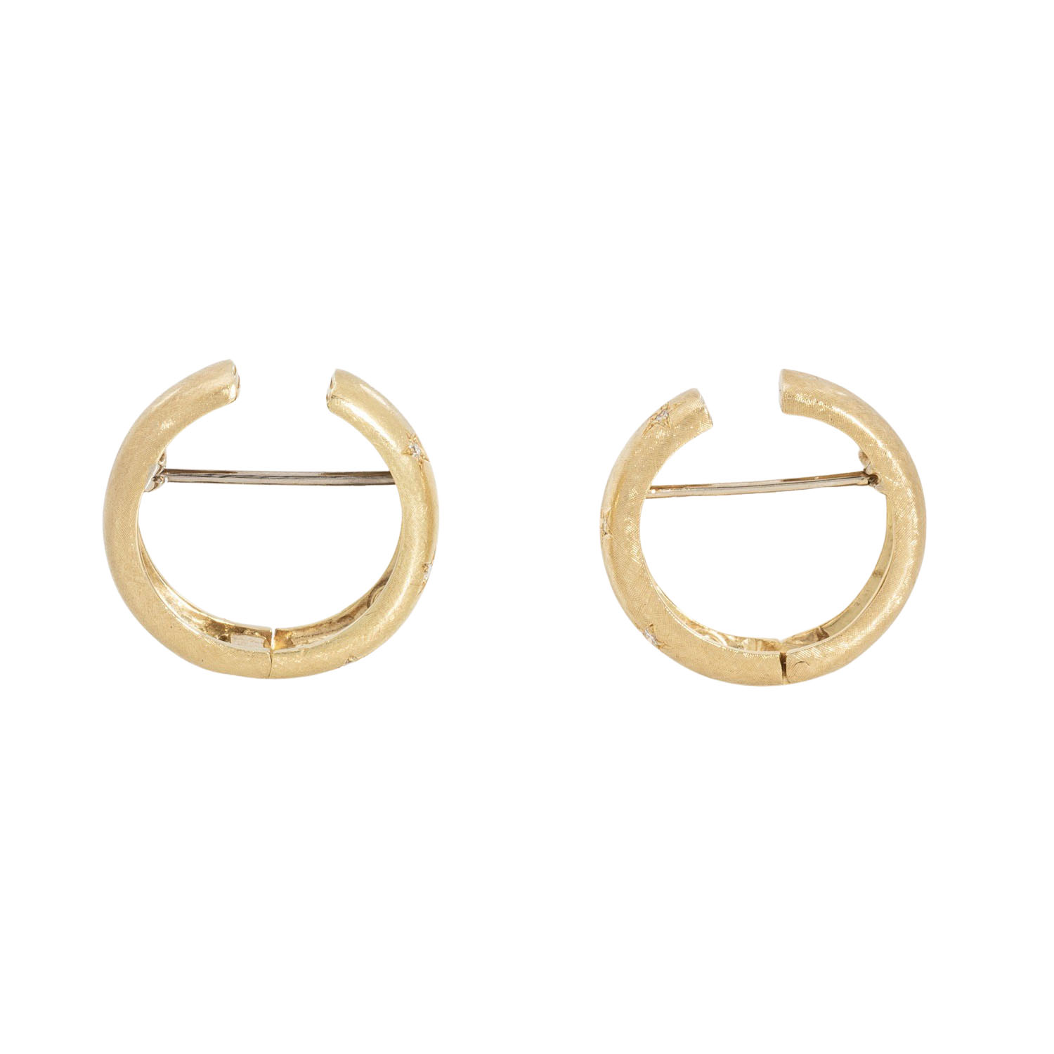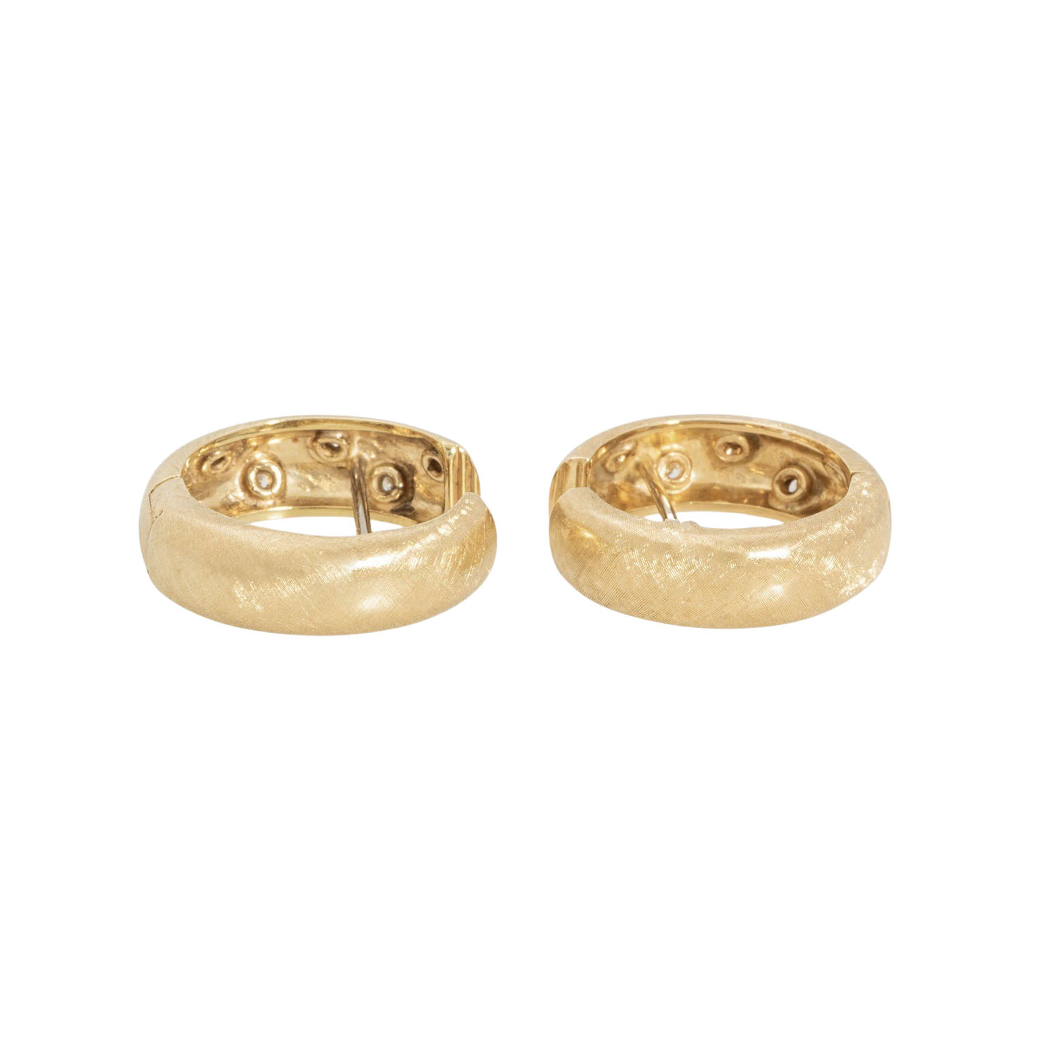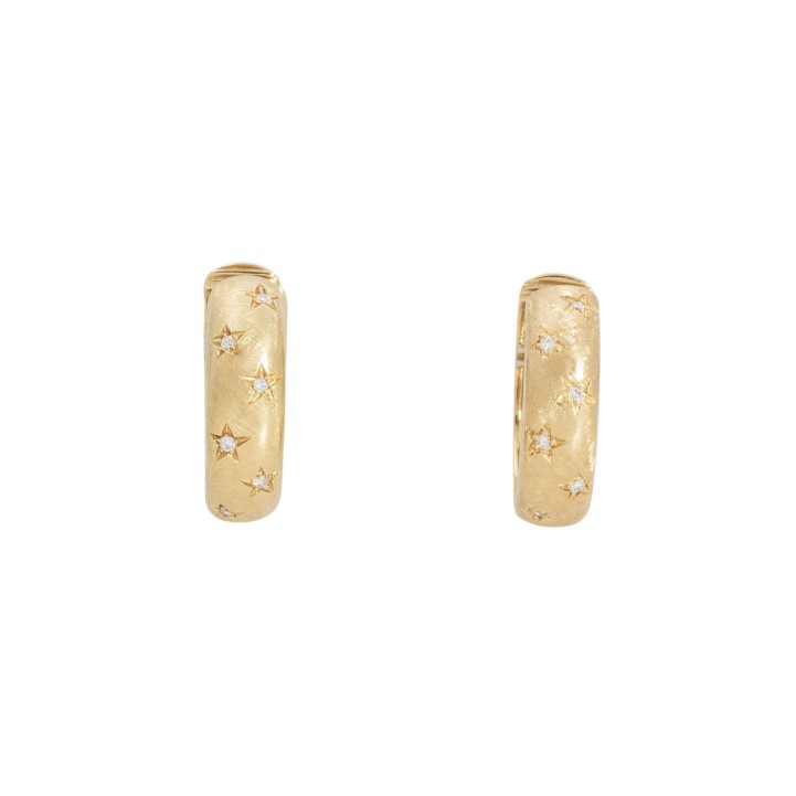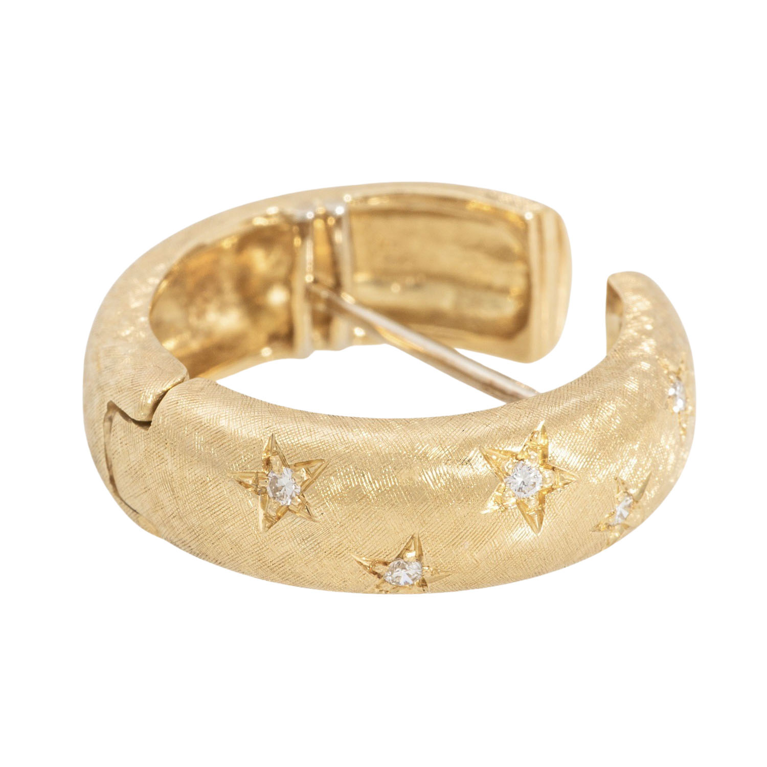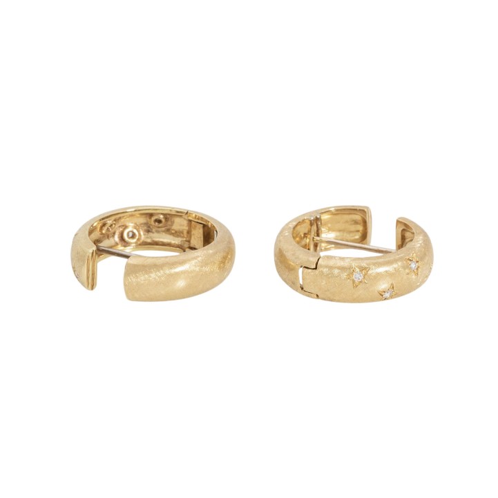 ges. ca. 0,10 ct, GG/WG 18K, 14,3 g, L x B: 22 x 6,6 mm, Oberfläche strichmattiert, Ende 20. Jh., minimale Tragespuren.