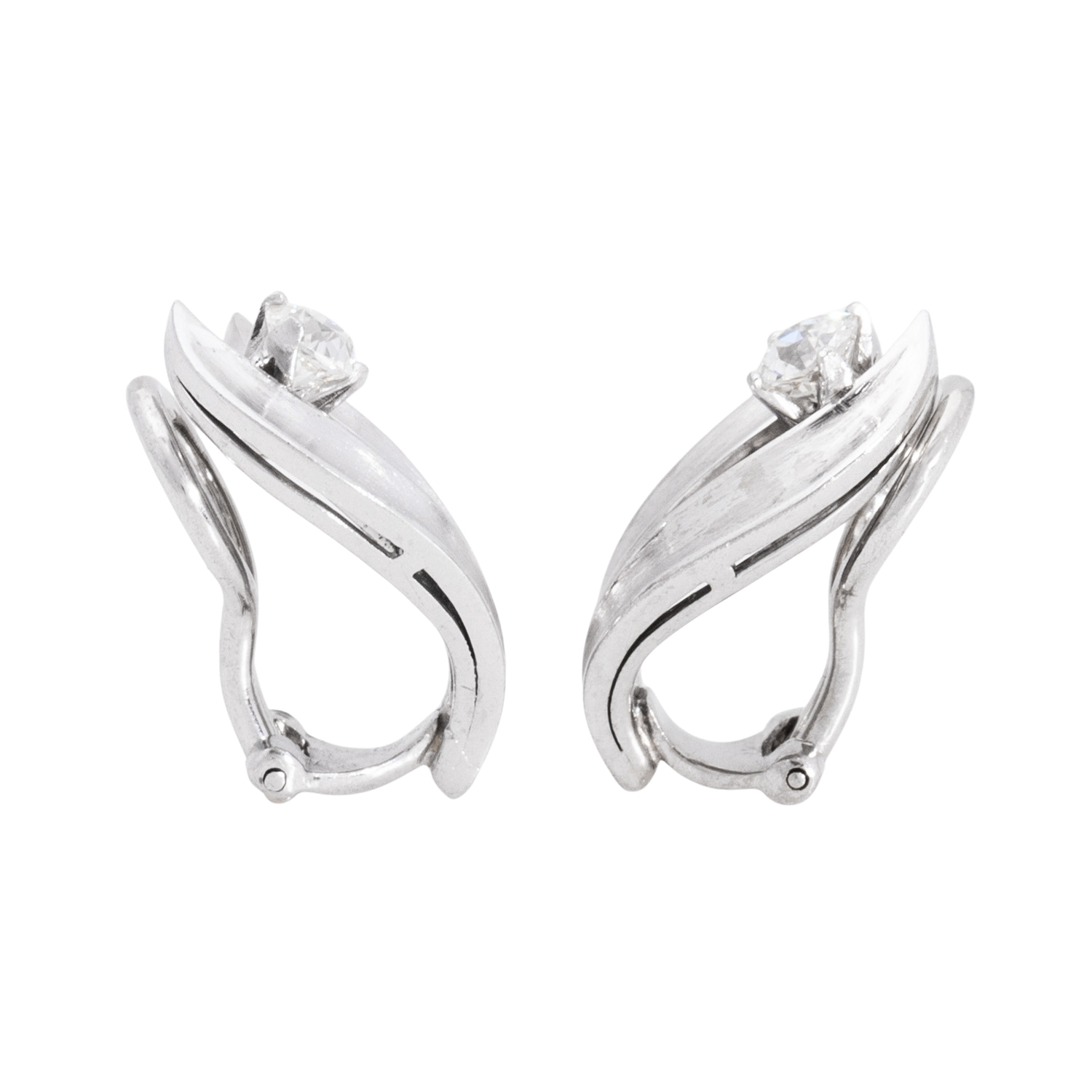 zus. ca. 0,30 ct, LGW (I-J)/VS, WG 18K, 6,6 g, poliert/mattiert, L: ca.18,7 mm, B: ca. 12,1 mm, 2. H. 20. Jh., leichte Tragespuren.