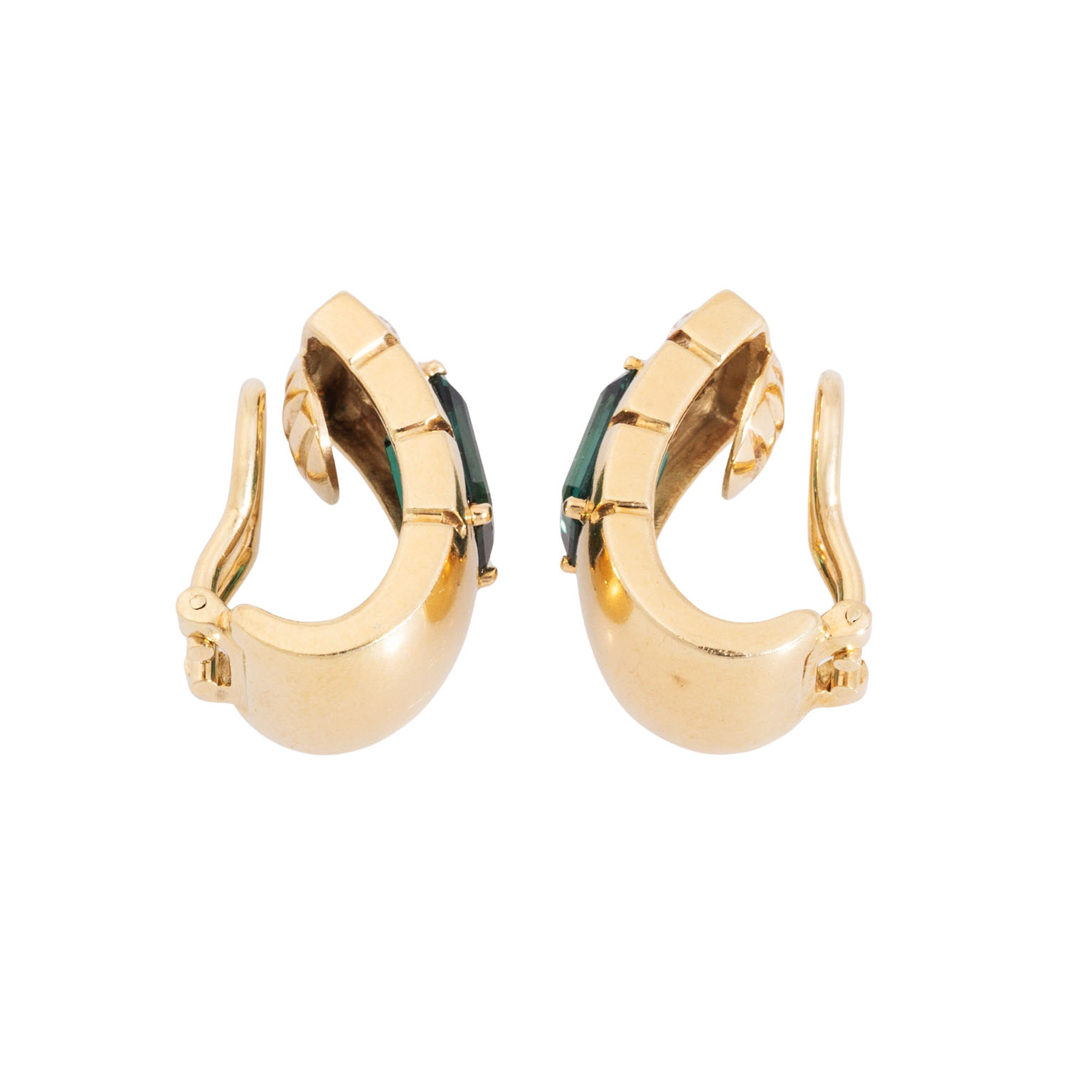 Paar Ohrclip mit 2 grünen Turmalinen und 4 Brillanten