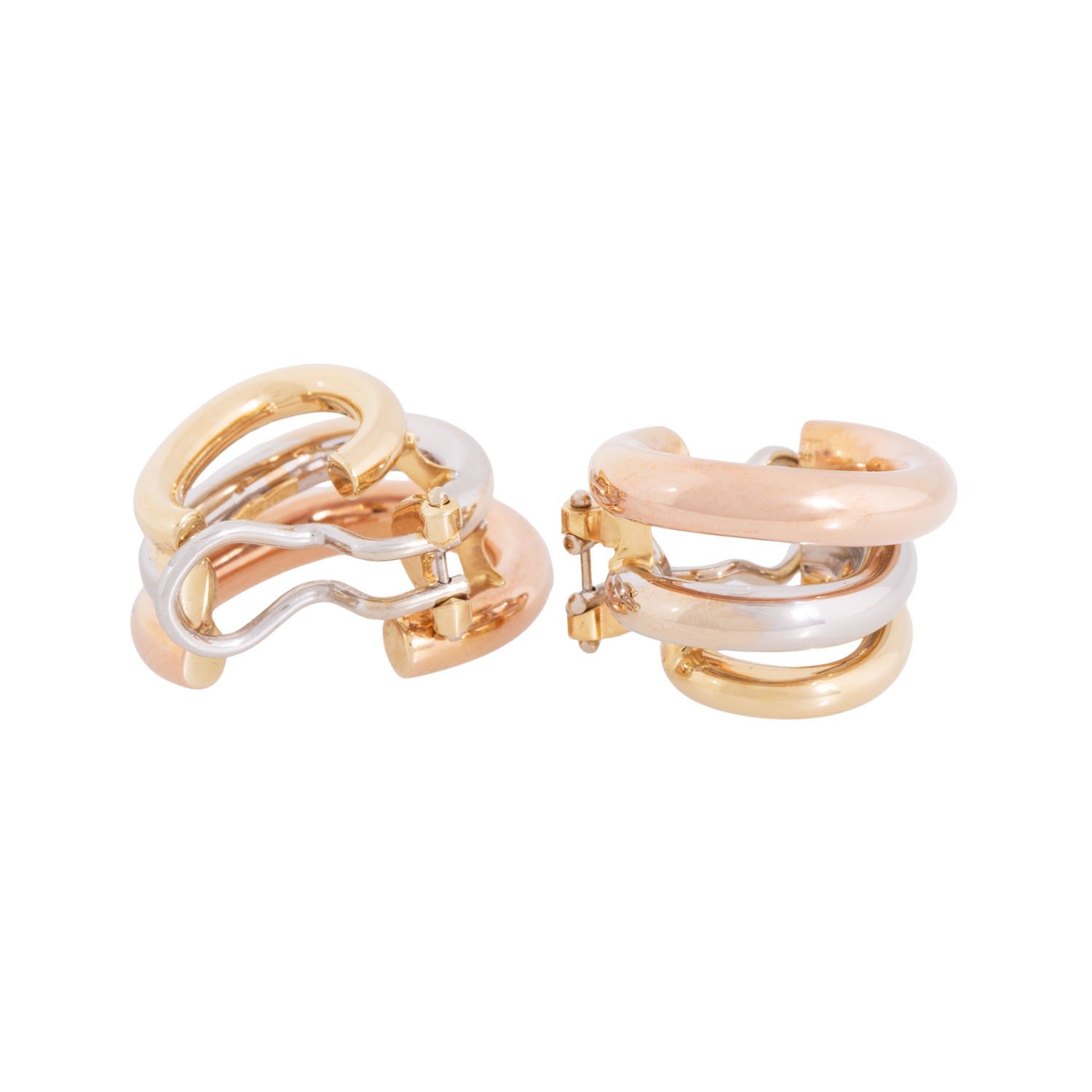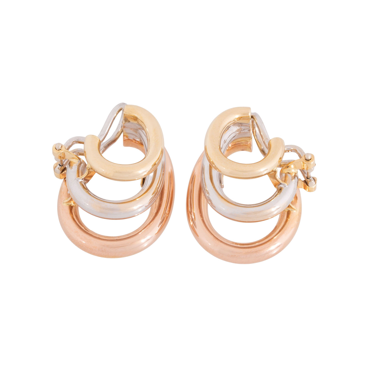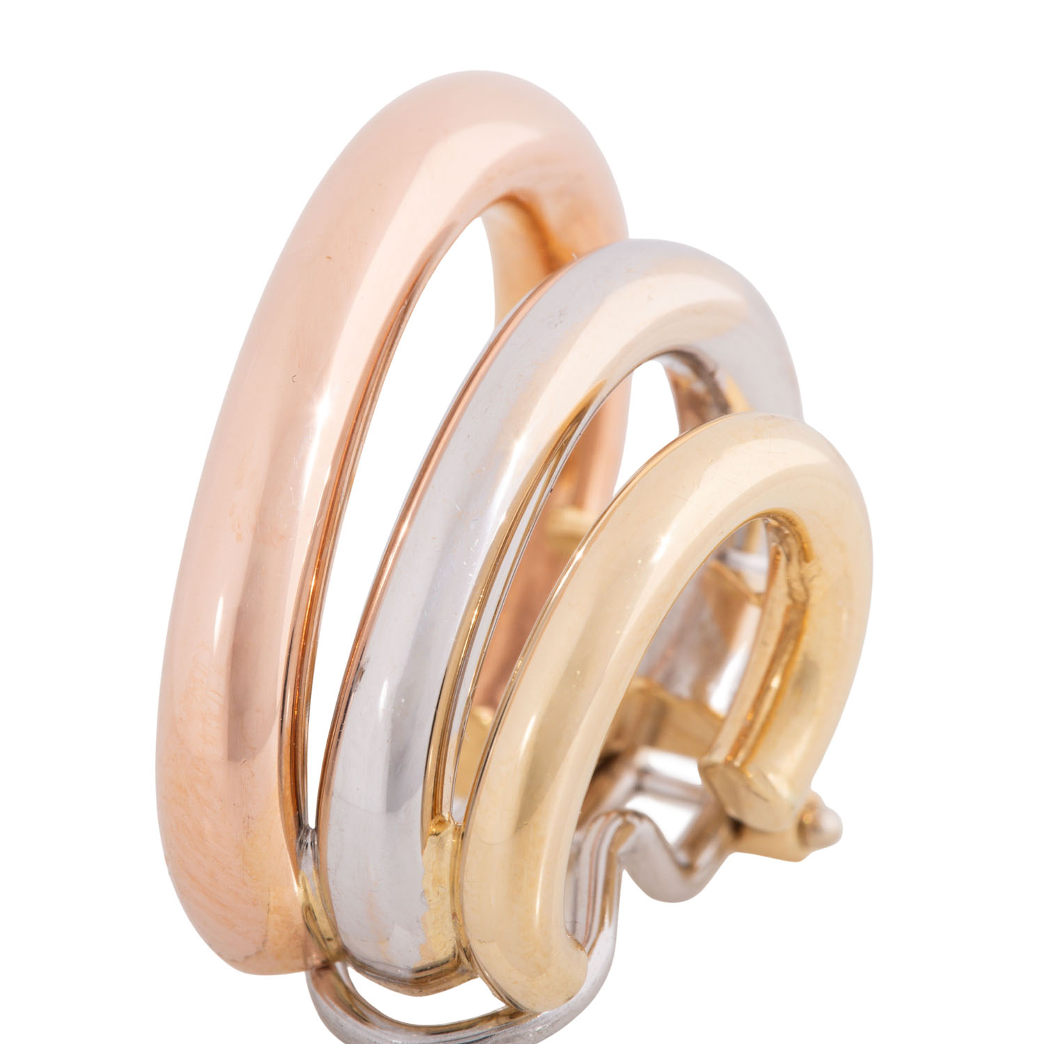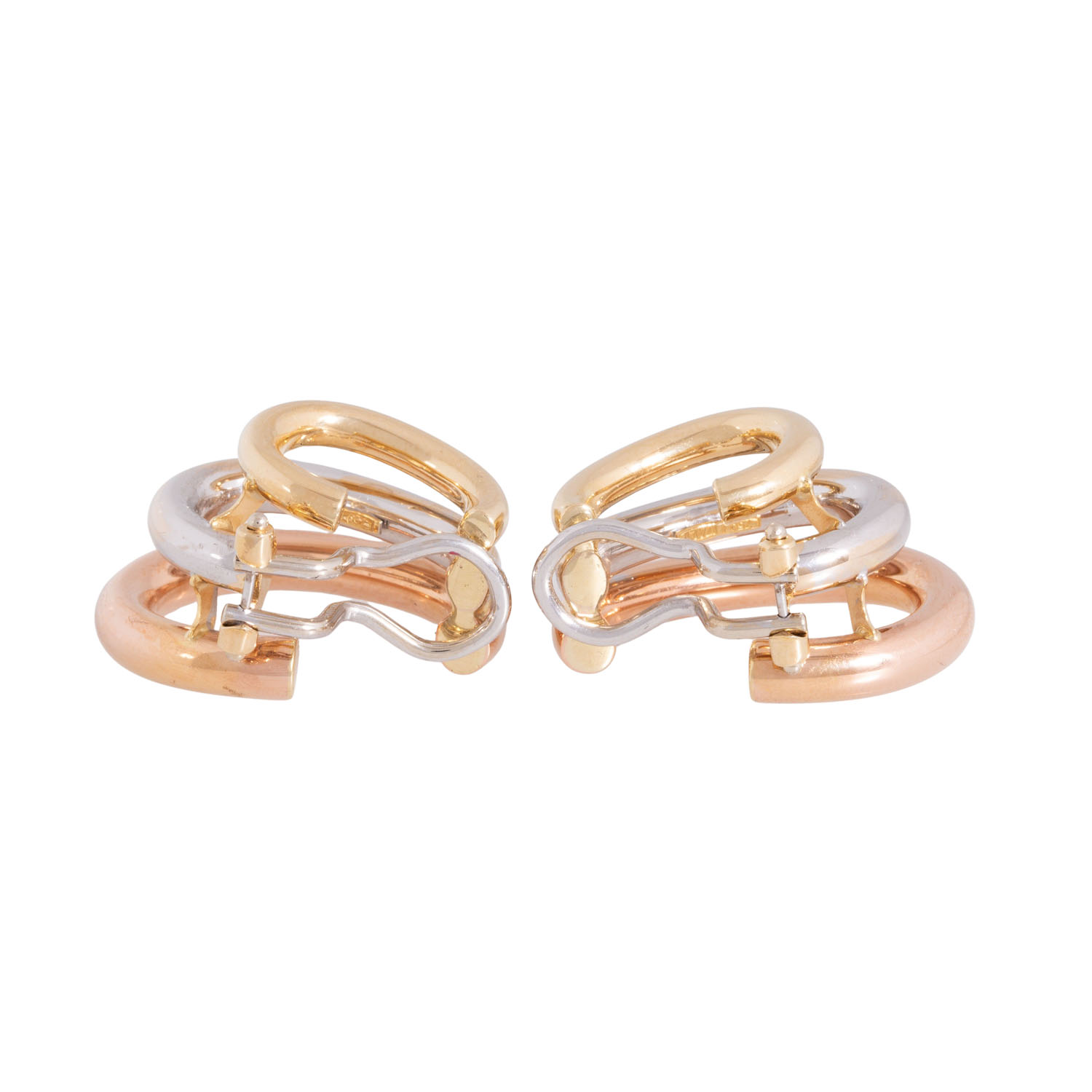 3 farbige Bögen, RG/WG/GG, 18K, 13,1 g, L x B: 28 x 16 mm, 20./21. Jh., minimale Tragespuren.