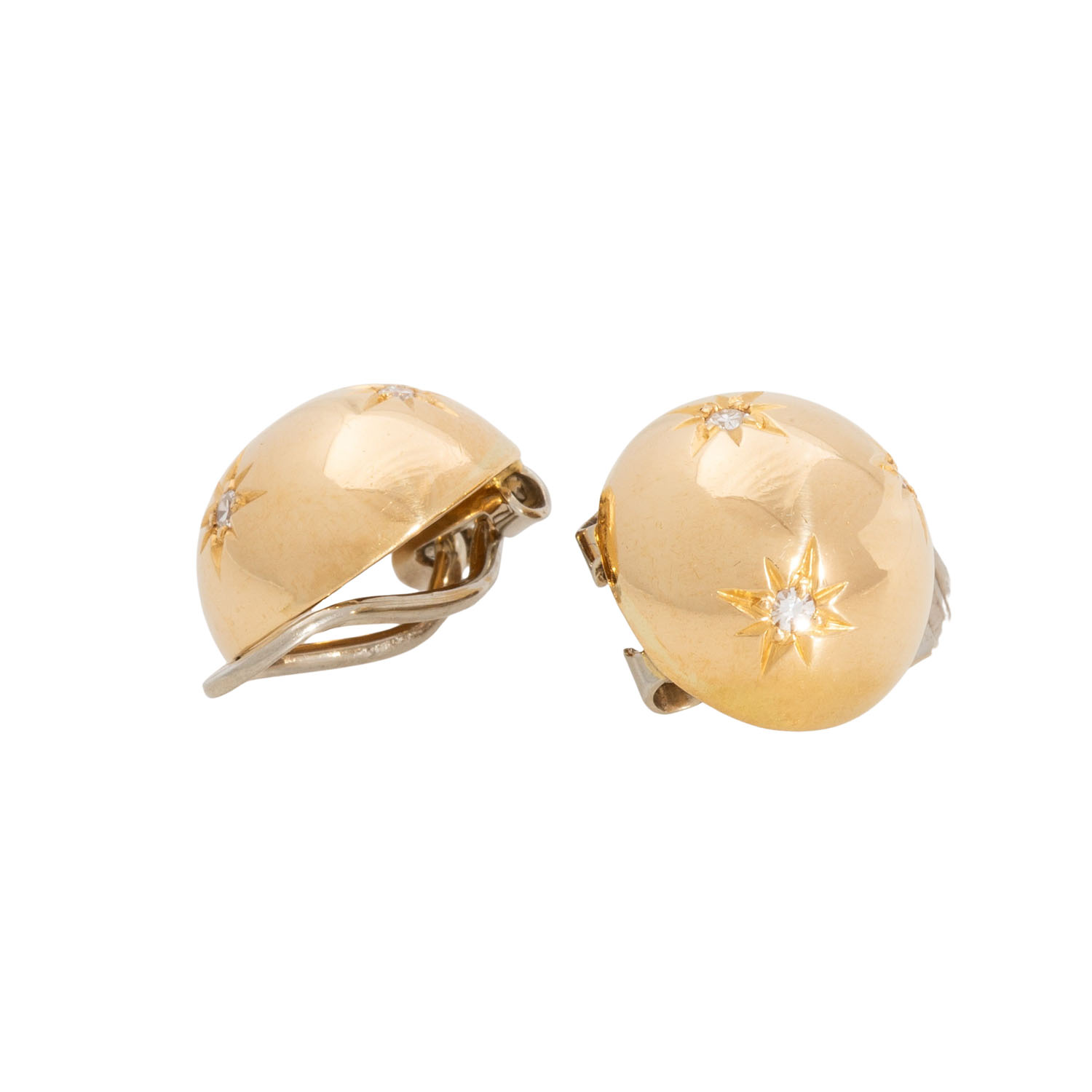 zus. ca. 0,06 ct, WEISS (H)/SI, GG/WG 18K, 6,2 g, D: ca. 13 mm, 20./21. Jh., Tragespuren, mit Herstellerpunze.