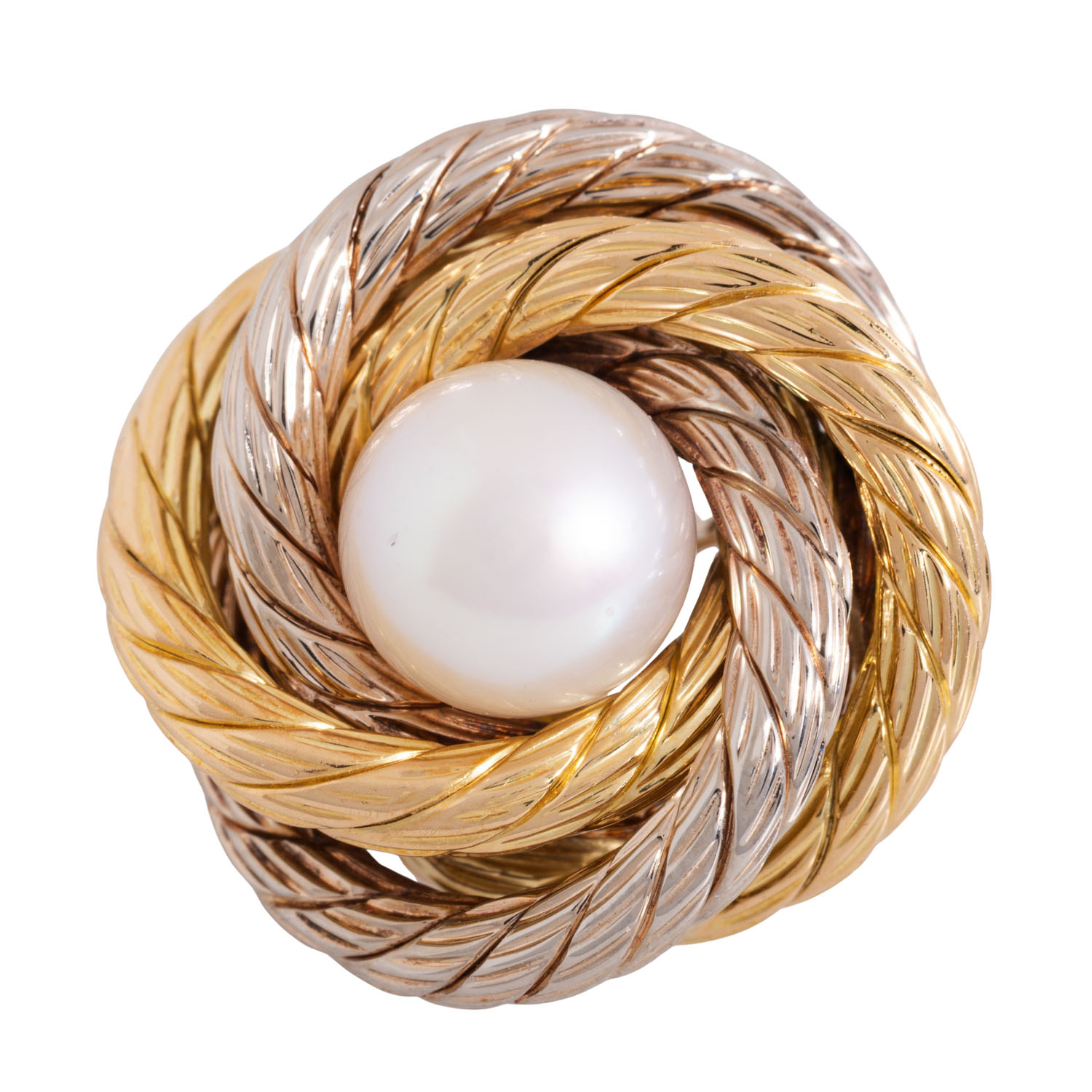 ca. 8 mm Zuchtp., schöner Lüster, GG/WG 18K, 15,6 g, Ende 20. Jh., minimale Tragespuren, mit Ohrstecker.