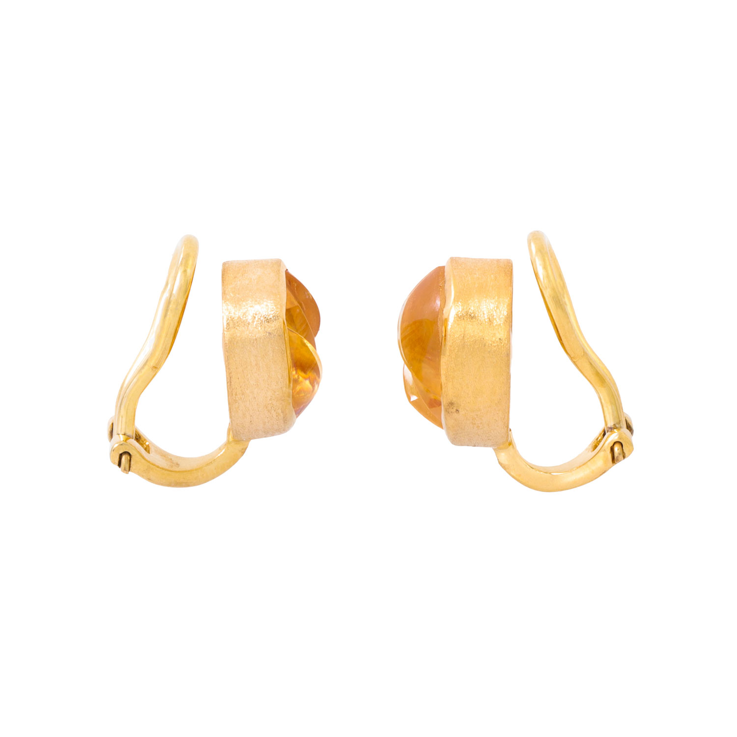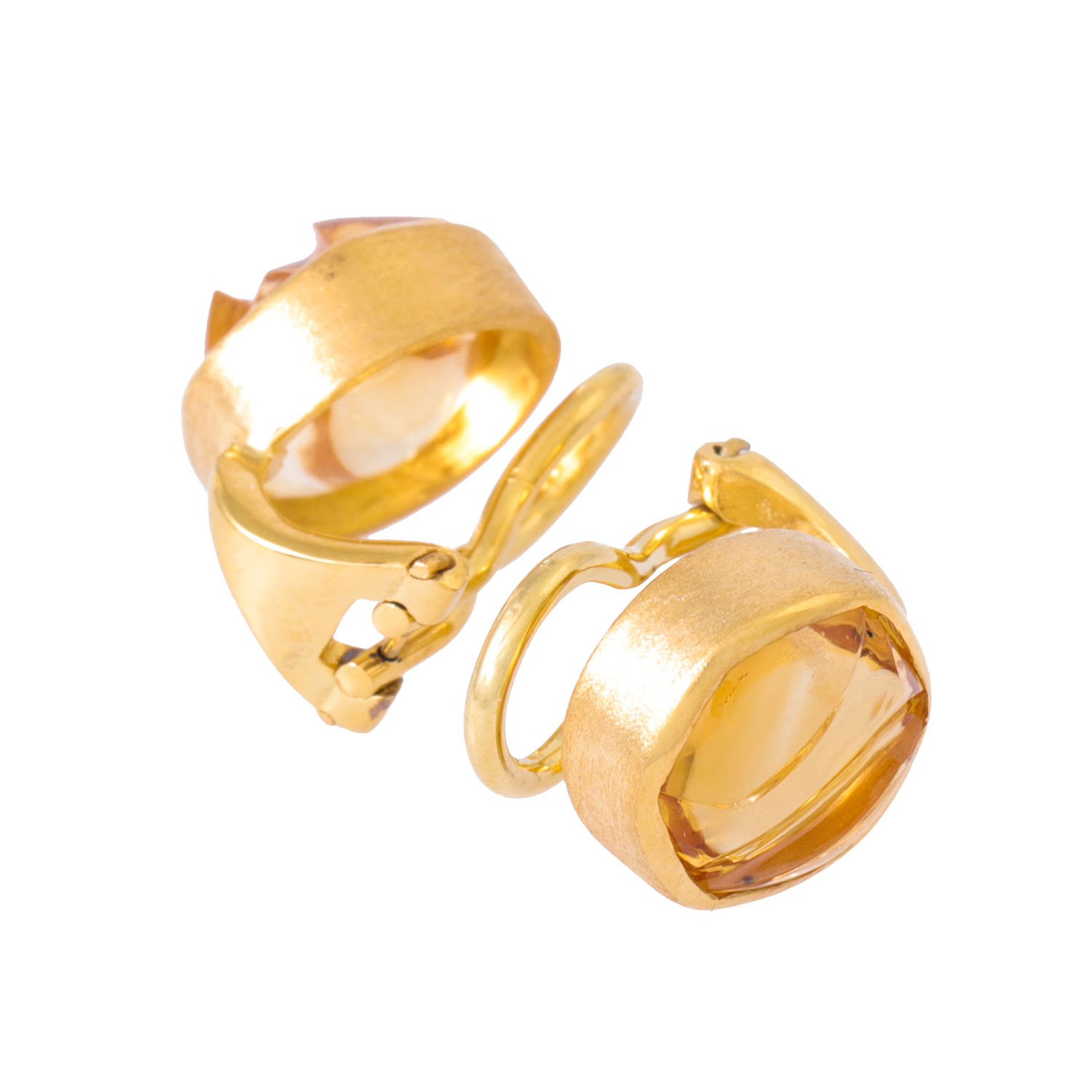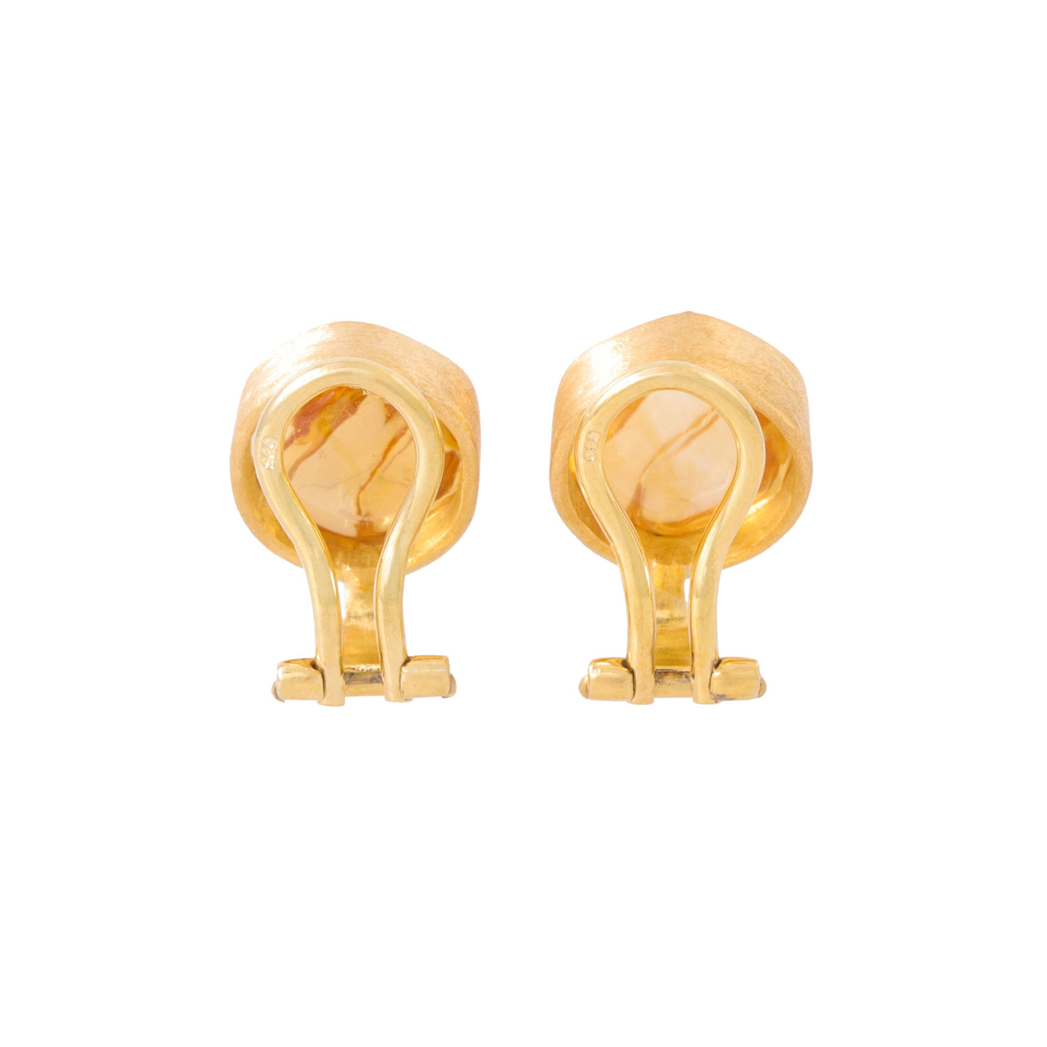 Paar Ohrclips mit gravierten Citrincabochon,