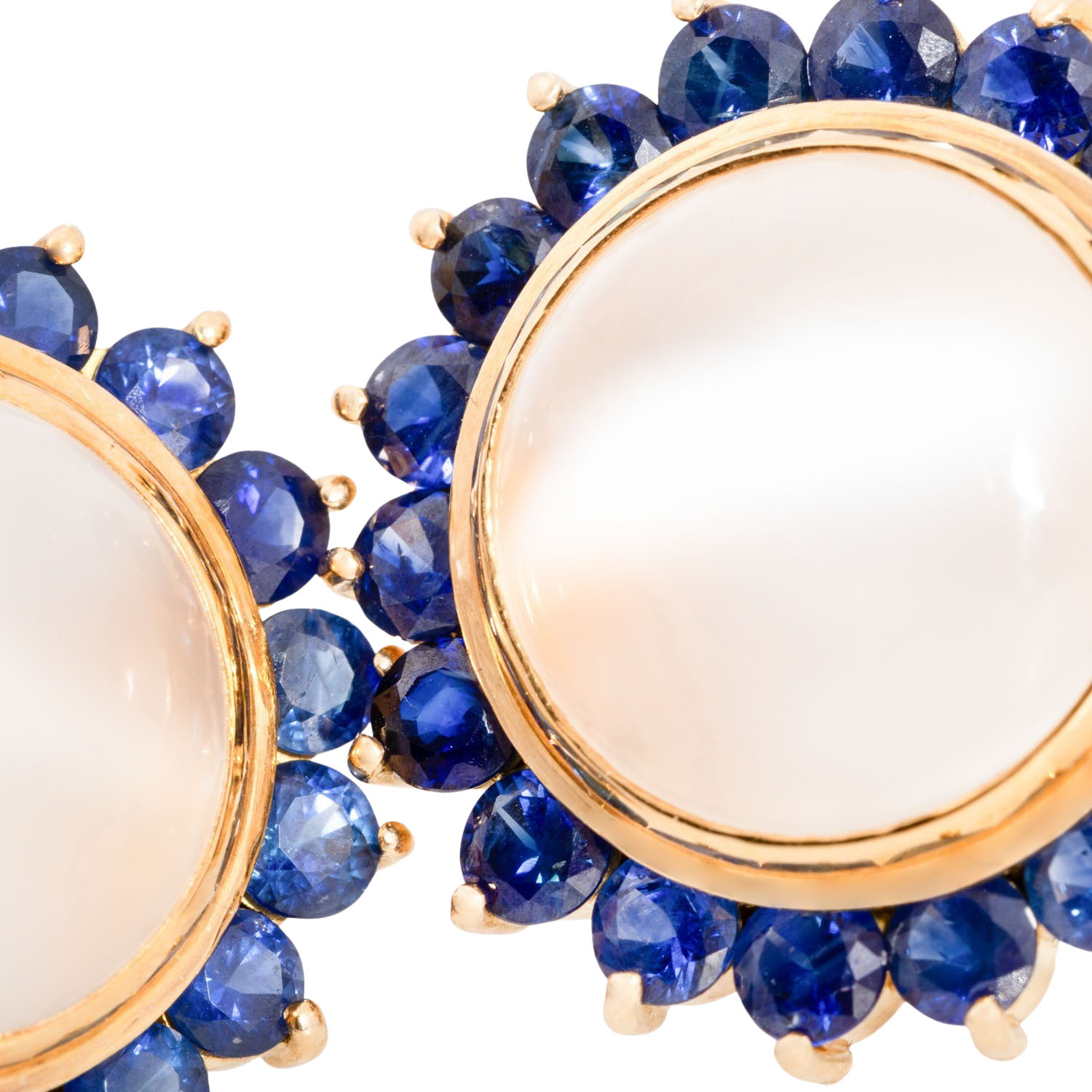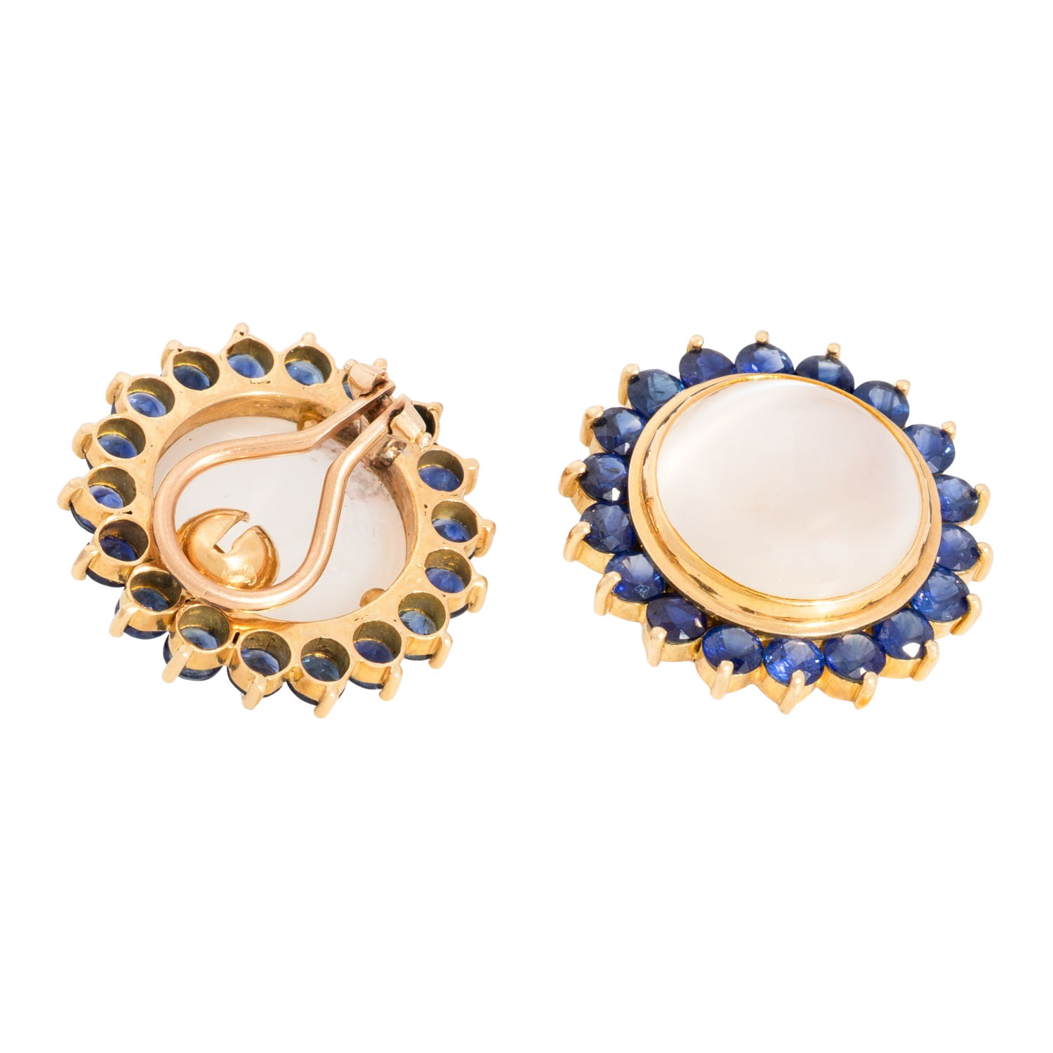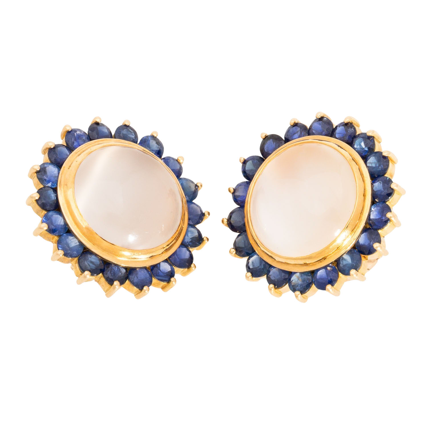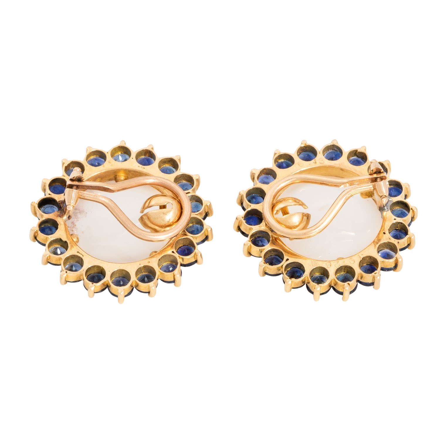 Paar Ohrclips mit Mondsteinen und Saphiren