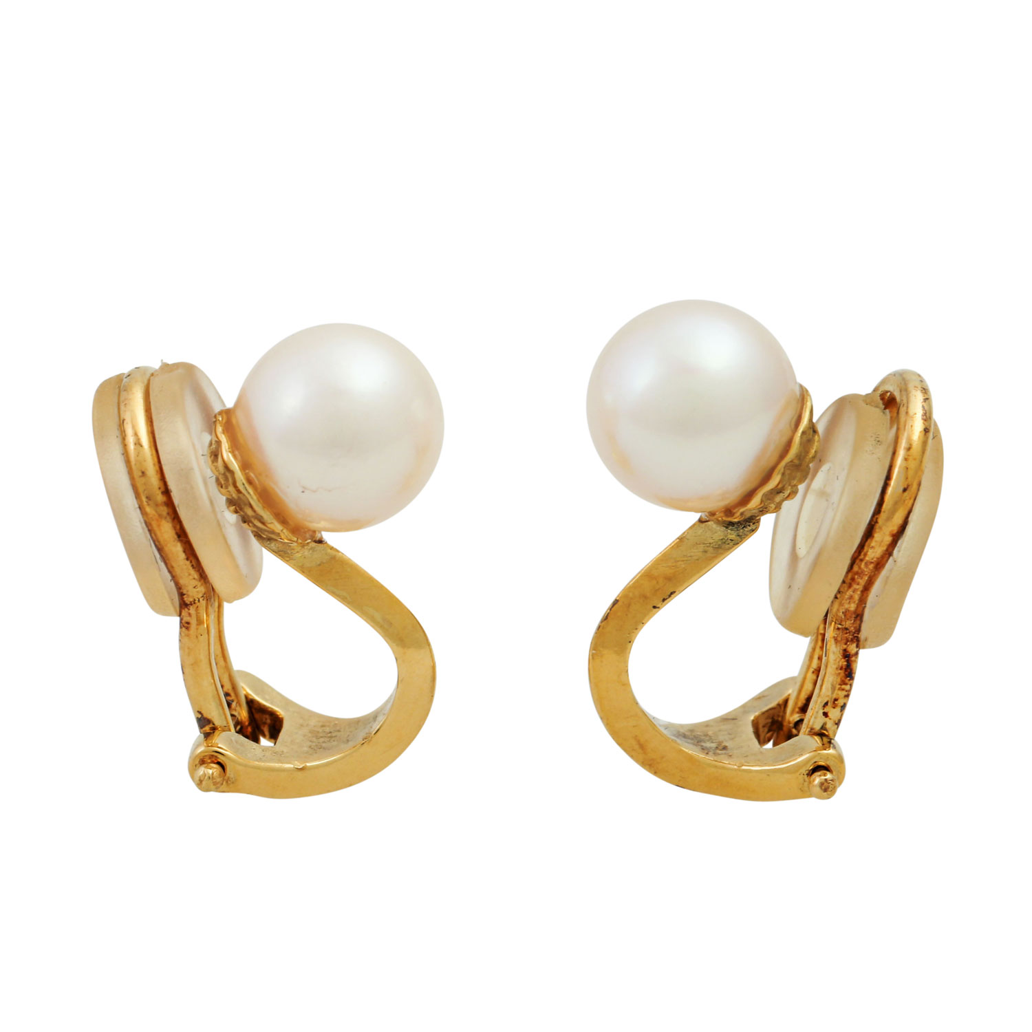 Paar Ohrclipse, bes. mit 2 Zuchtperlen.
