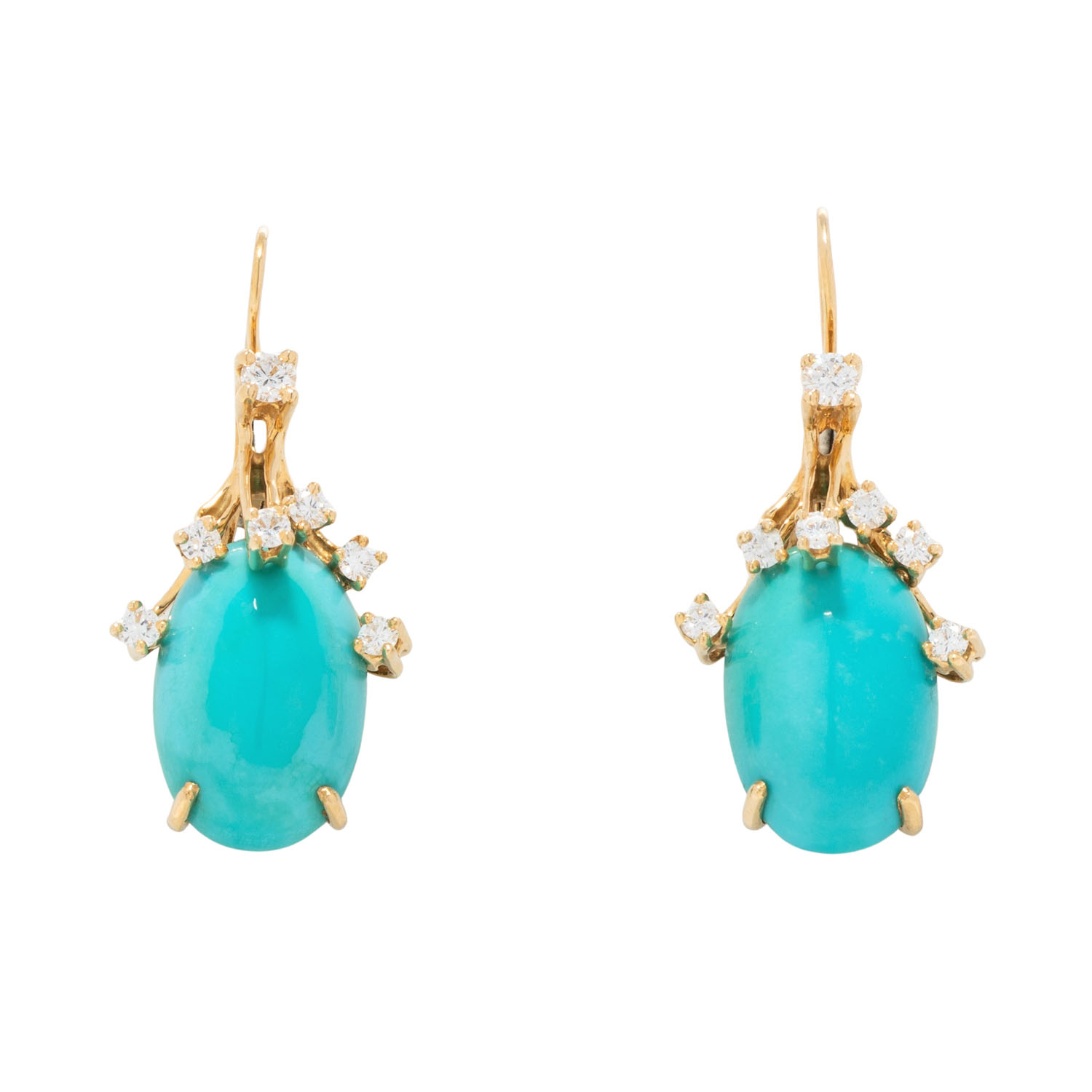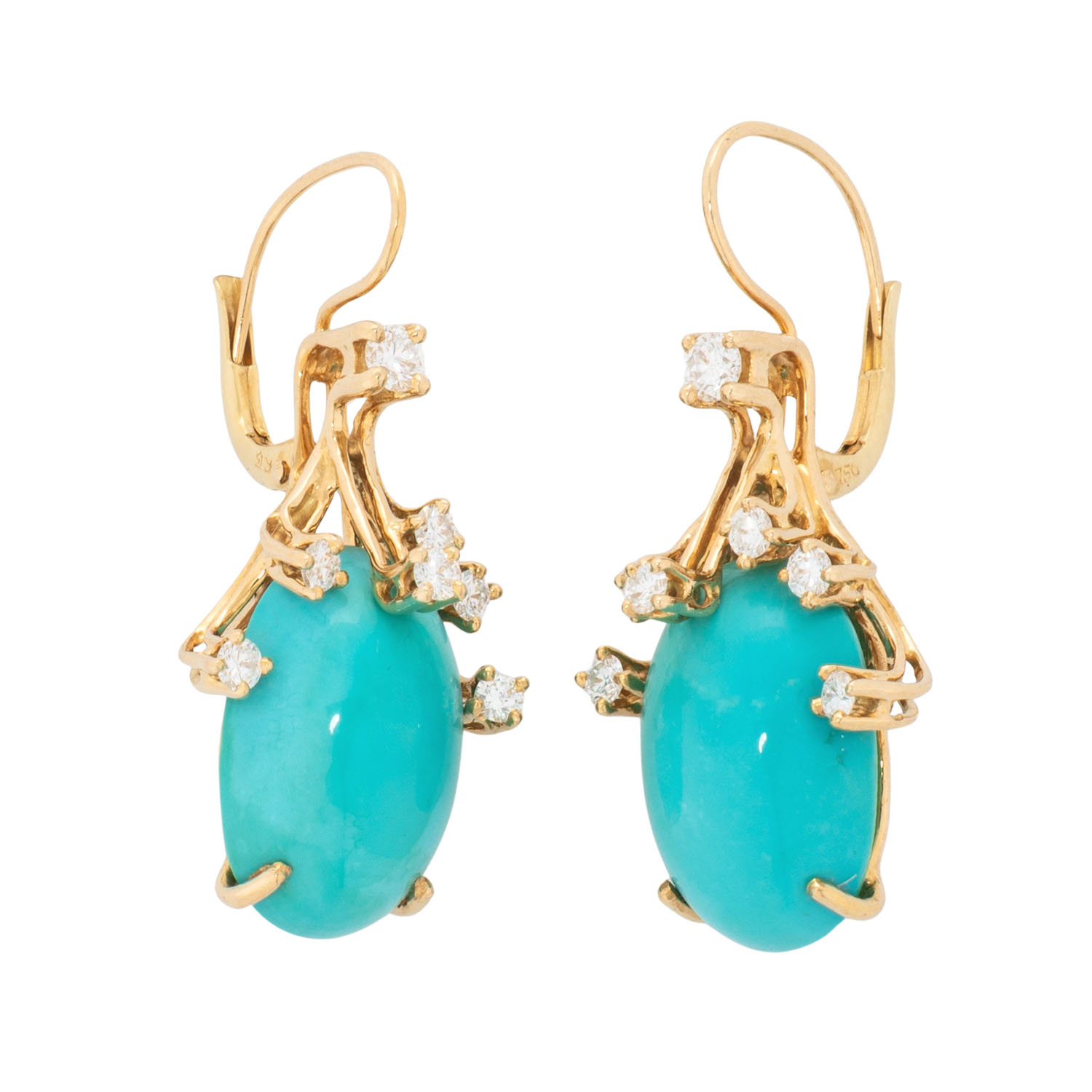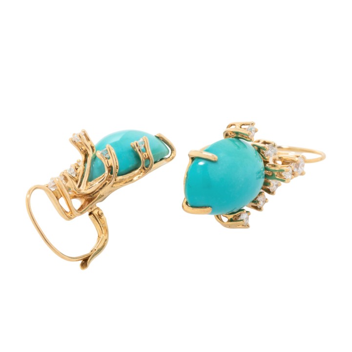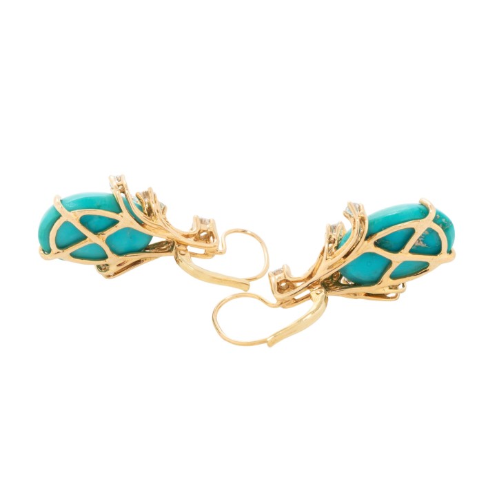 Paar Ohrhänger mit 10 Türkisen und 18 Brillanten,