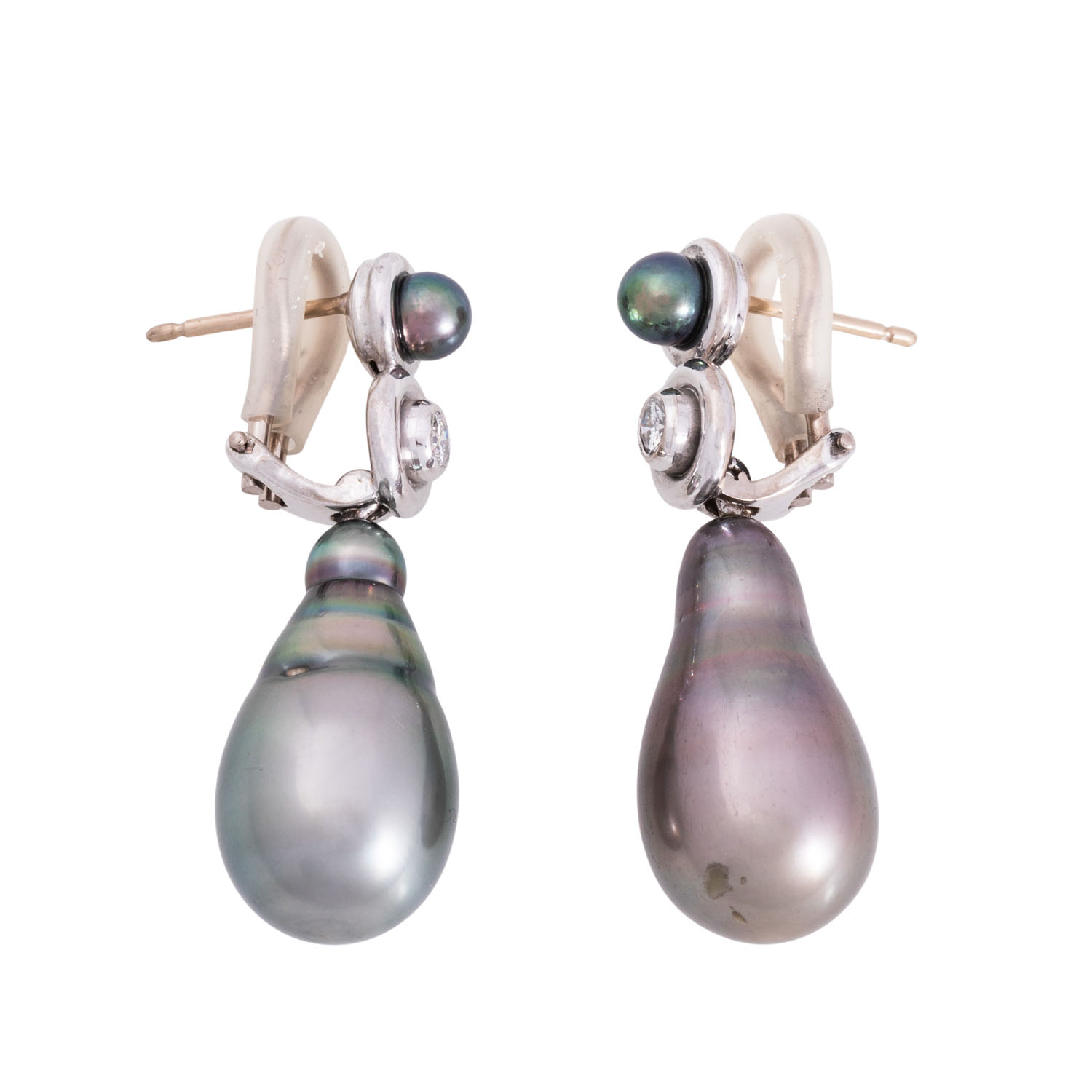 Paar Ohrhänger mit grauen Tahitizuchtperlen,