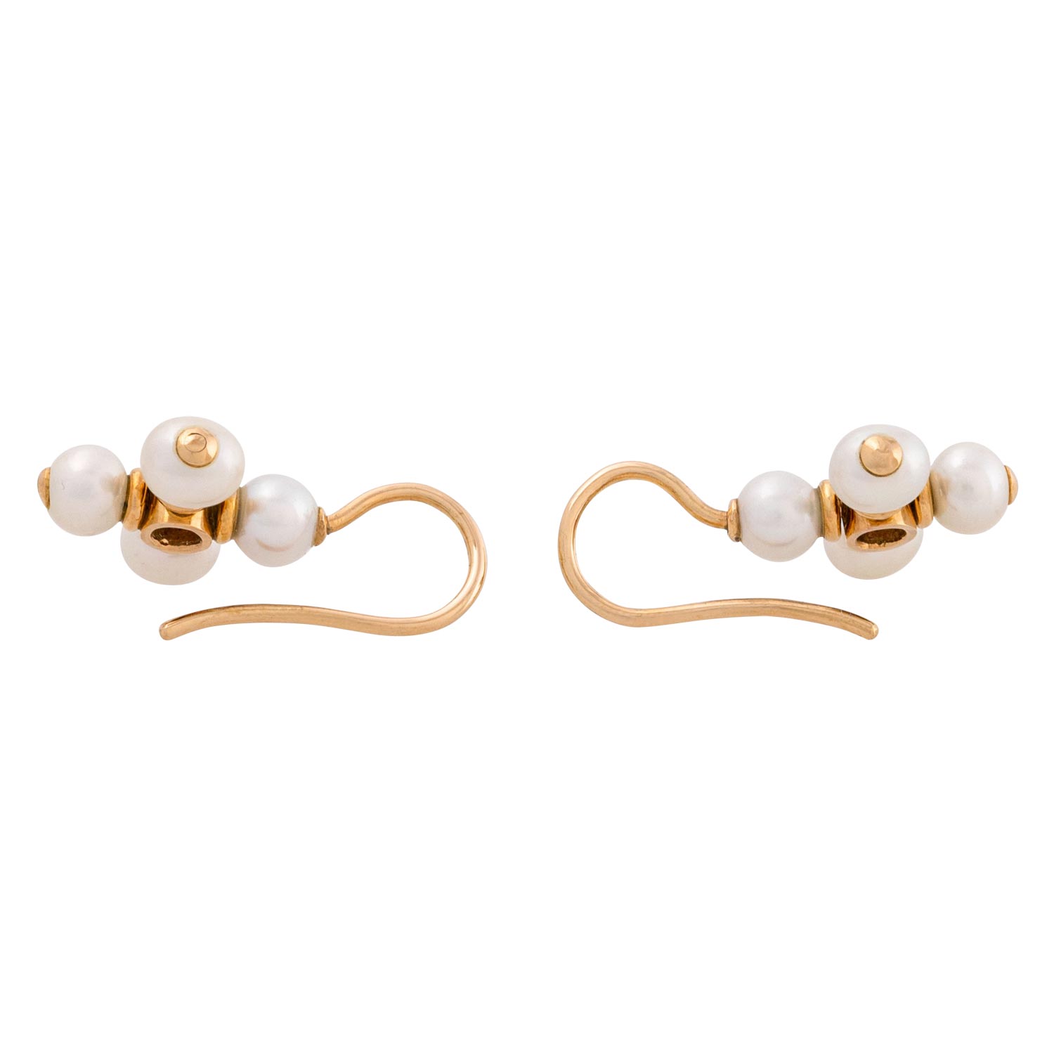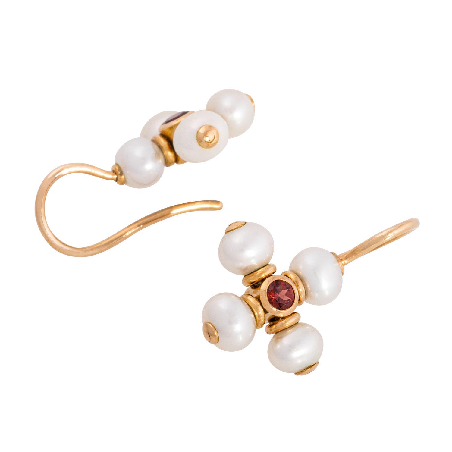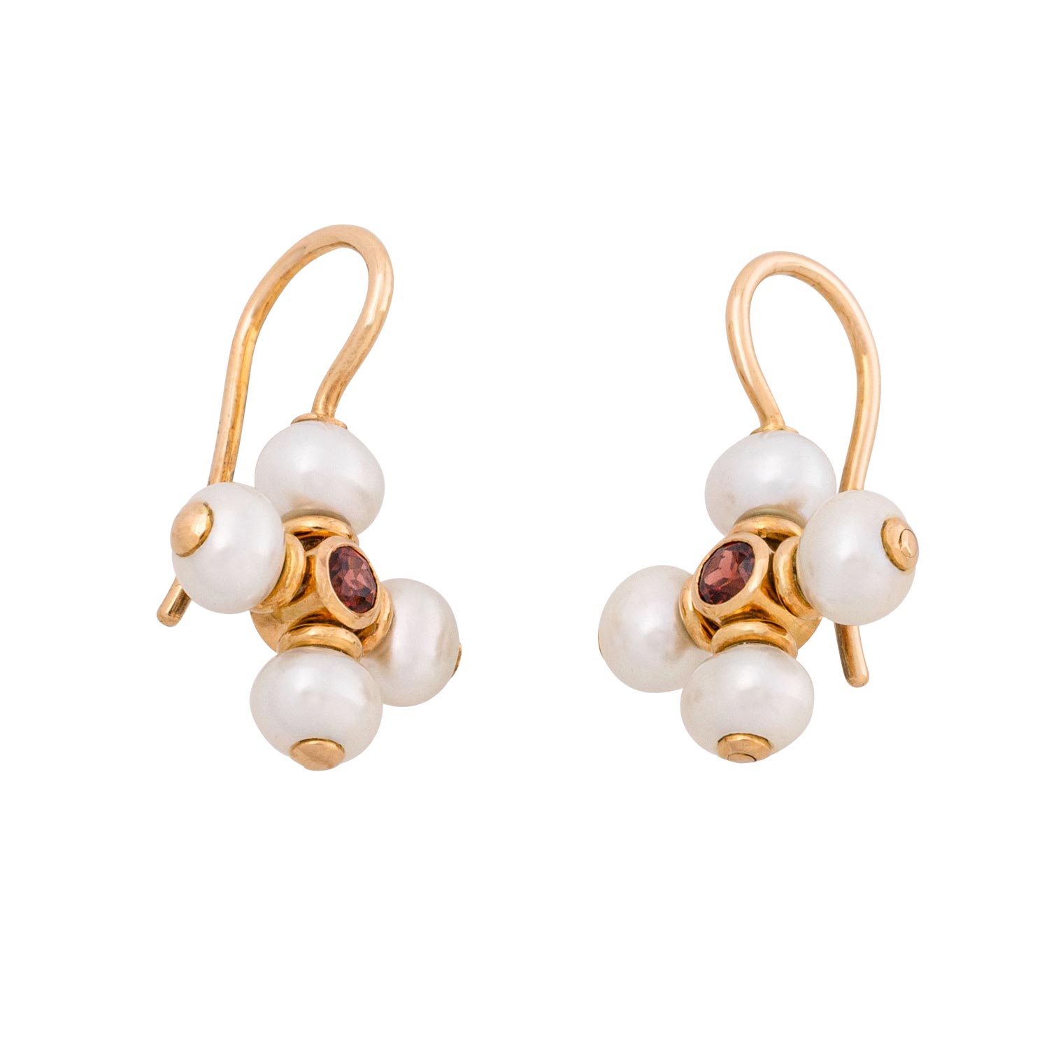 Paar Ohrhänger mit je einem Granat umgeben von 4 Süßwasserperlen,