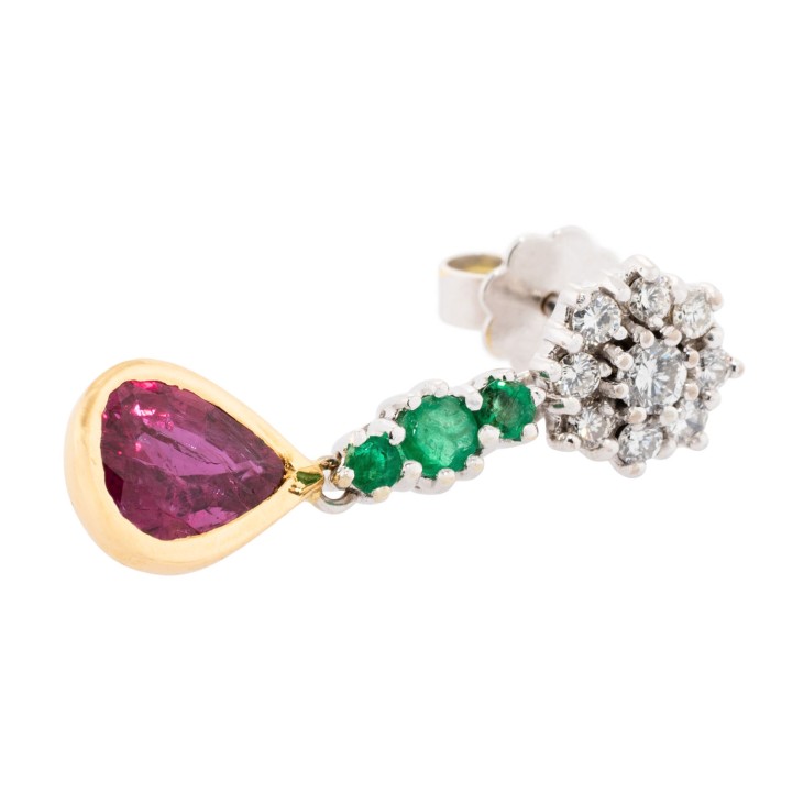 sowie keinen Brillanten zus. ca. 0,5 ct von guter Farbe u. Reinheit, Rubine zus. ca. 3 ct, 18K WG/GG, 6,3 g, L: ca. 2,5 cm, 21. Jh., leichte Tragespuren. (2)