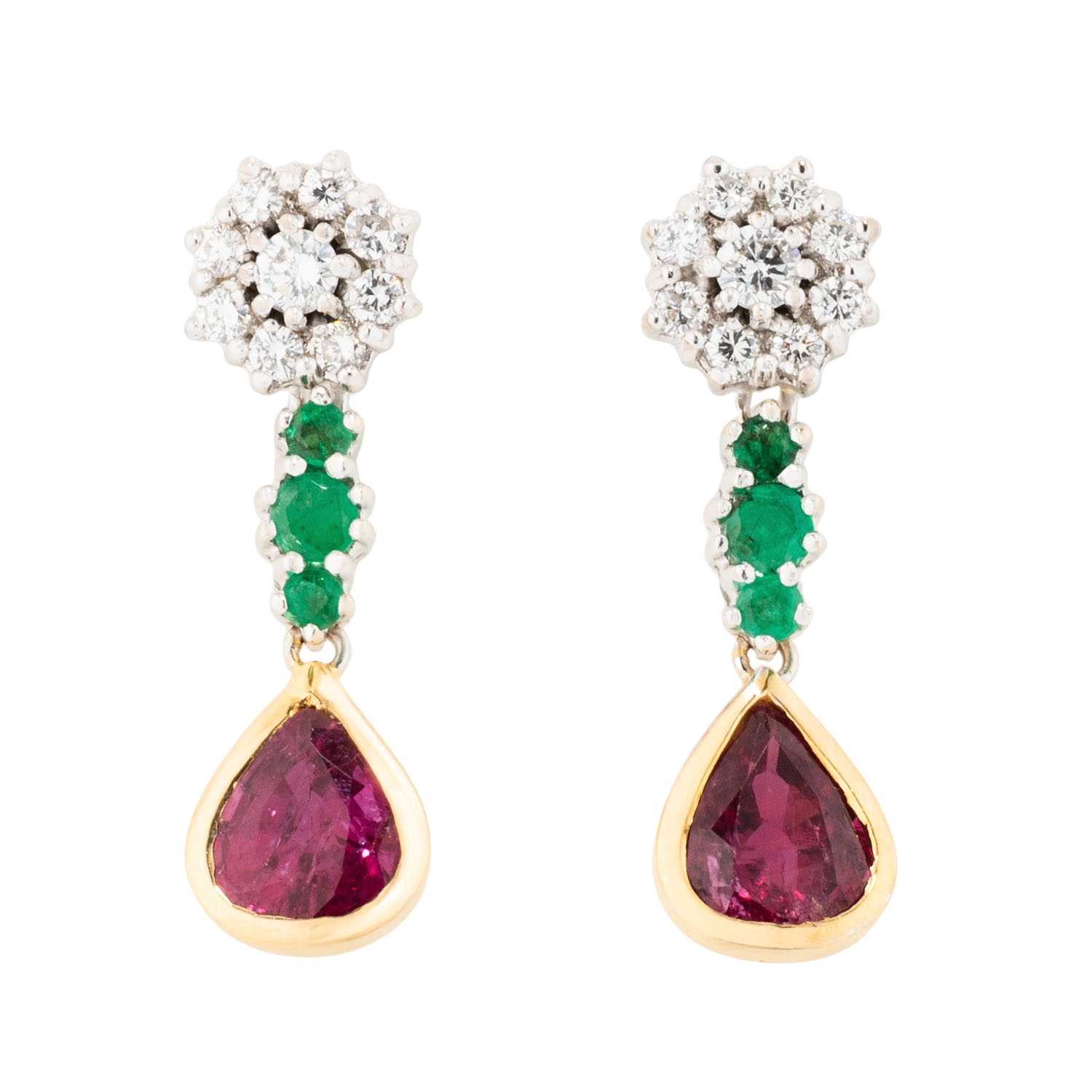 Paar Ohrhänger mit Smaragden und Diamanten,