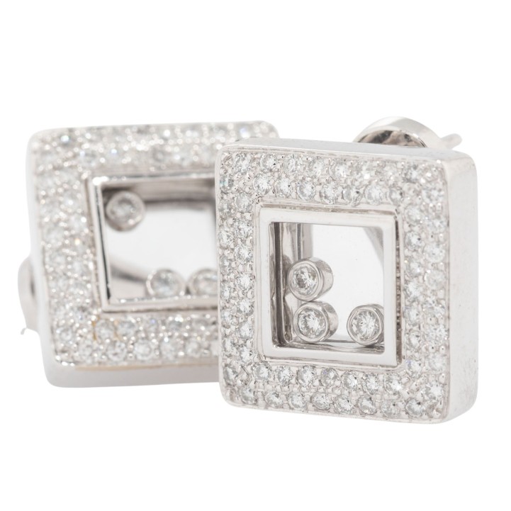 Besatz und 3 bewegliche Brillanten, zus. ca. 1,35 ct, überwiegend gute Farbe und Reinheit, WG 18K, 13,4 g, 20./21. Jh., guter Zustand.