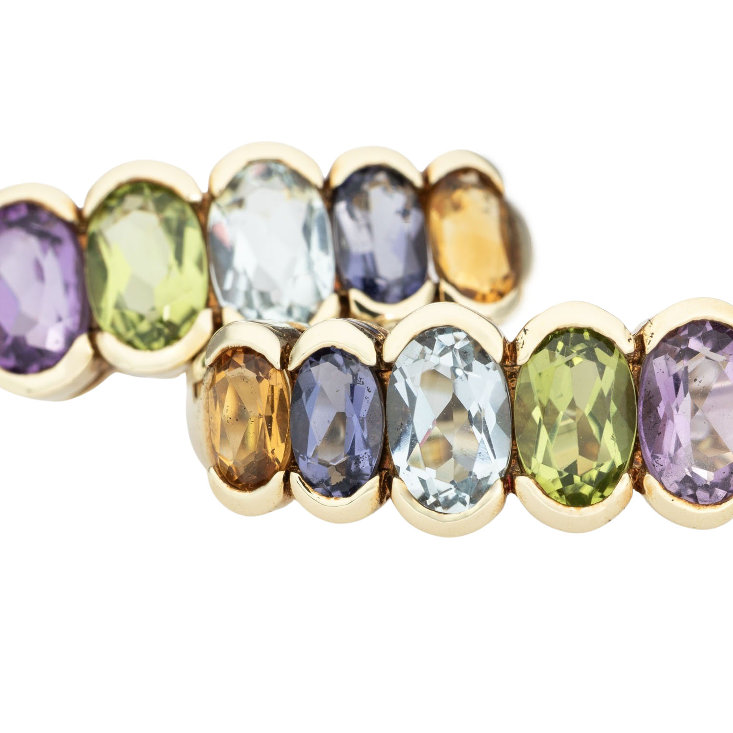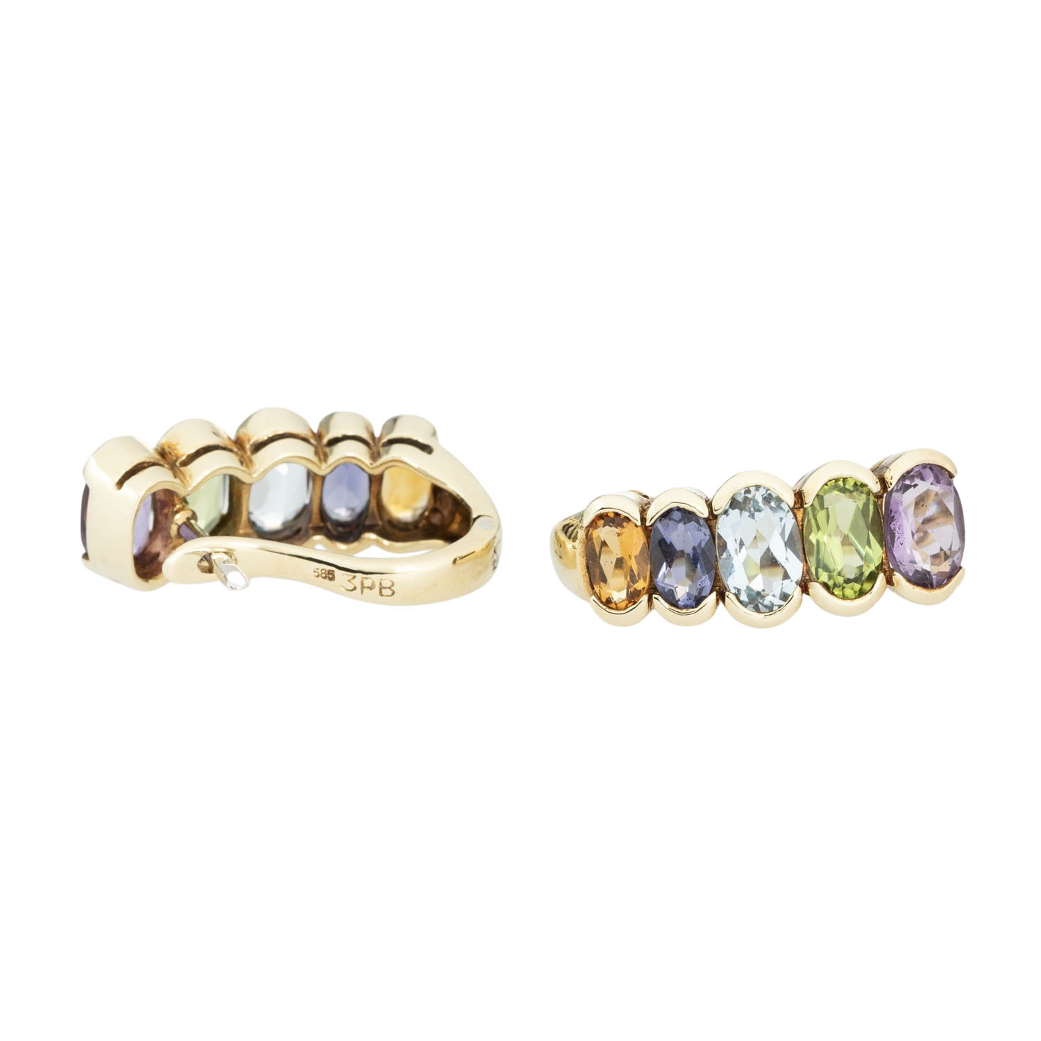 Paar Ohrsteckclips mit Amethyst, Olivin, Aquamarin, Citrin,