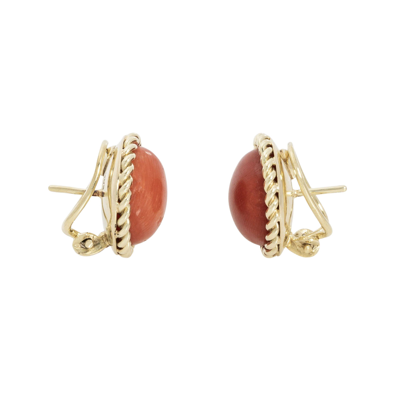 Paar Ohrsteckclips mit 2 ovalen Korallcabochons,