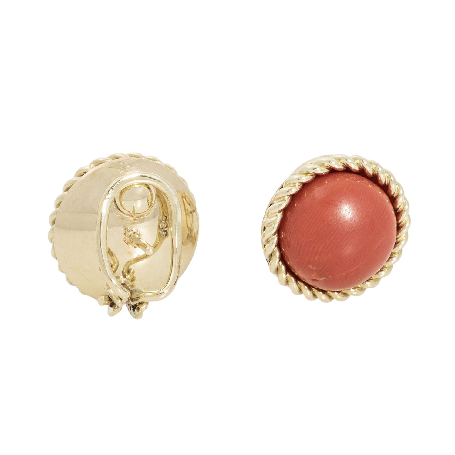 D: 13 mm, GG 14K, 11,2 g, D: 17 mm, Ende 20. Jh., minimale Tragespuren. Hinweis: Corallium-Arten unterliegen dem Artenschutzabkommen gemäß VO (EG) 3407/2009 Anhang III. Kein Versand außerhalb der EU.