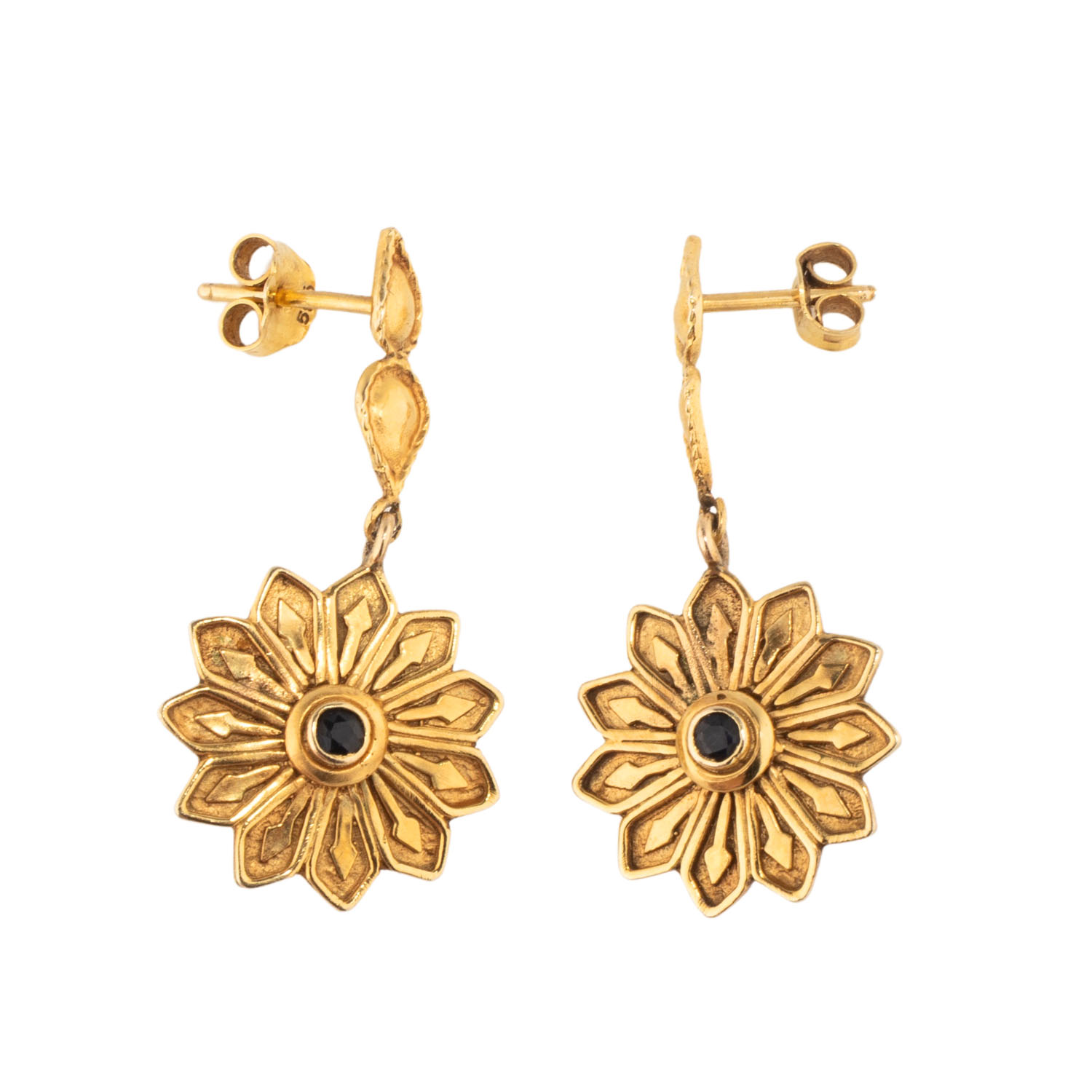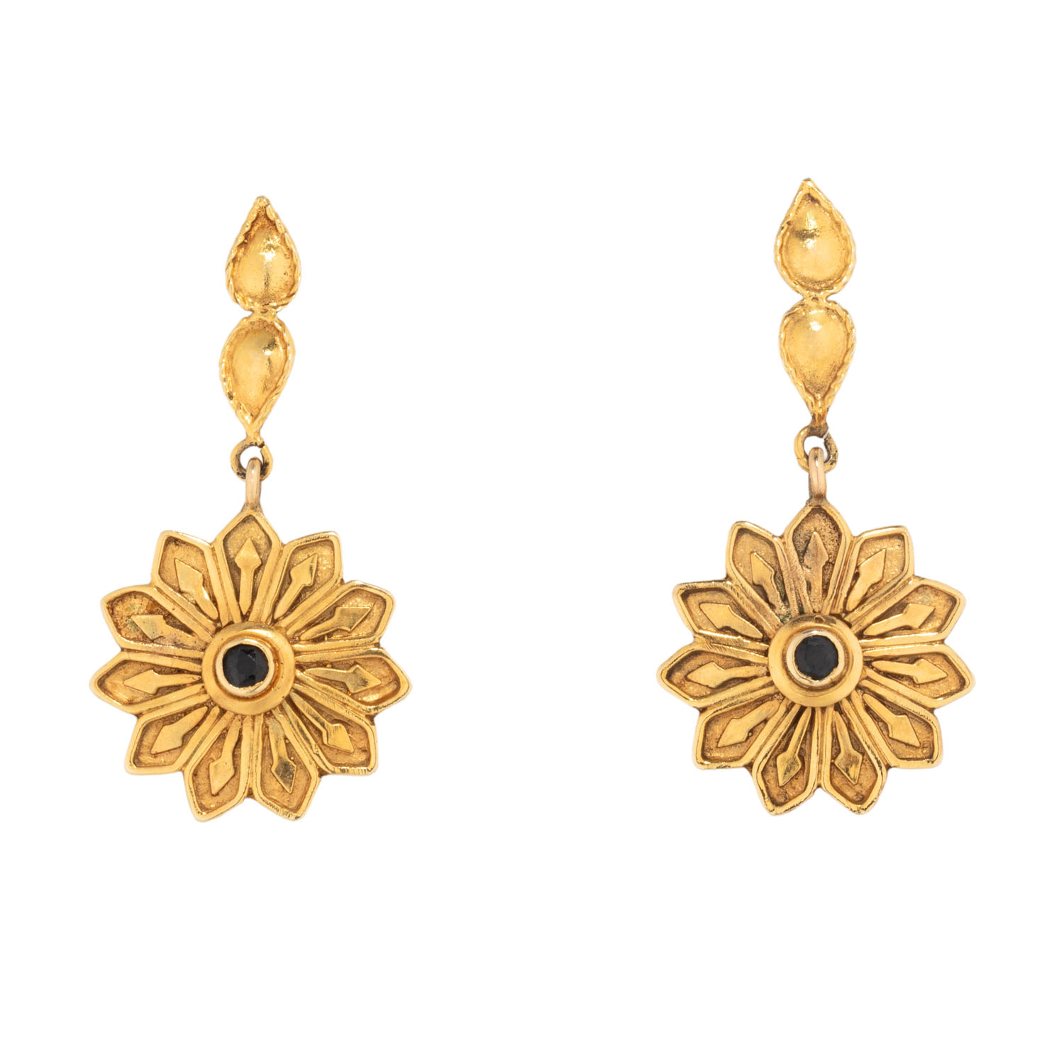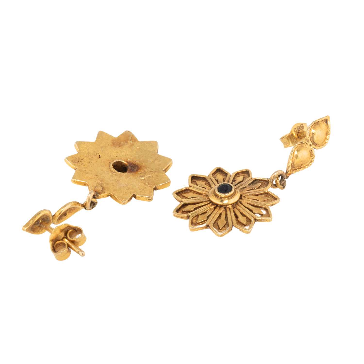 Paar Ohrstecker in Blütenform mit 2 Saphiren,