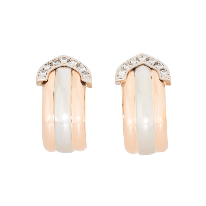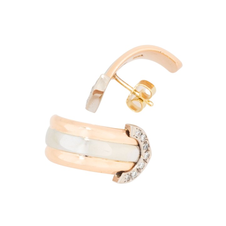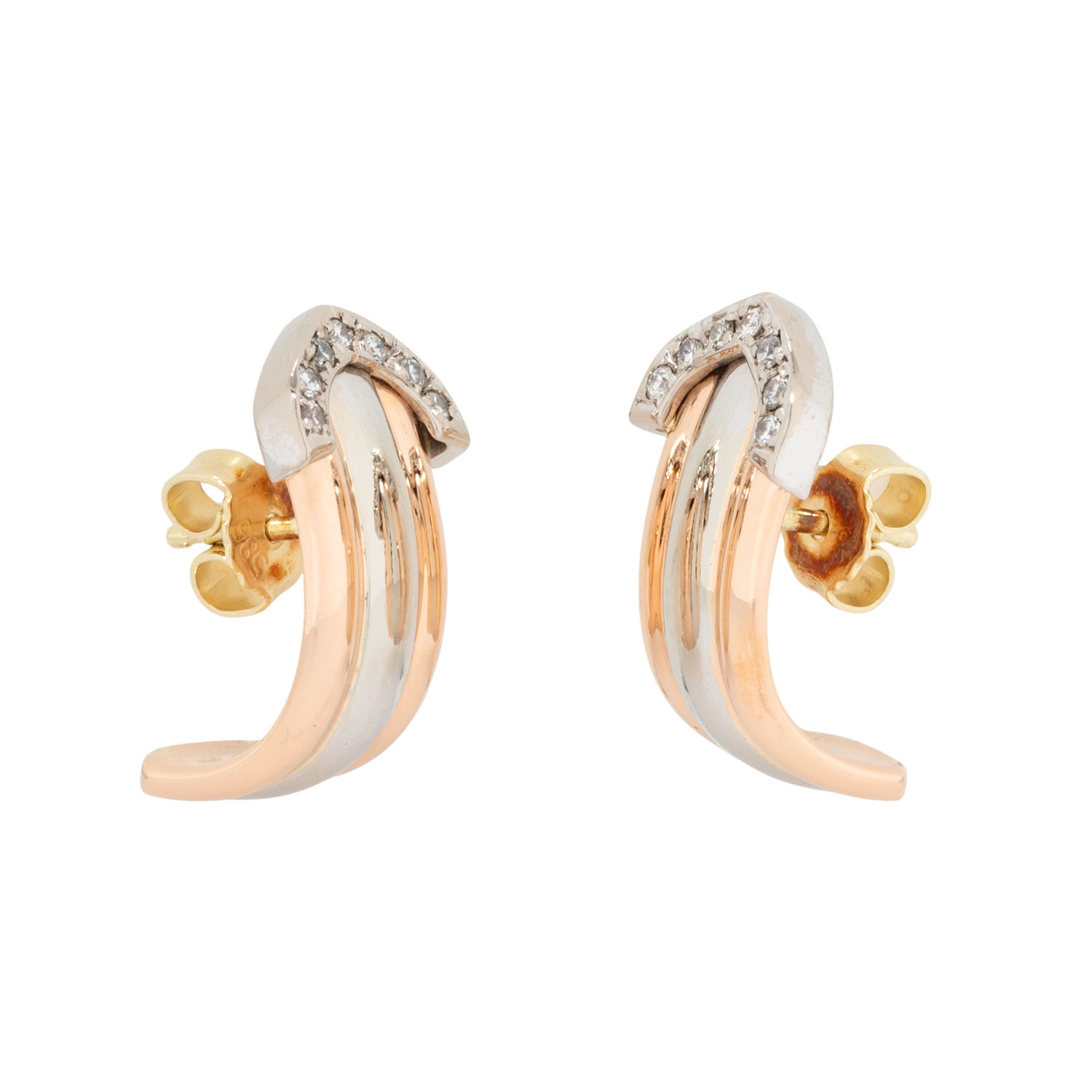 ges. ca. 0,12 ct, gute Farbe und Reinheit, RG/WG 14K, 8,5 g, L x B: 18 x 11 mm, Ende 20. Jh., minimale Tragespuren.