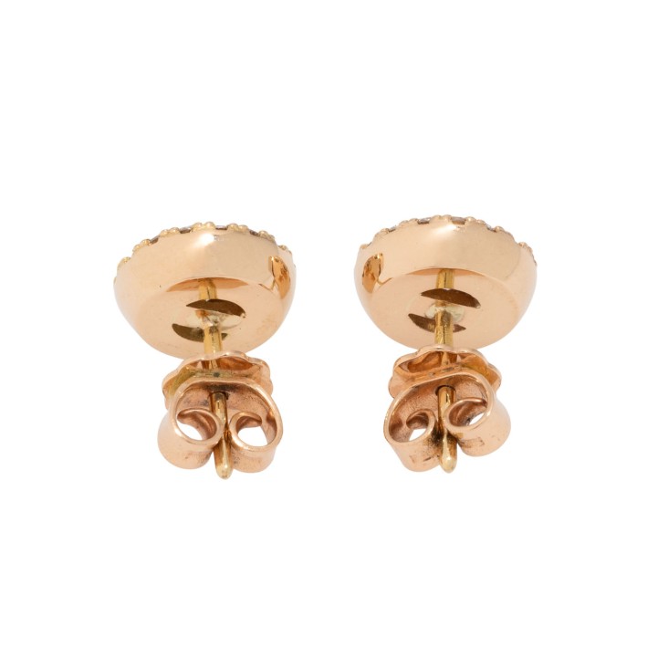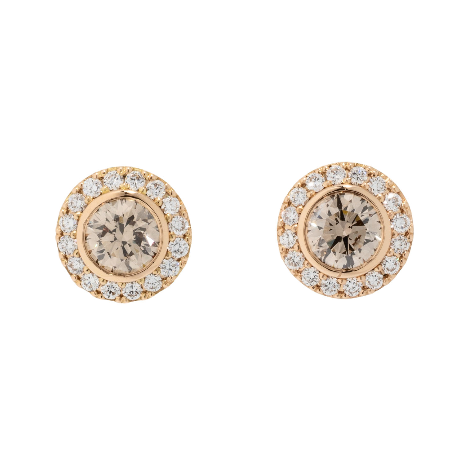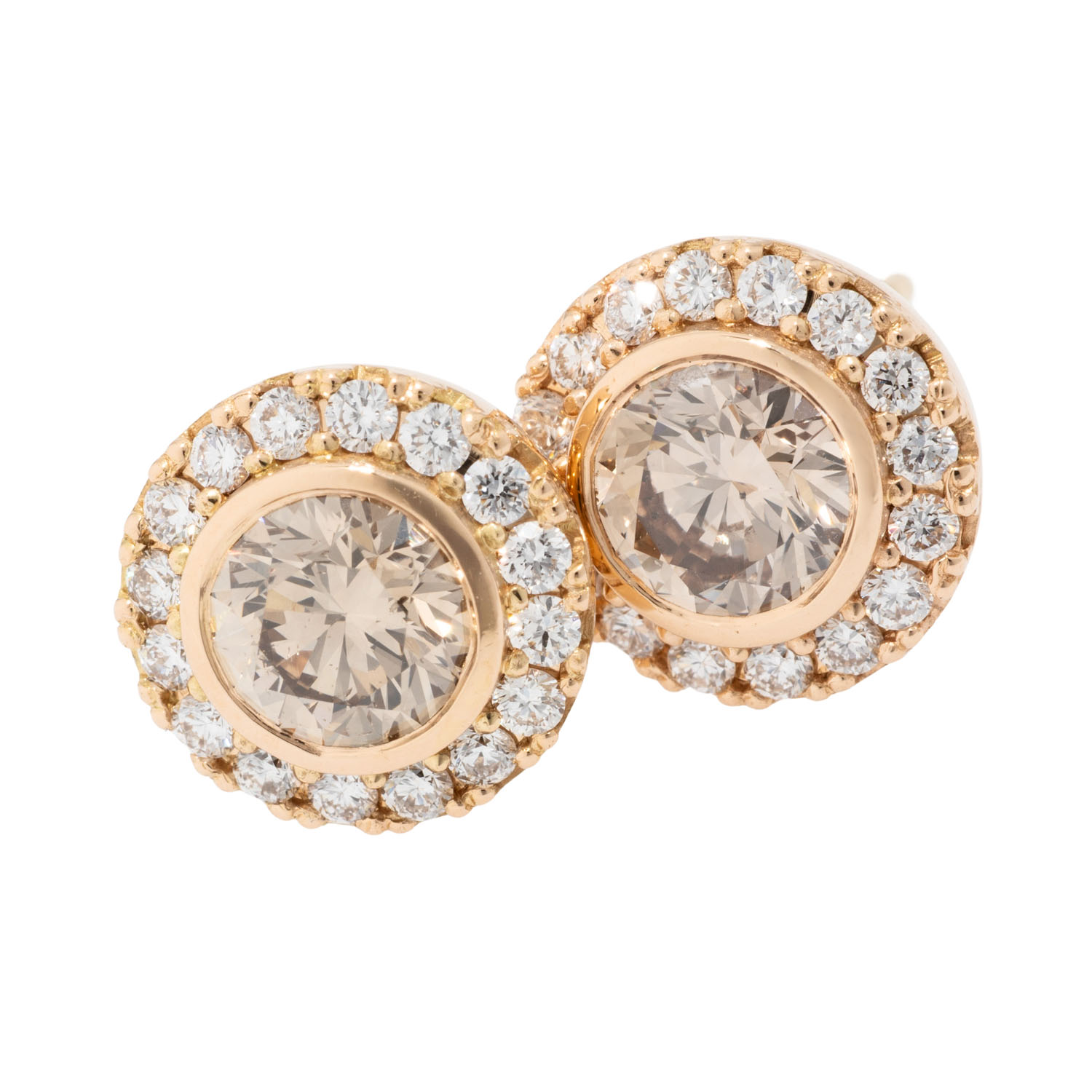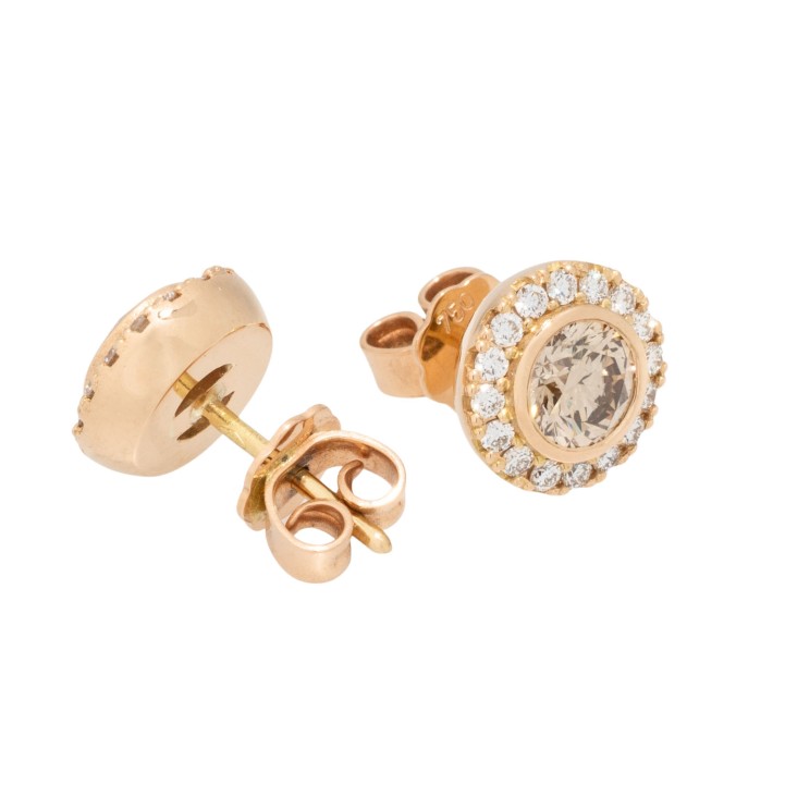 von zus. 1,21ct, LIGHT BROW, umgeben von 32 Brillanten von zus. 0,37 ct, FW (G)/SI, GG 18K, 6 g, D: 9,5 mm, 21. Jh., neuwertig. Juwelierqualität.