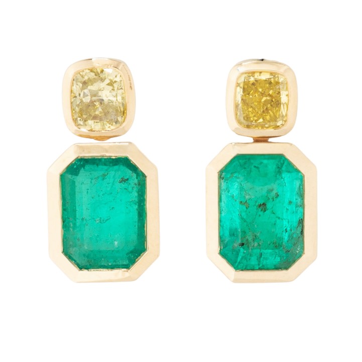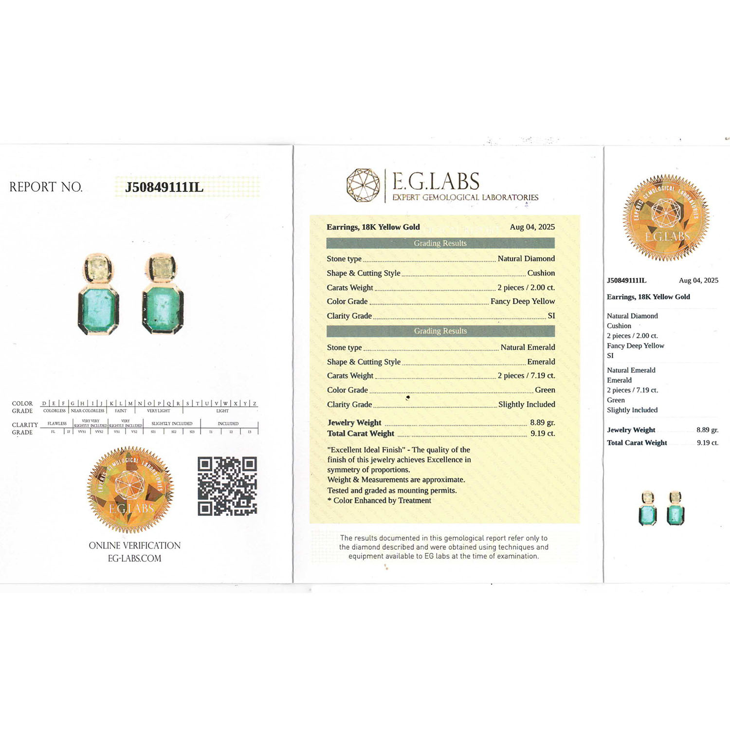 von zus. 7,19 ct und 2 Diamanten im Kissenschliff von zus. ca. 2,0 ct, FANCY DEEP YELLOW/SI, GG 18K, 8,9 g, L x B 20 x 9,5 mm, 21. Jh., neuwertig, Juwelierqualität. E.G. LABS J50849111IL anbei.