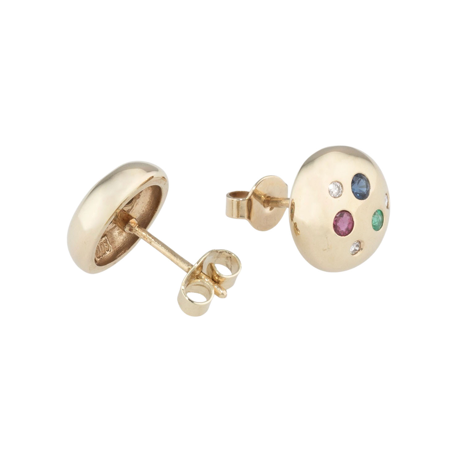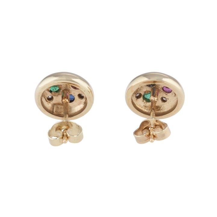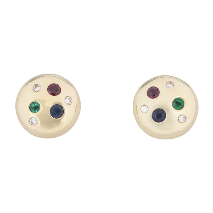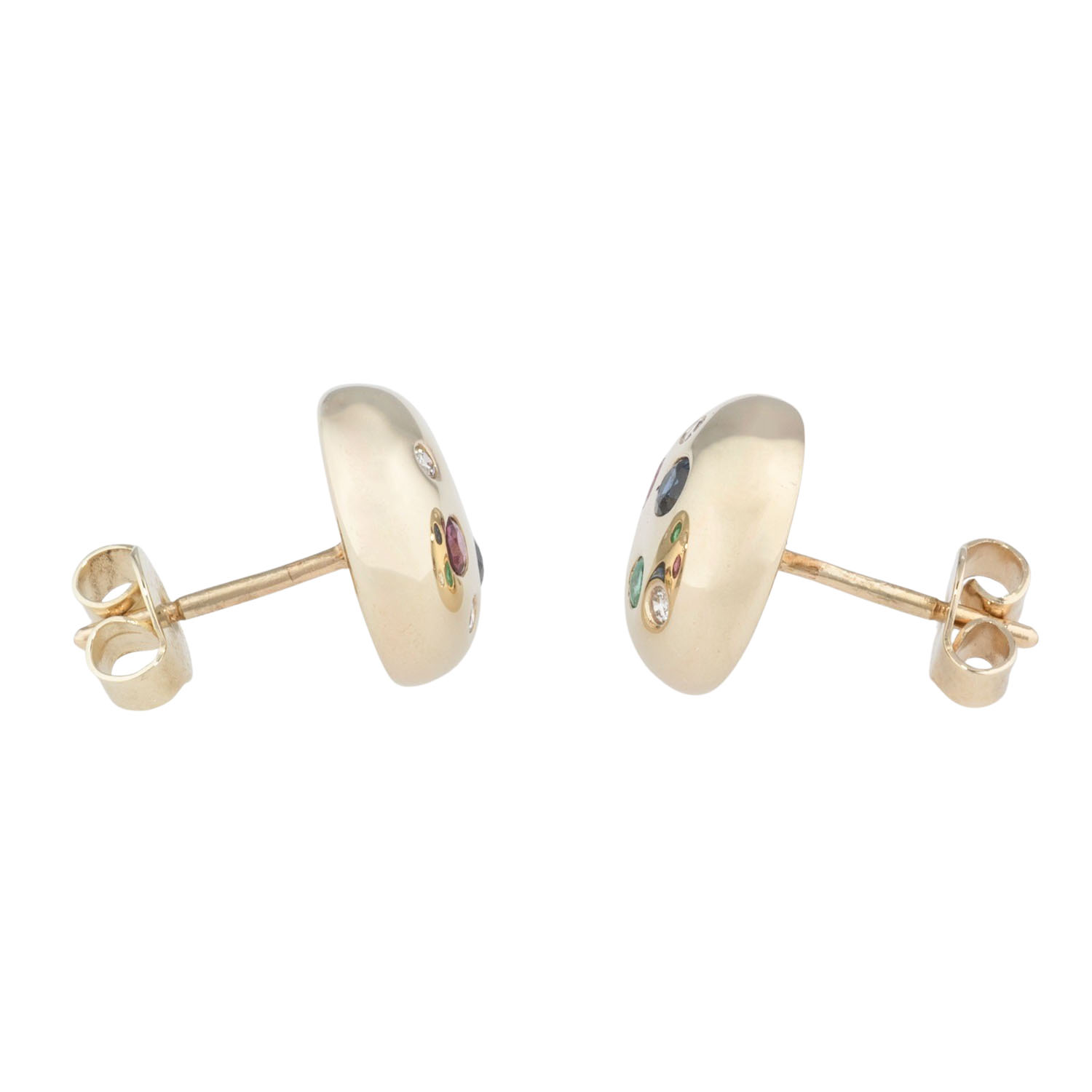 Saphir und 6 Brillanten, zus. ca. 0,06 ct, gest., gute Farbe und Reinheit, GG 14K, 4 g, D: ca. 11 mm, Ende 20. Jh., leichte Tragespuren.