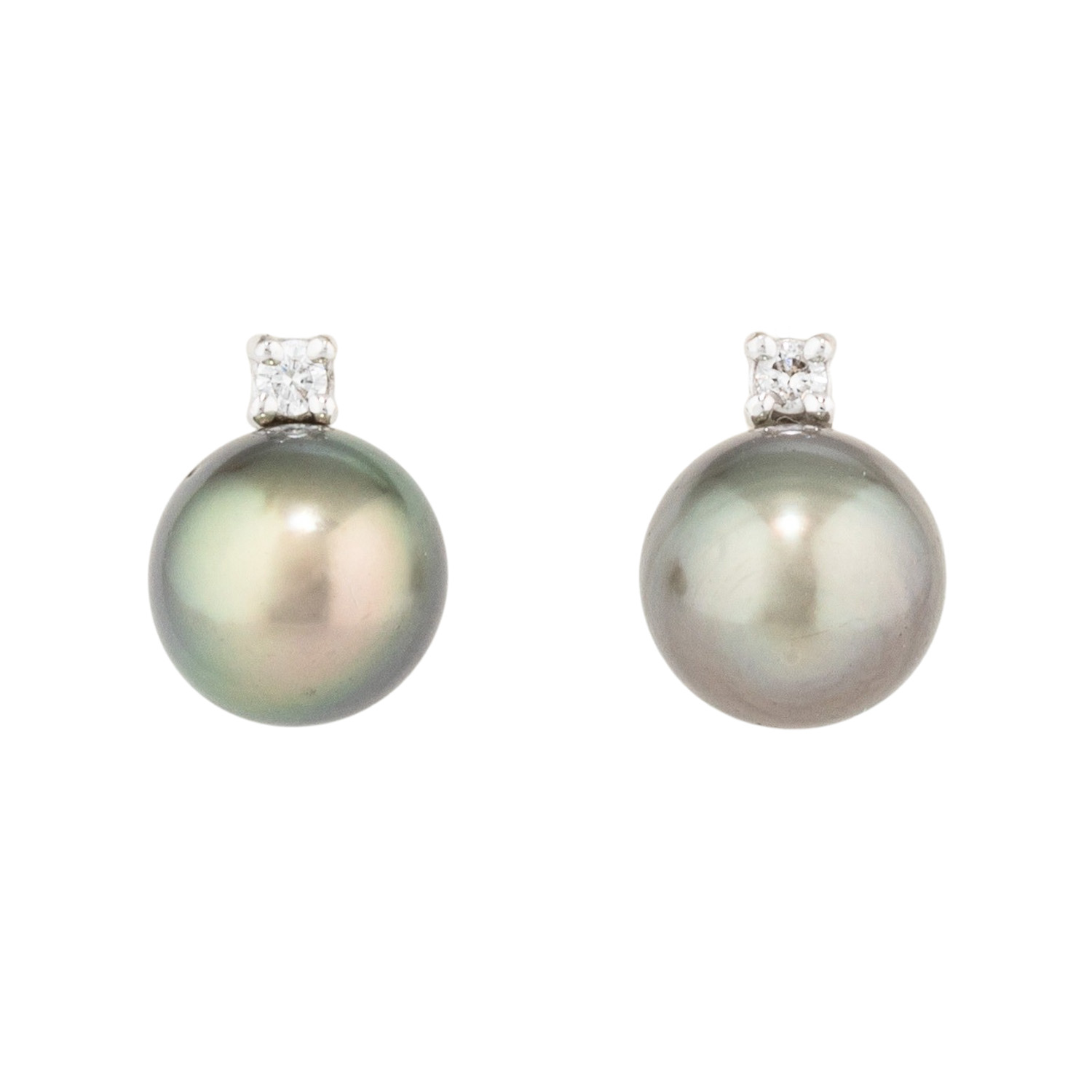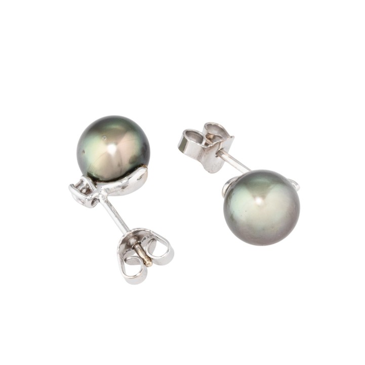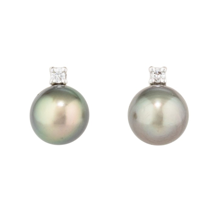 Paar Ohrstecker mit Tahitiperlen und Brillanten,