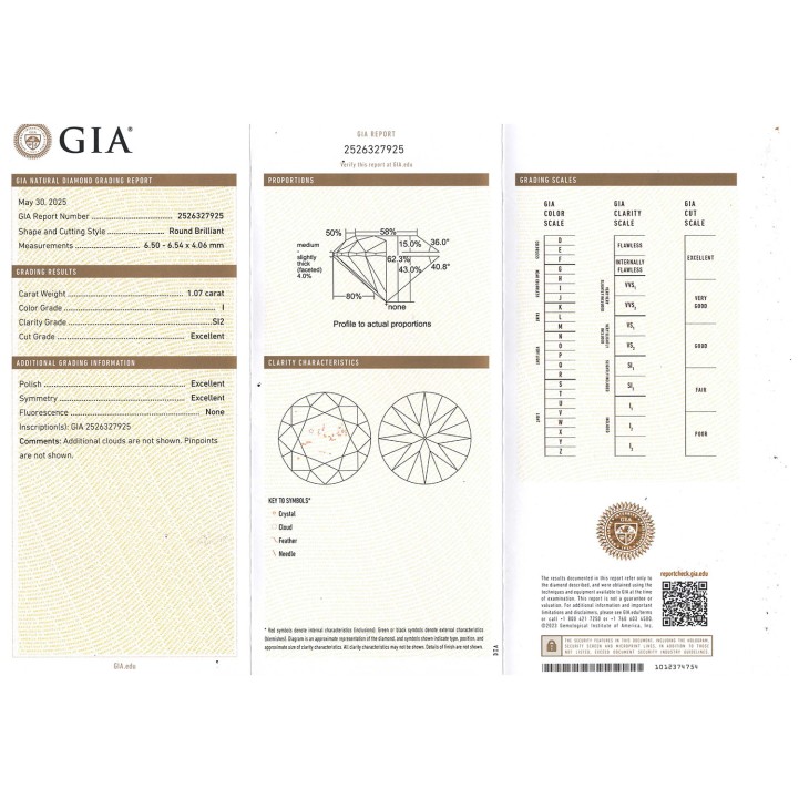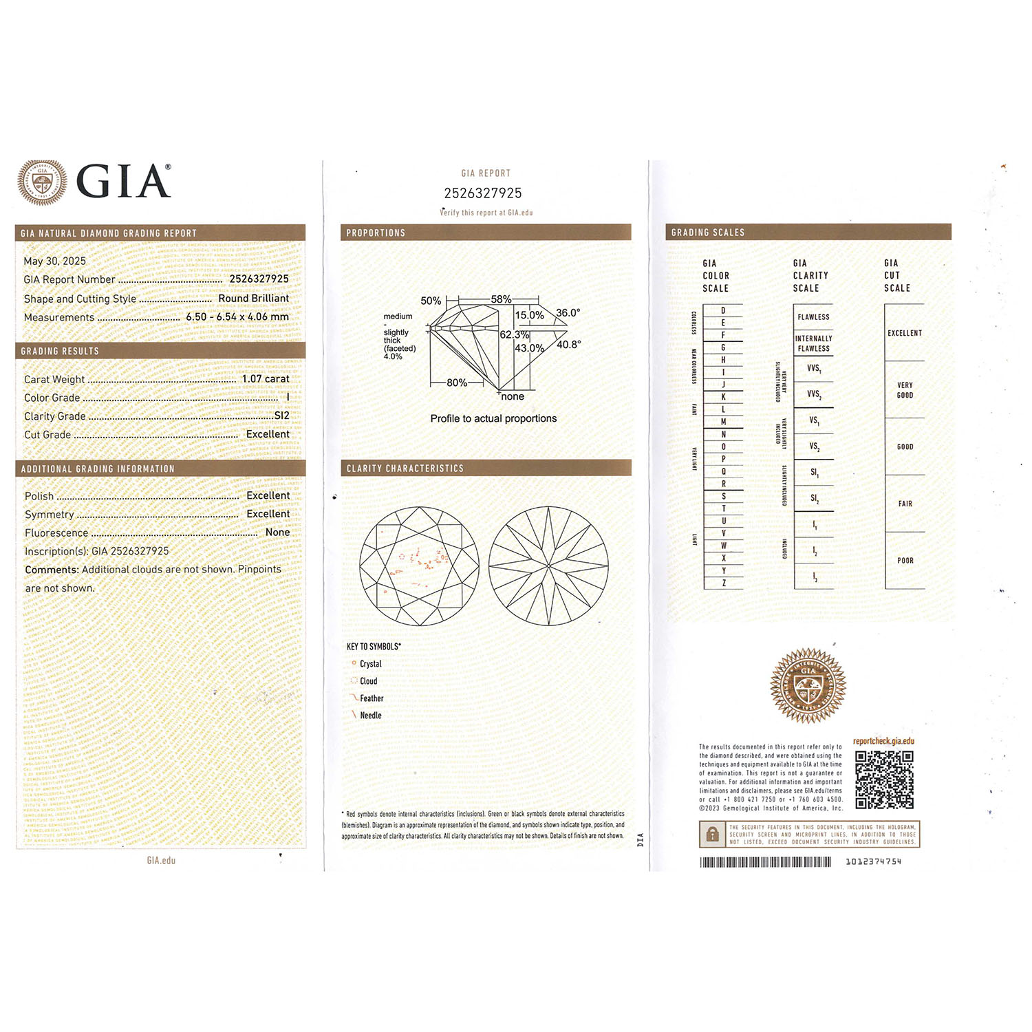 1,05 ct. u. 1,07 ct., LGW (I)/SI2, 3 x exzellent, keine Fluoreszenz, WG 18 K, mit GIA Expertisen 1505806266 u. 2526327925 anbei.