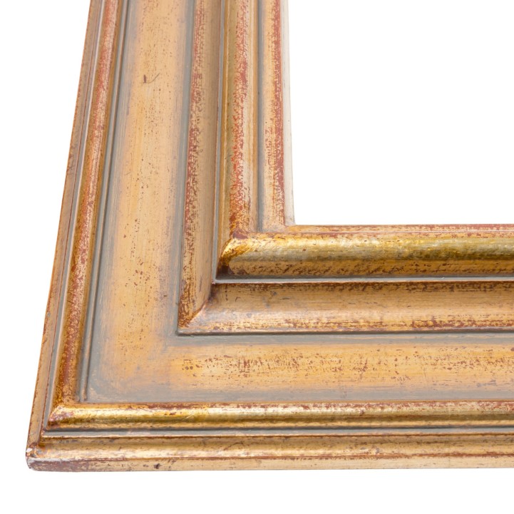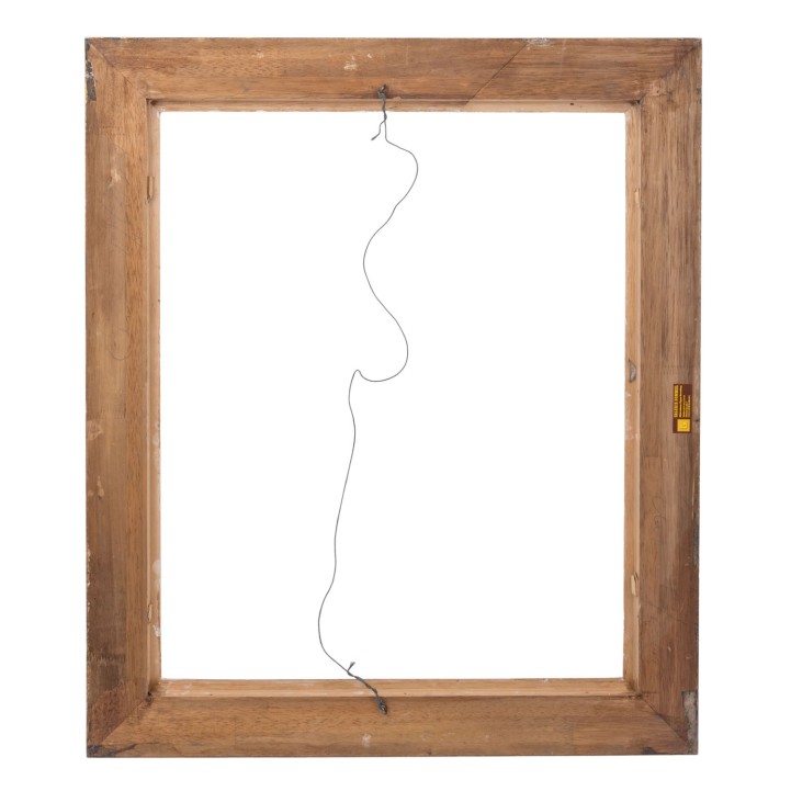 Holz, profilierte Leisten, über Bolus vergoldet, HxB: lichtes Maß ca. 58,5x72 cm, Falzmaß ca. 61.5x74,5 cm, Außenmaß ca. 78x90 cm. Je Alters-und Beriebspuren.